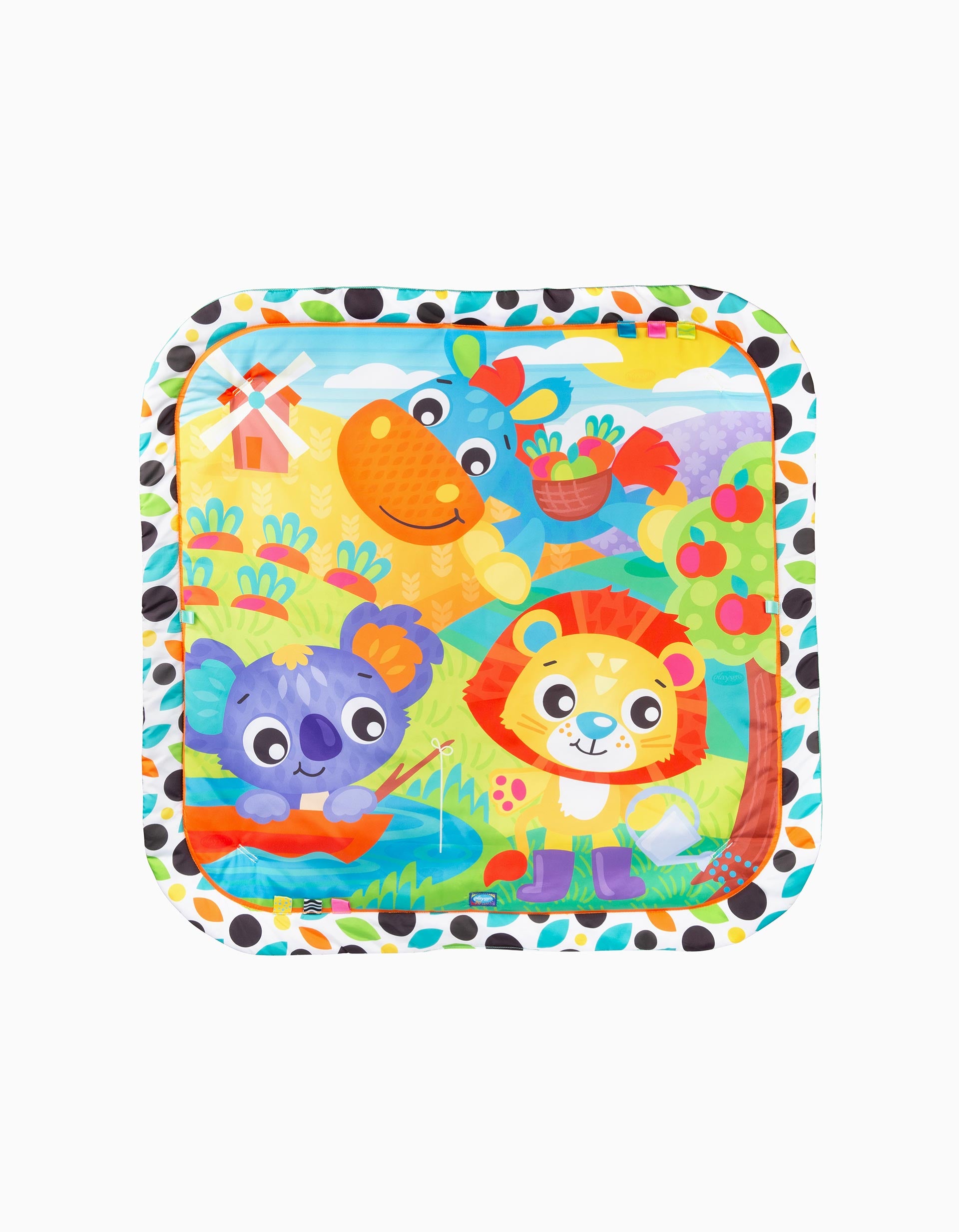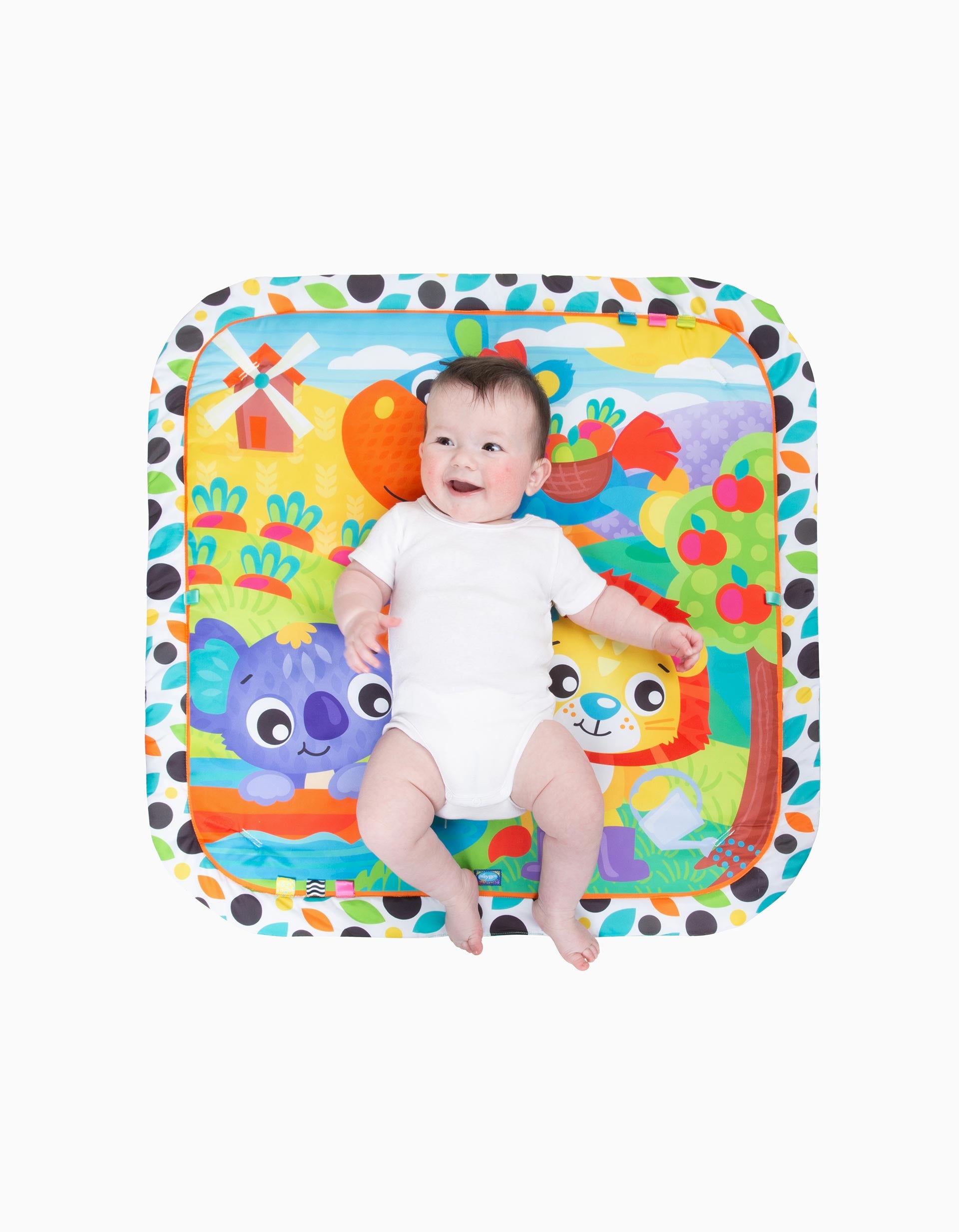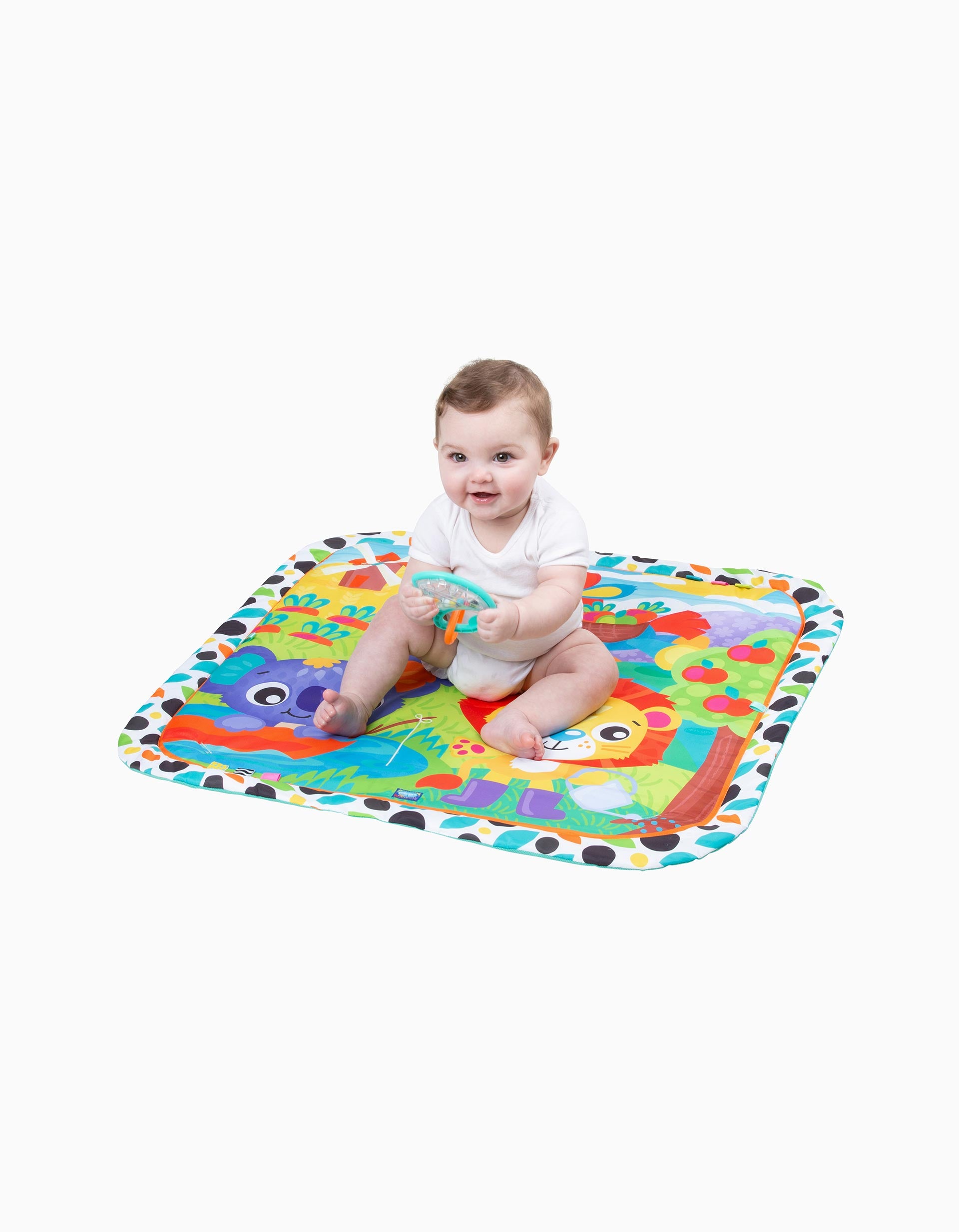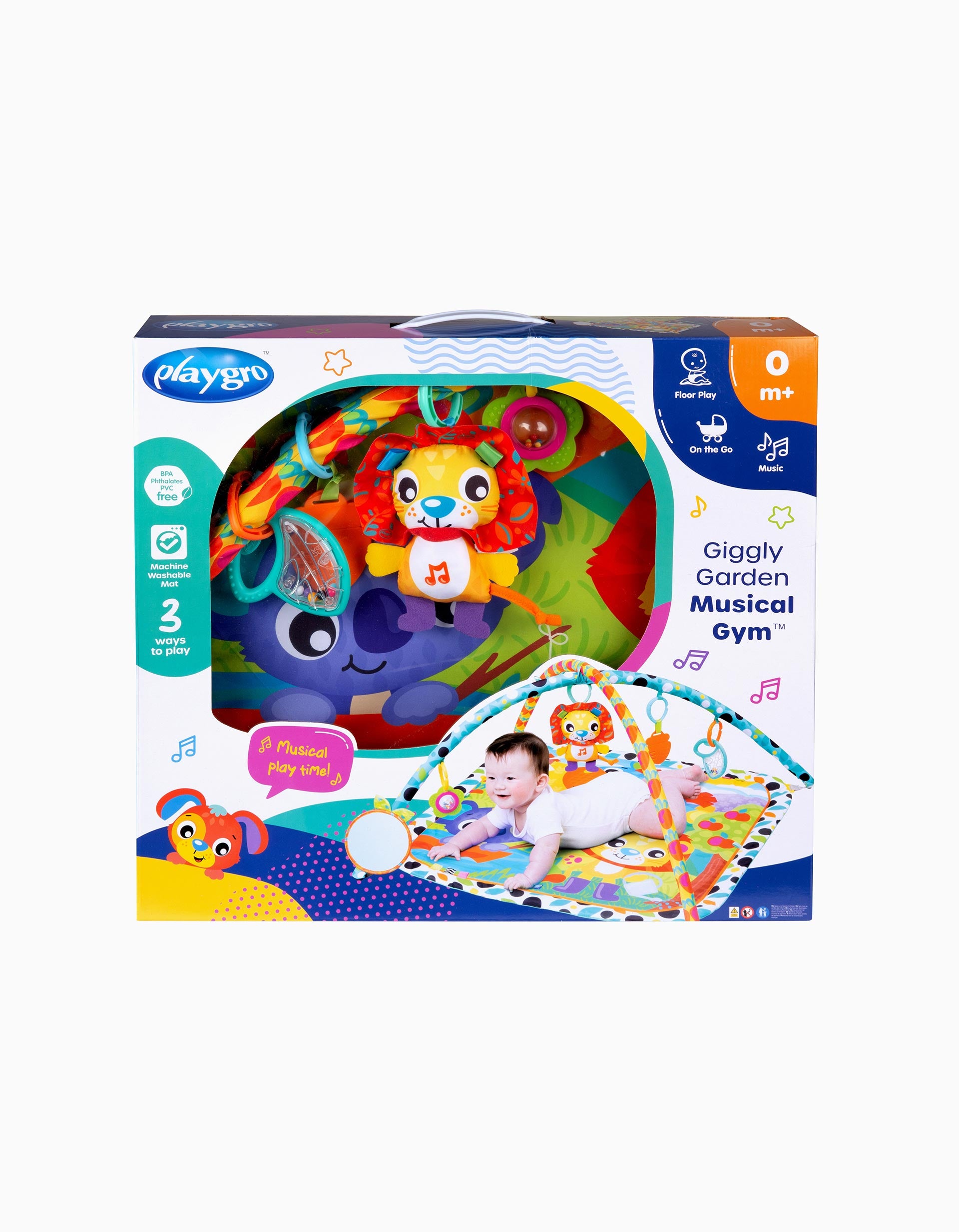 El Gimnasio Musical Giggly Garden, ¡dónde la diversión florece cada día! El sonajero con forma de hoja anima el tiempo de juego con sonidos divertidos, mientras que la flor que gira y se retuerce trae remolinos de alegría y alivio. El mordedor de zanahoria masticable es perfecto para los nuevos mordisqueadores, y el león musical con botón a presión ruge alegres melodías para el ritmo y la diversión. Un gran espejo fomenta el autodescubrimiento y las risas interminables, mientras que las cintas táctiles proporcionan una deliciosa exploración para los deditos. El Gimnasio Musical Giggly Garden convierte cada sesión de juego en una alegre aventura en el jardín. Pilas tipo X2 LR41 no incluidas.