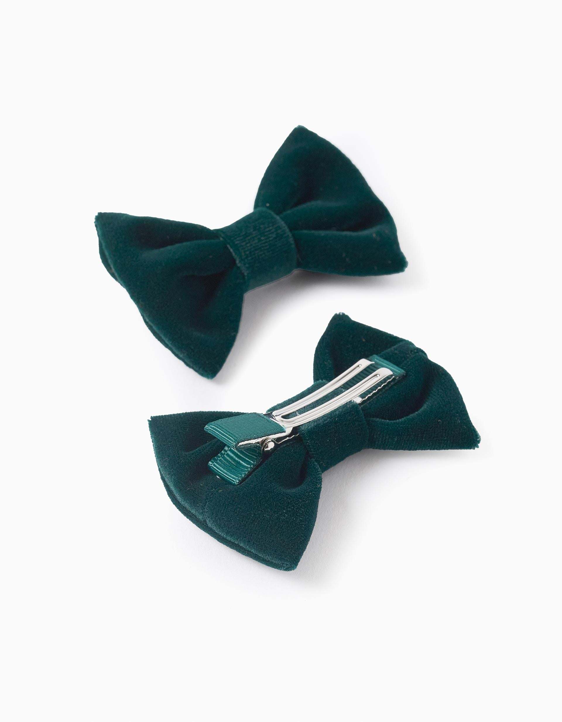 Pack de dos horquillas con lazos de terciopelo verde oscuro para bebé y niña. ¡Un set de accesorios versátiles y elegantes!