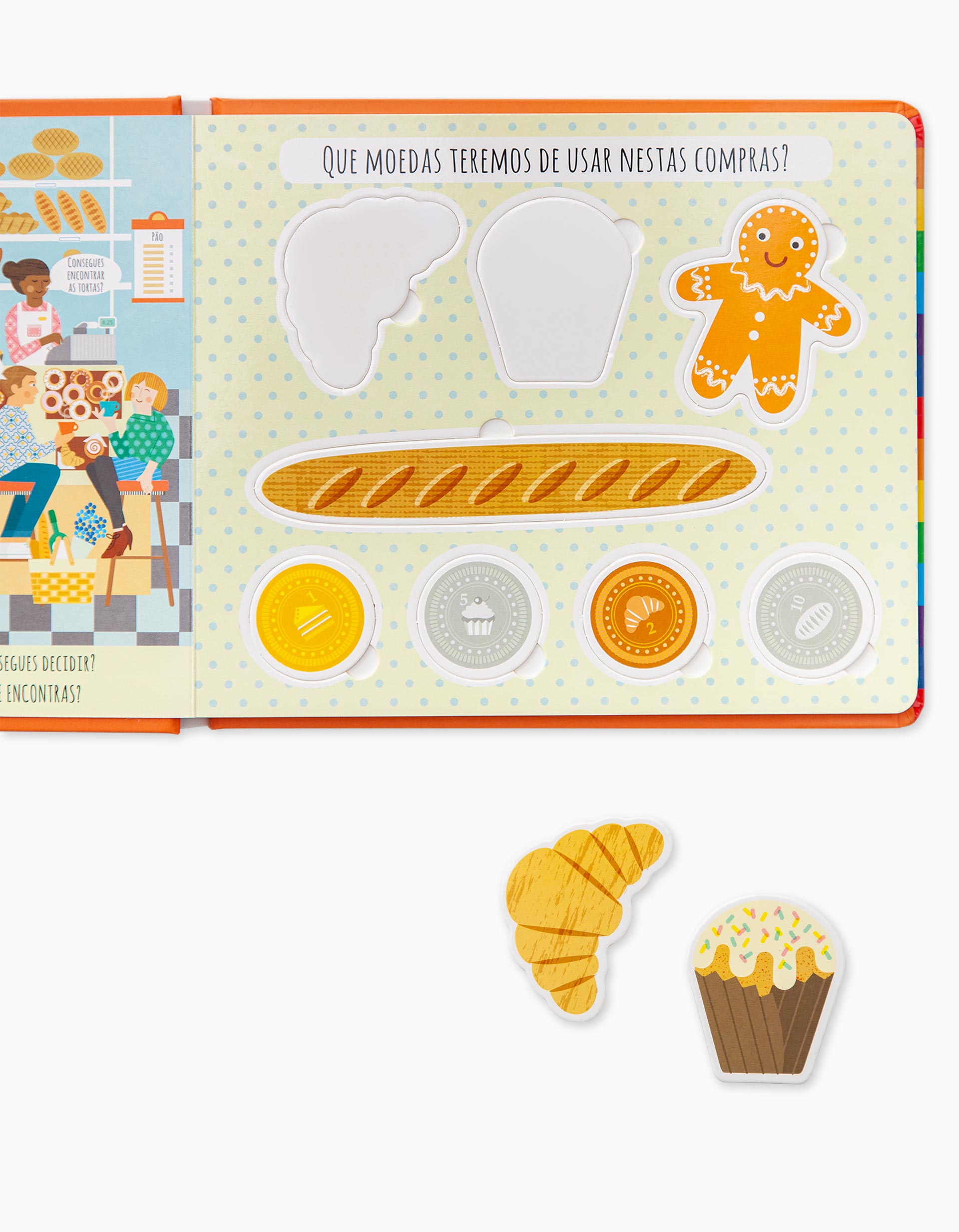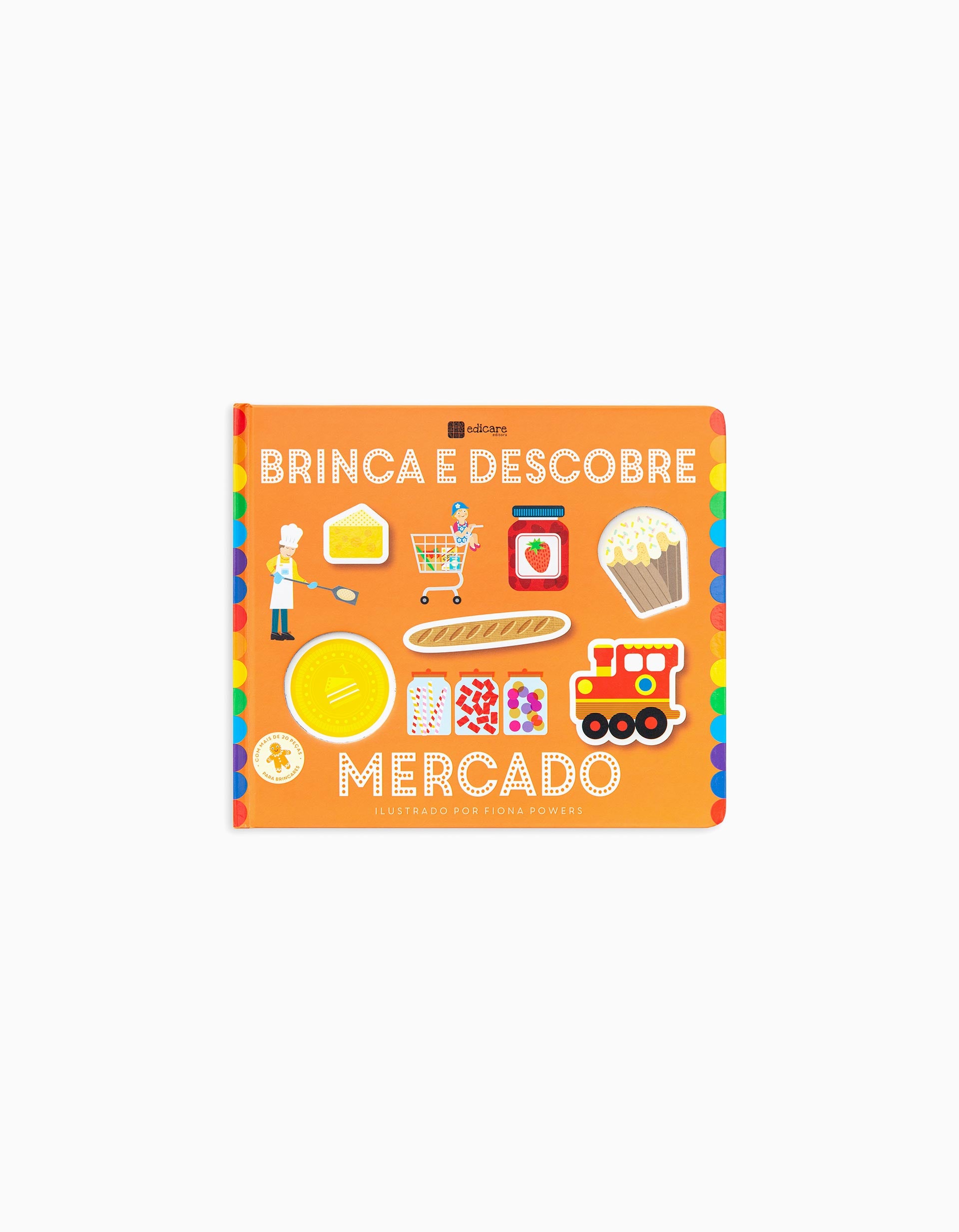 Shall we play and learn? This book introduces you to the market and much of what you can find there. Visit the shops, look for and count the pictures, fit the pieces together and use coins to shop. A fun and enriching activity! Recommended age: from 4 years old.