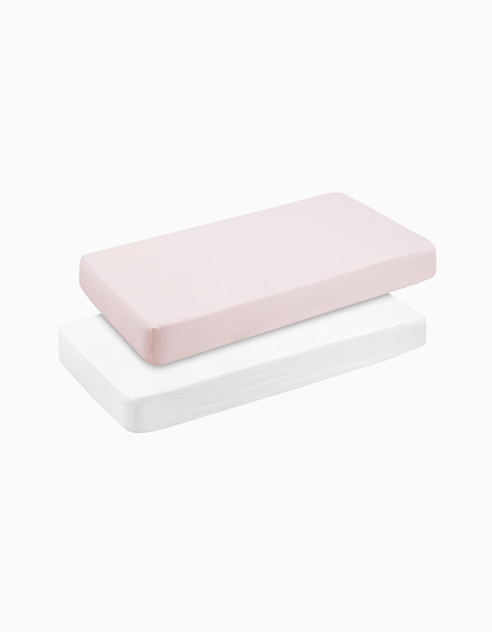 Pack de 2 Draps Housse avec Élastique Cambrass 60x120 cm, Rose Bébé/Blanc