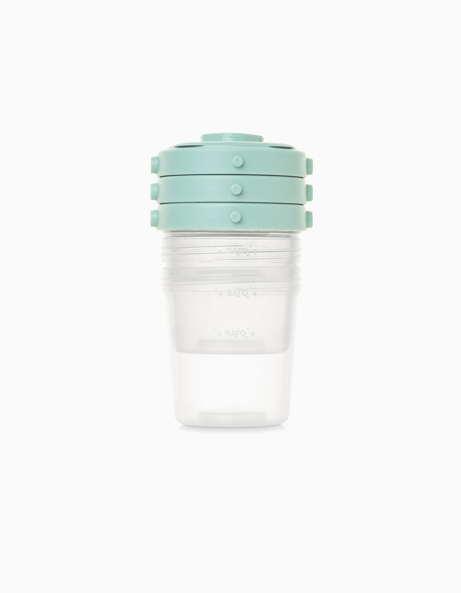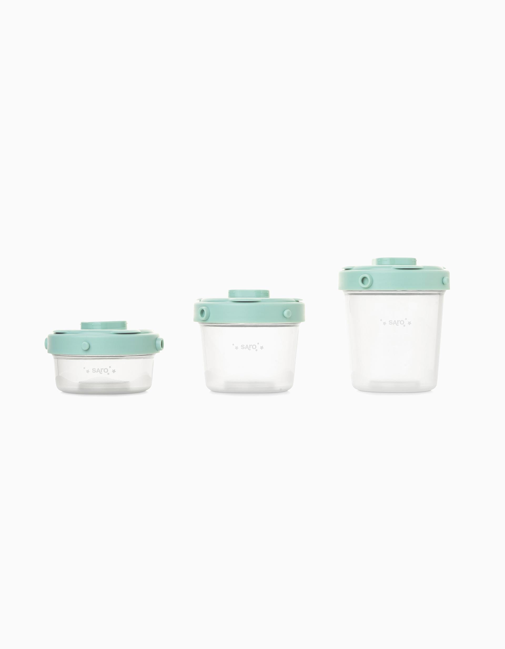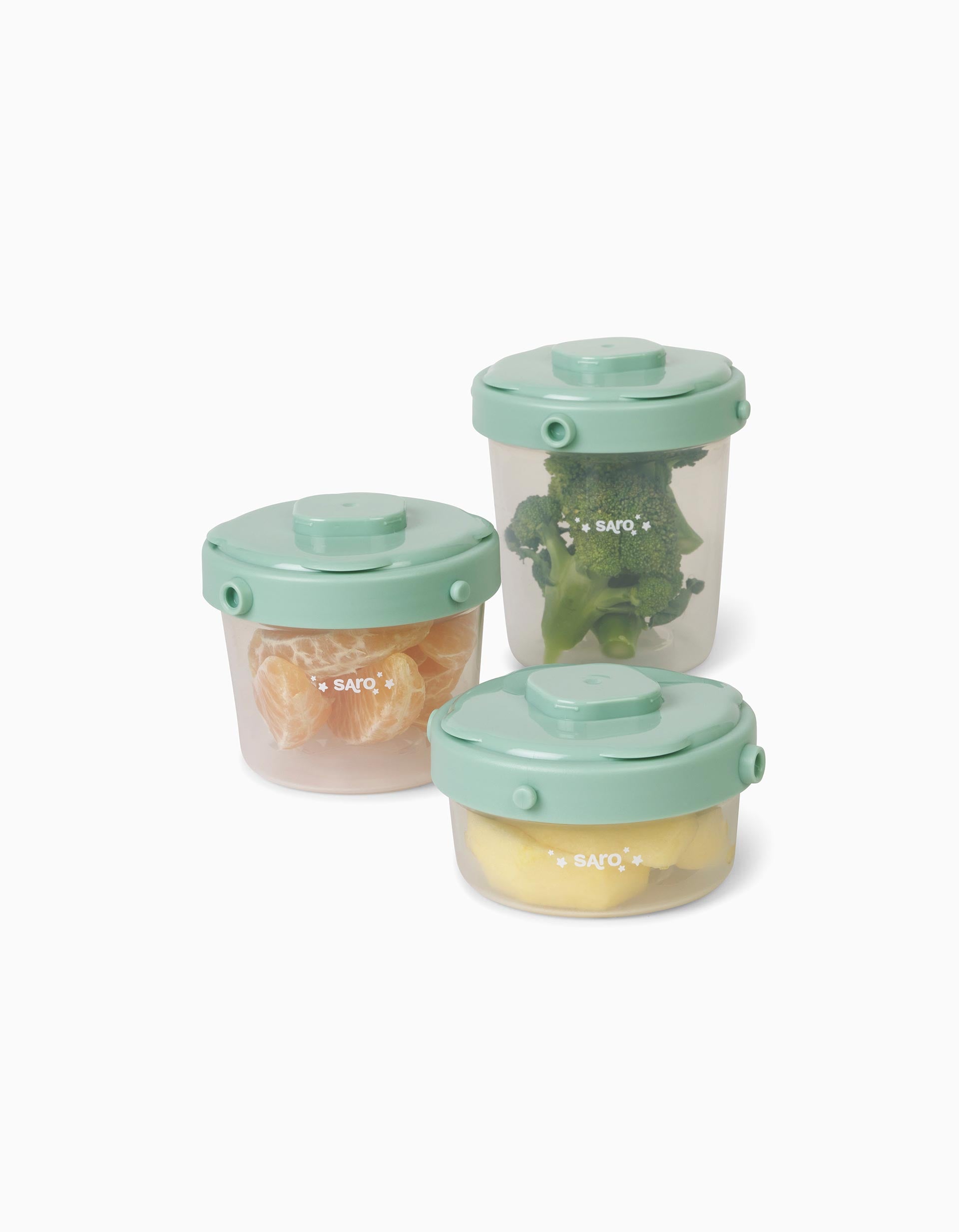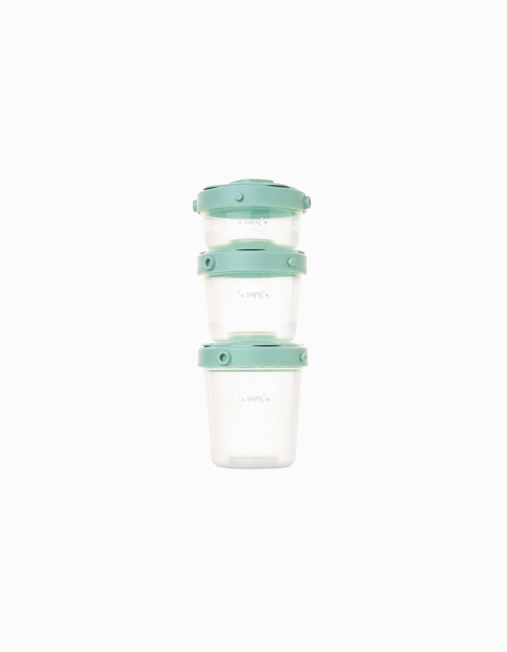 Set of three food containers from Saro that allows you to store your baby's food in a practical and easy way, so they can be consumed according to your needs and planning. With a screw hermetic closure, they ensure a perfect seal, with no risk of leaks. They are easy to store as they can be stacked, taking up little space. In addition, they include a marking area so you can note the contents and the date it was made. The boxes have different capacities: 60ml, 120ml, and 200ml. Suitable for fridge, freezer, microwave (without lid), and dishwasher.