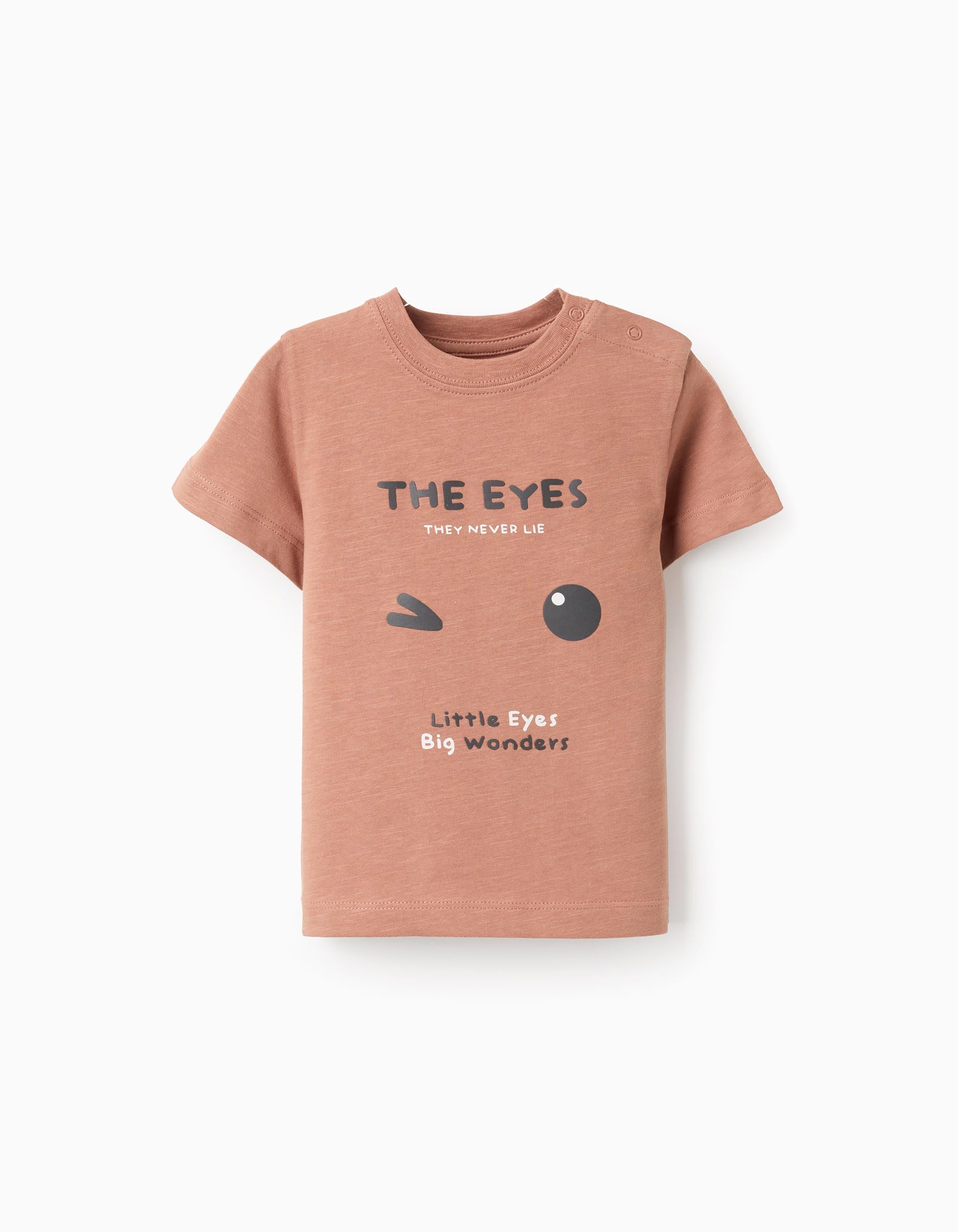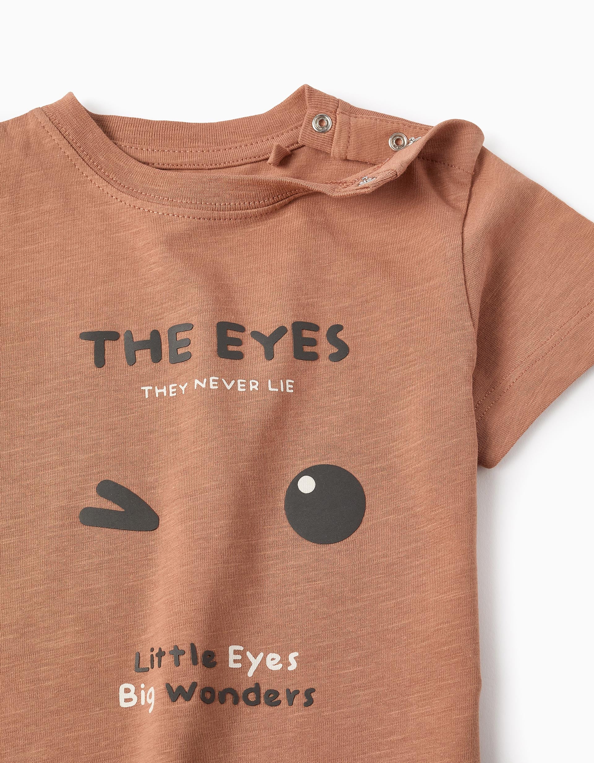 T-shirt en Jersey de Coton pour Bébé Garçon 'Eyes', Marron