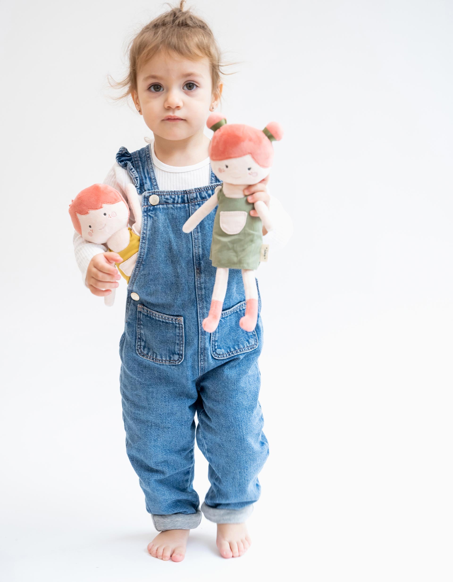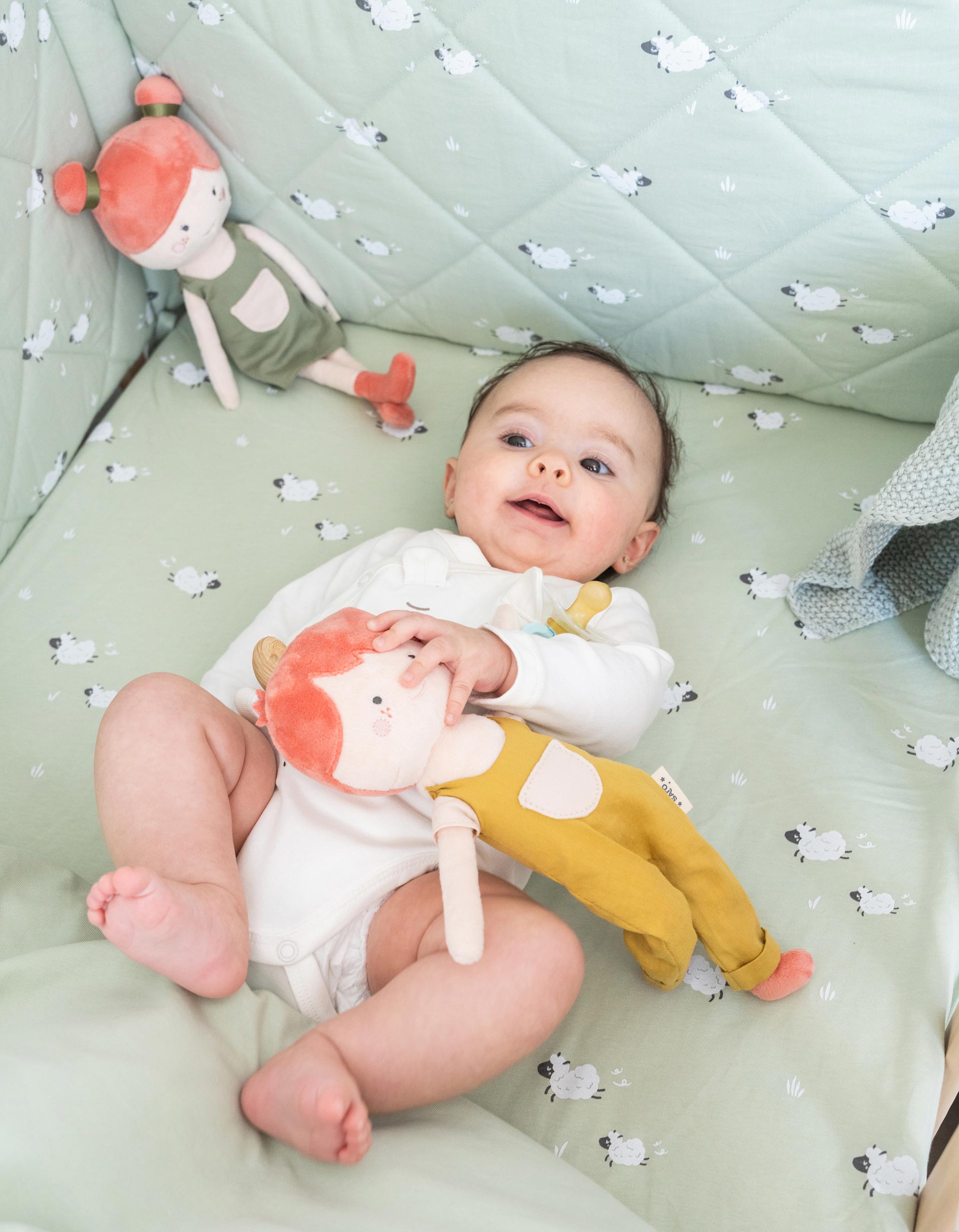 The rag doll Ana will accompany your baby/child both during peaceful nights of sleep and in the most fun adventures of everyday life. It provides security and comfort and, through pretend play, will allow children to identify their emotions and develop various social skills. Soft and cute, it is ready to receive hugs from day one! Composition: 65% polyester and 35% cotton. Dimensions: 30 cm. Care: machine washable on delicate fabric cycles at 30°C, but hand washing is recommended; do not iron; do not use a tumble dryer. Suitable from birth.