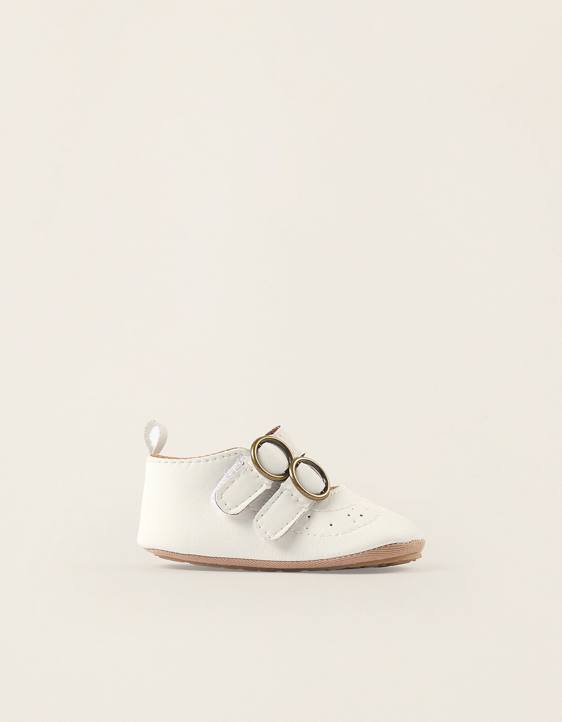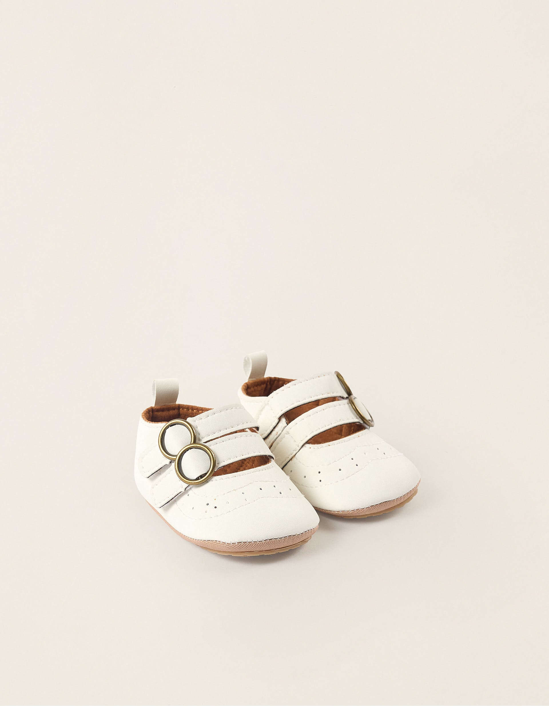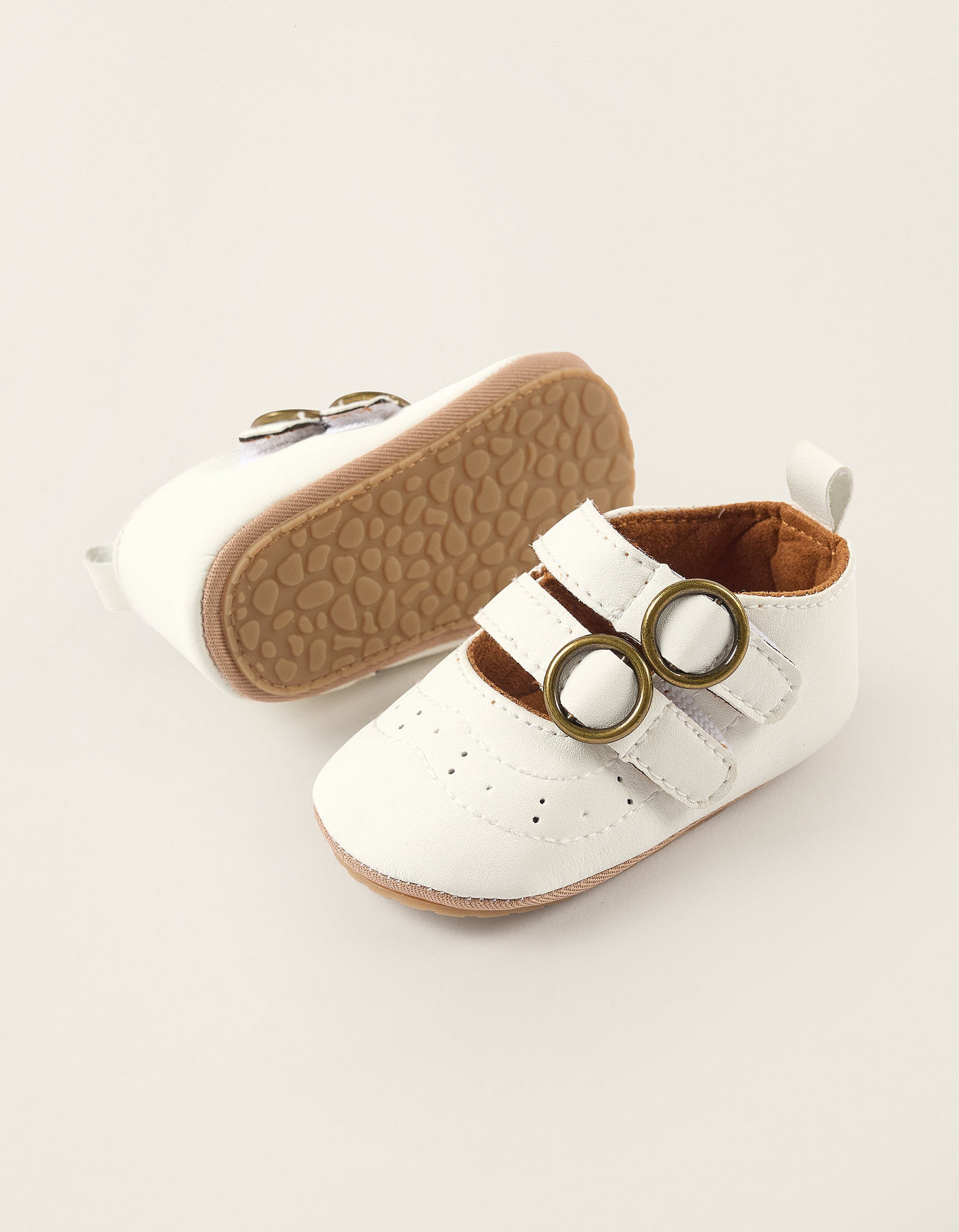 Ballet Flats with Touch-Fastening Buckles for Newborn Girls, White