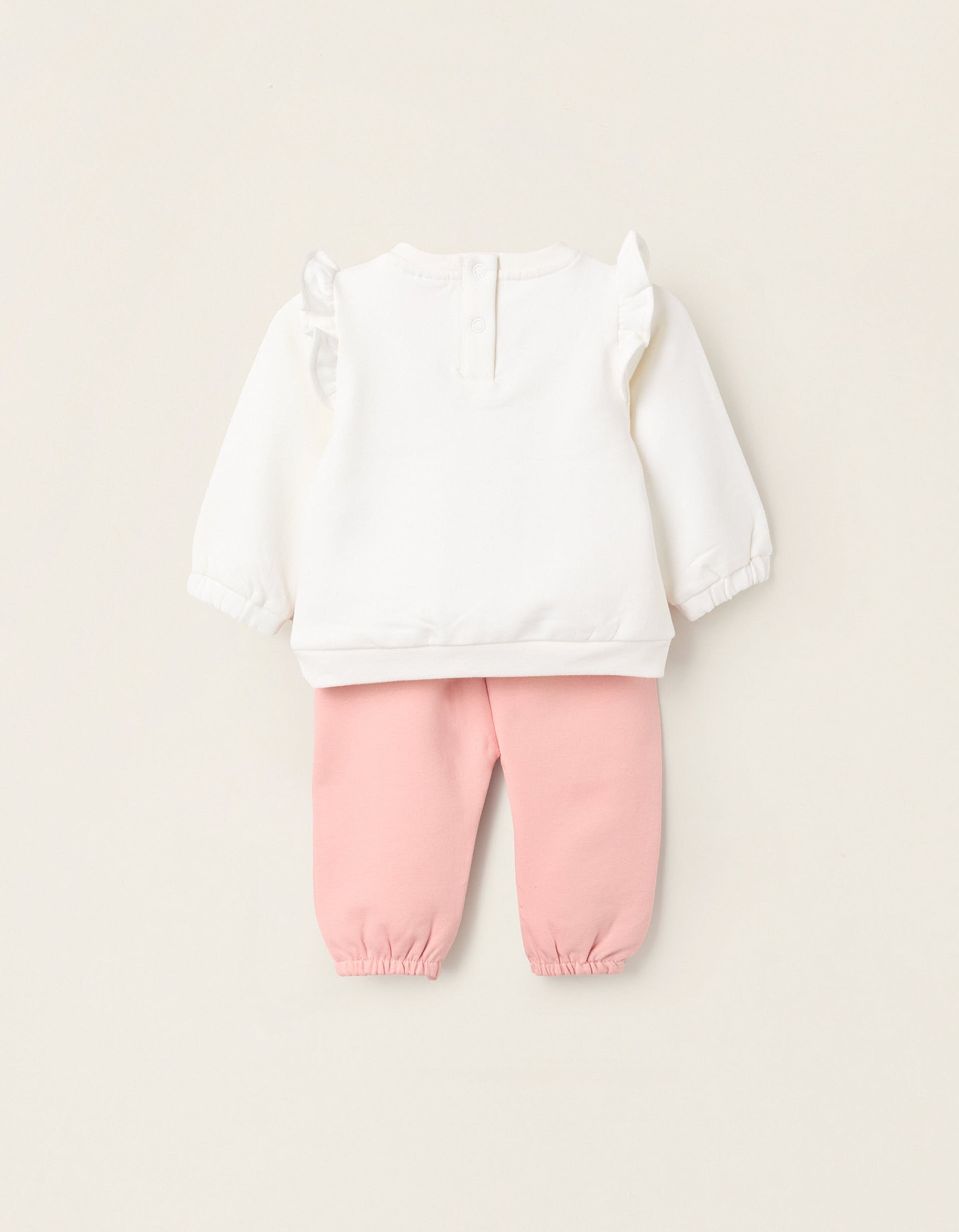 Brushed Sweatshirt + Trousers for Newborns 'Winnie', White/Pink