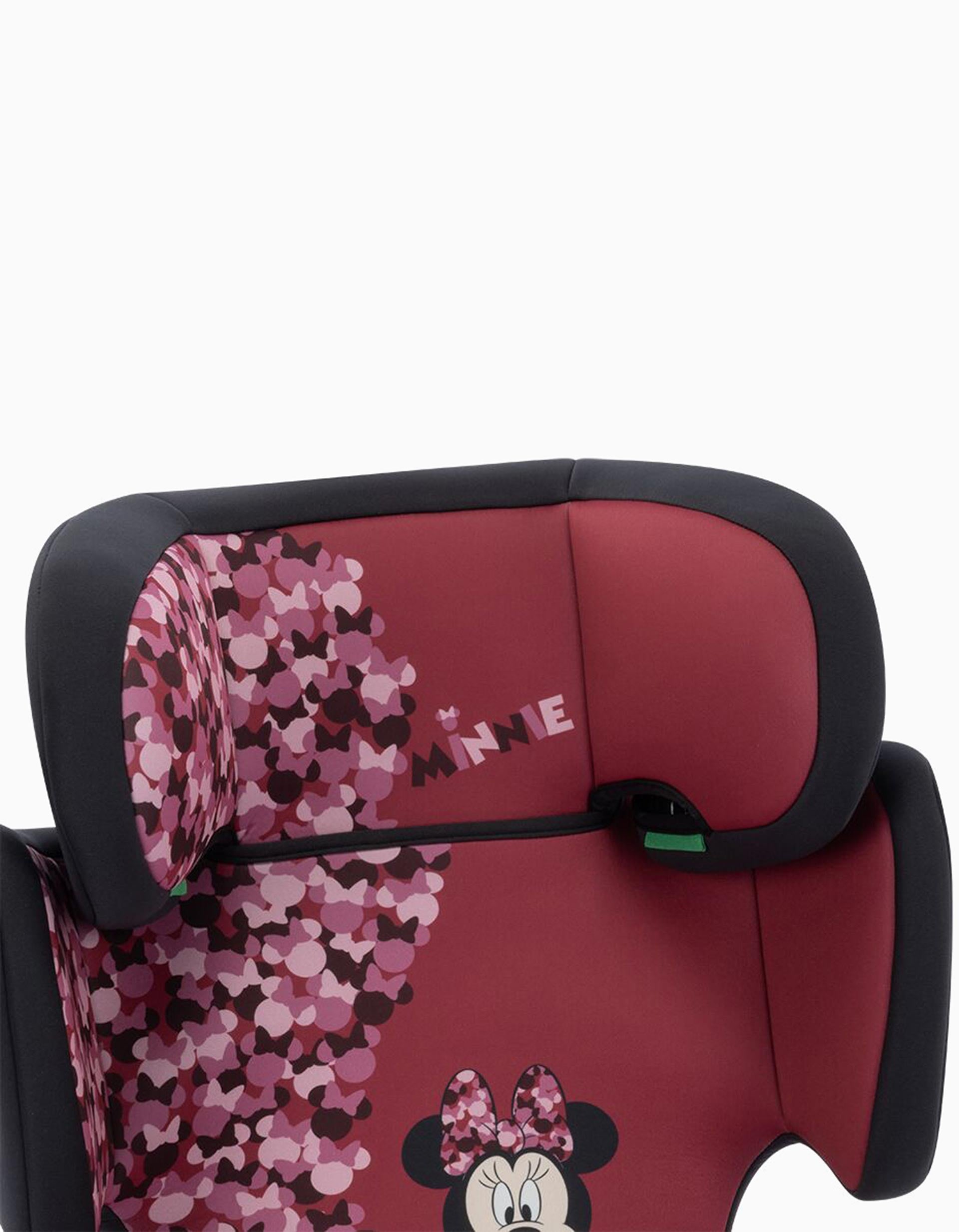 Hera I-Safe car seat from Bebe Confort, suitable for children between 100 and 150 cm, i.e. between 3.5 and 12 years old. It can be installed with the car's seat belts. It includes a height-adjustable headrest to accompany the child's growth, and a soft, padded seat for greater comfort when travelling. With its unique foldable design, this car seat is light and compact, making it easy to transport and install in different cars. Removable and washable cover. Approved according to European Standard ECE R129 (I-Size). Design: Minnie. Weight: 3.34 Kg. Dimensions: 63-78x44x48-51cm.