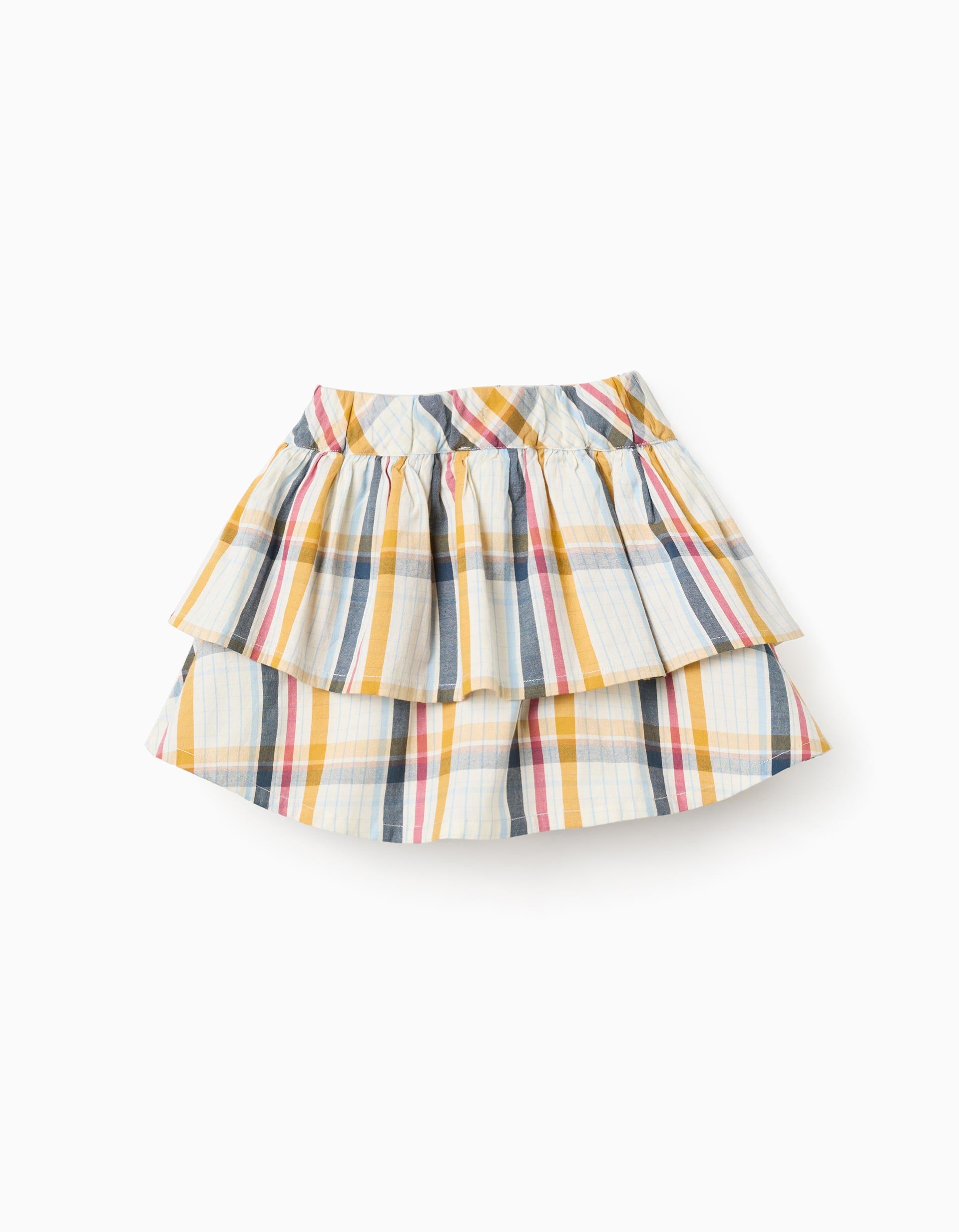 Checked Ruffled Cotton Skirt for Girls 'B&S', Multicolour