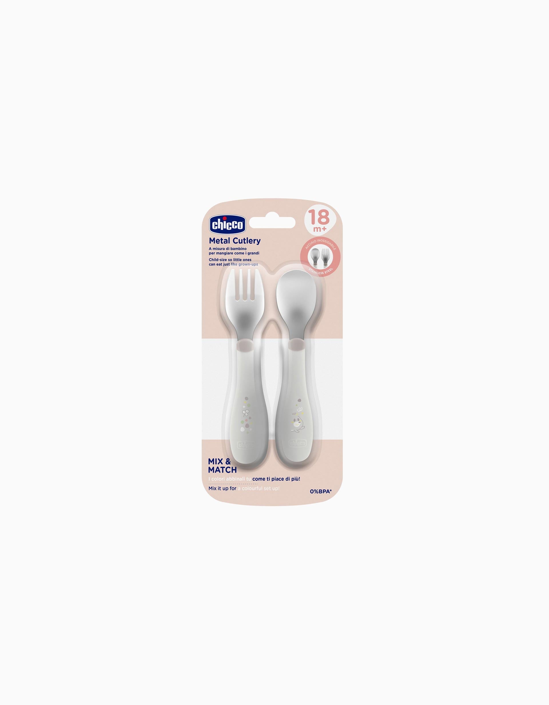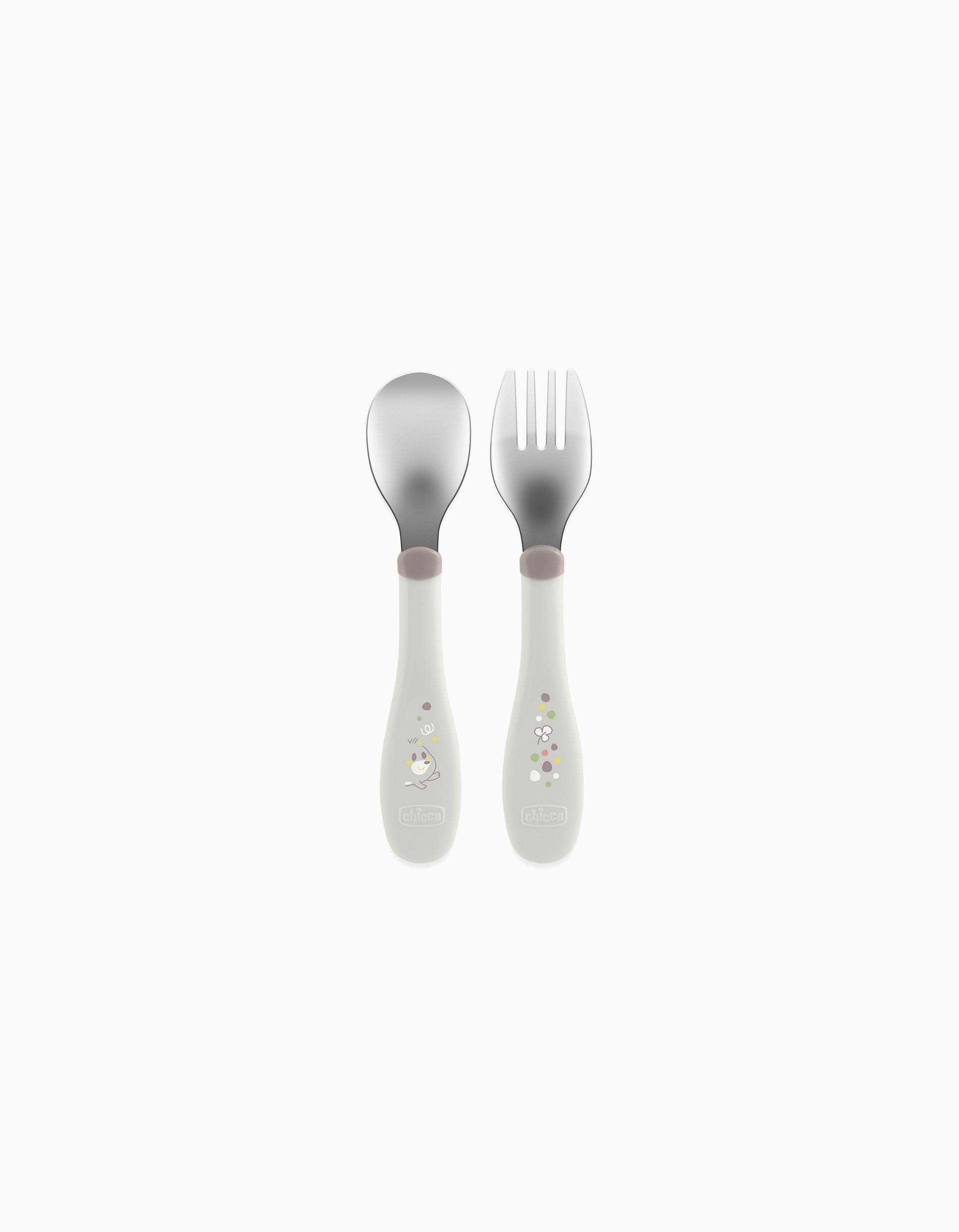 Chicco Cutlery Set Spoon and Fork Stainless Steel 18M+, Grey