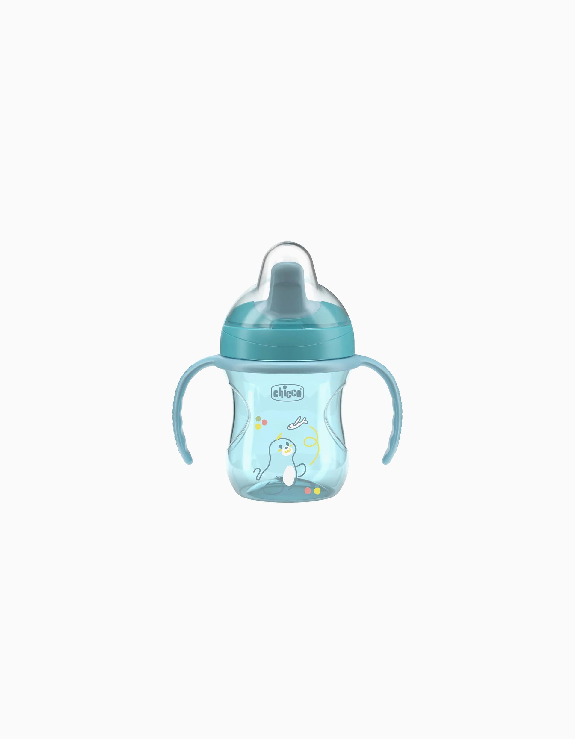 Blue learning cup from Chicco, suitable for babies from 6 months, with a bite-resistant spout. It is an ergonomic and comfortable cup, designed to facilitate the correct positioning of the lips and promote proper neck posture. With handles (removable), ideal for developing motor skills. Easily removable valve: an innovative patented solution to make the cup 100% leak-proof without compromising the baby's ease of drinking, with or without the valve. BPA free. Dishwasher safe. Capacity: 200 ml.
