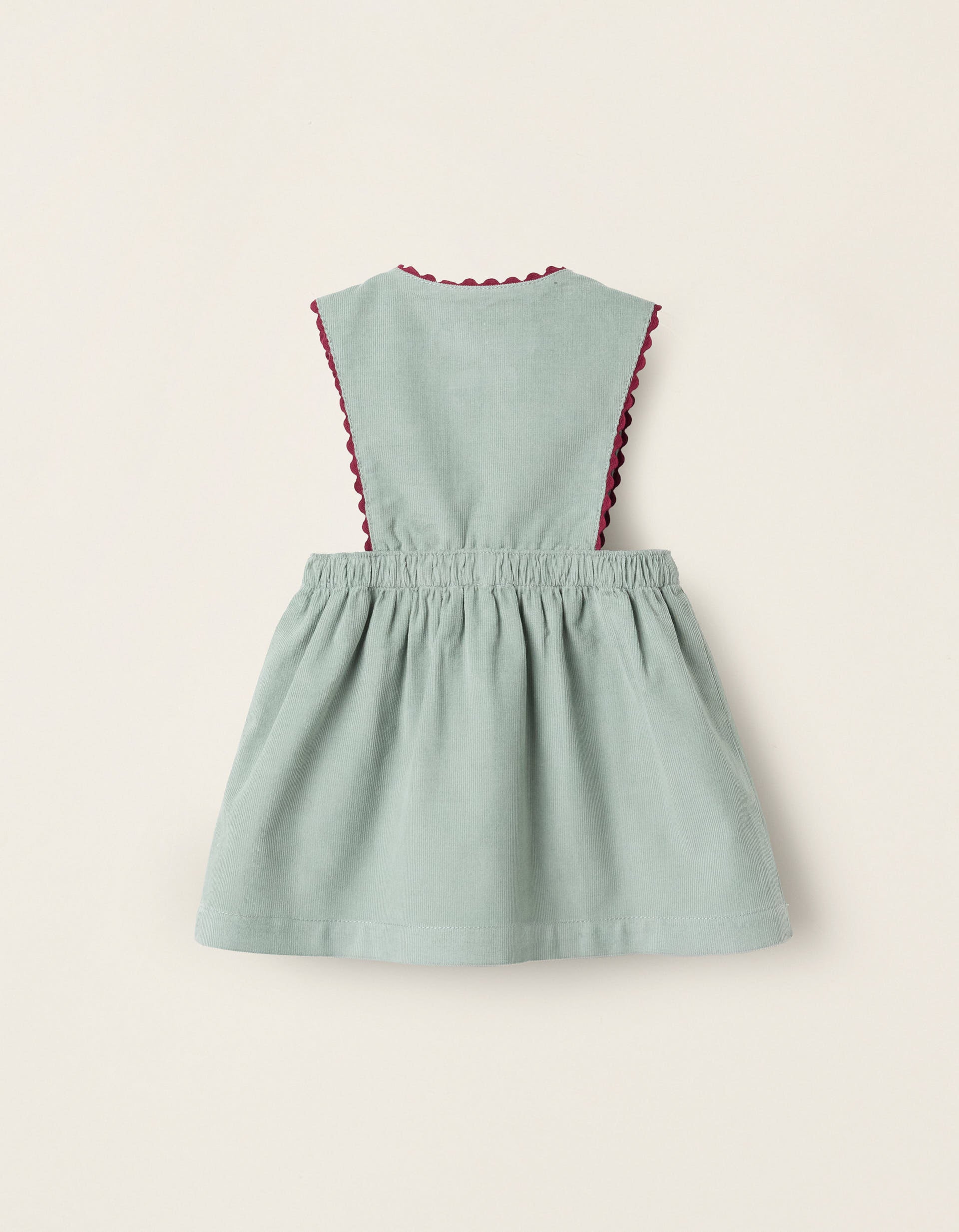 Corduroy Pinafore Dress for Newborn Girls, Green/Burgundy