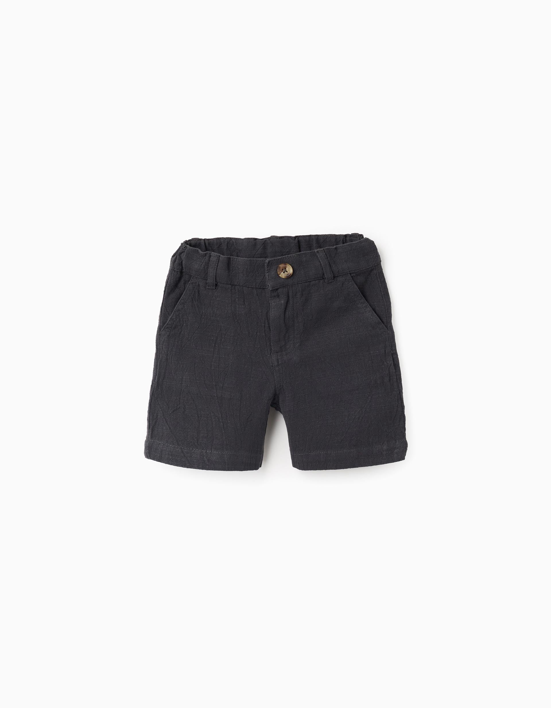Cotton and Linen Shirt with Pocket for Baby Boys, White/Black