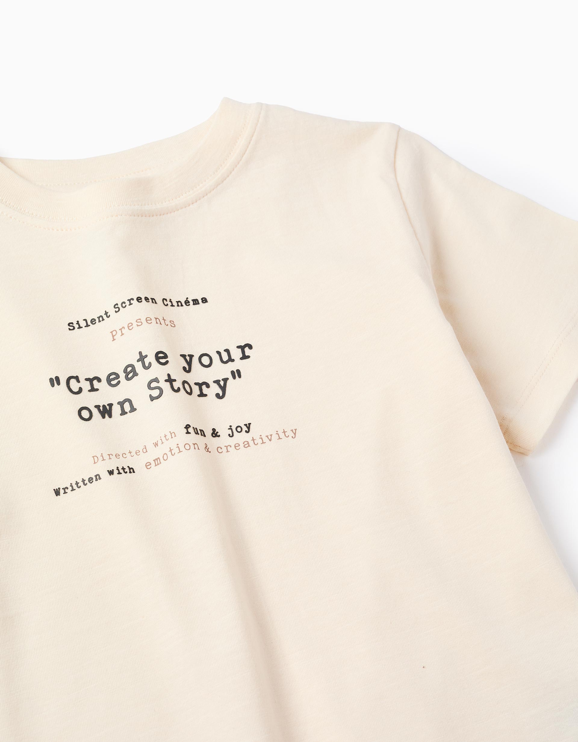 Cotton Jersey T-shirt for Boys 'Stories', Beige
