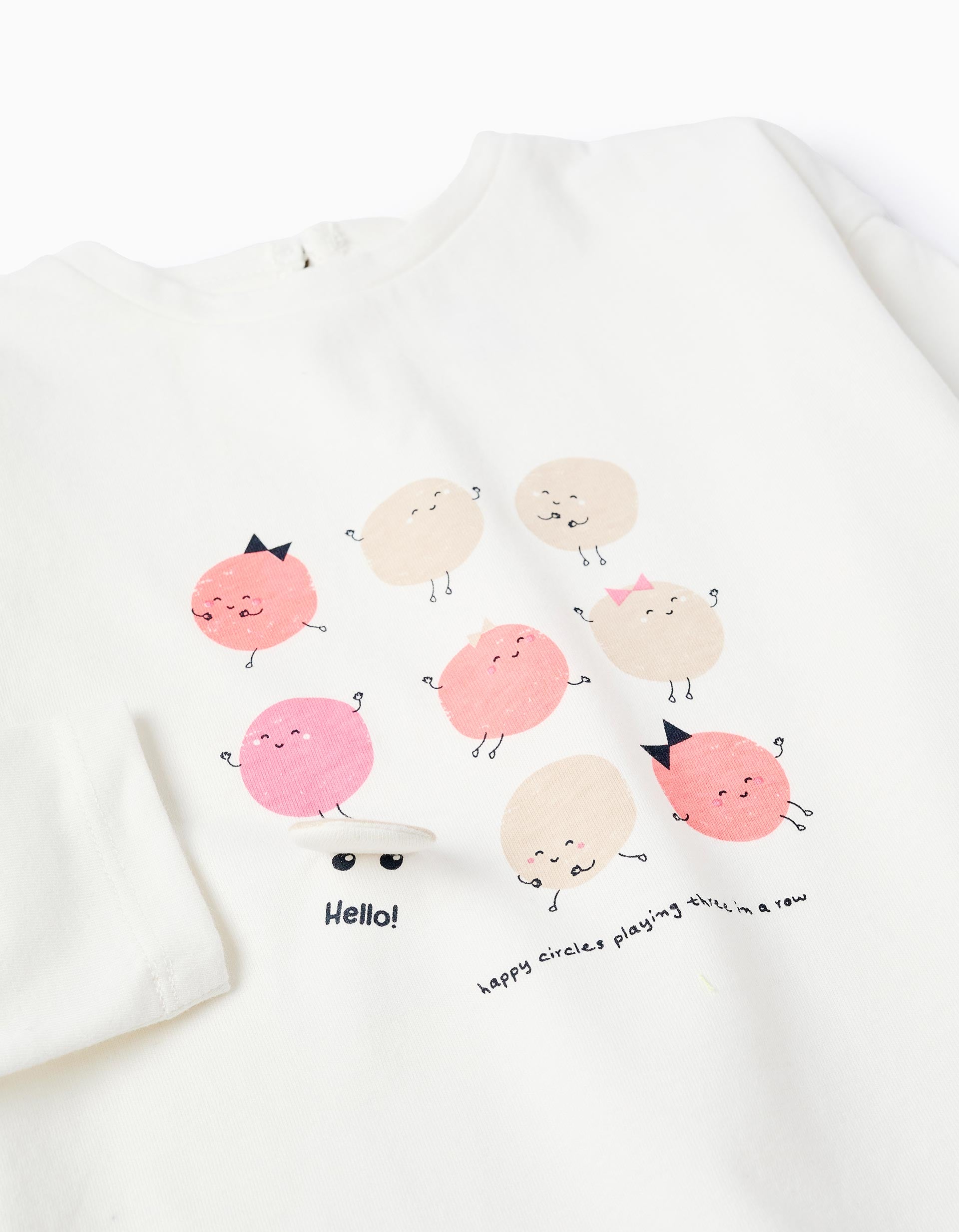 Cotton Long Sleeve T-Shirt for Baby Girls 'Circle', White