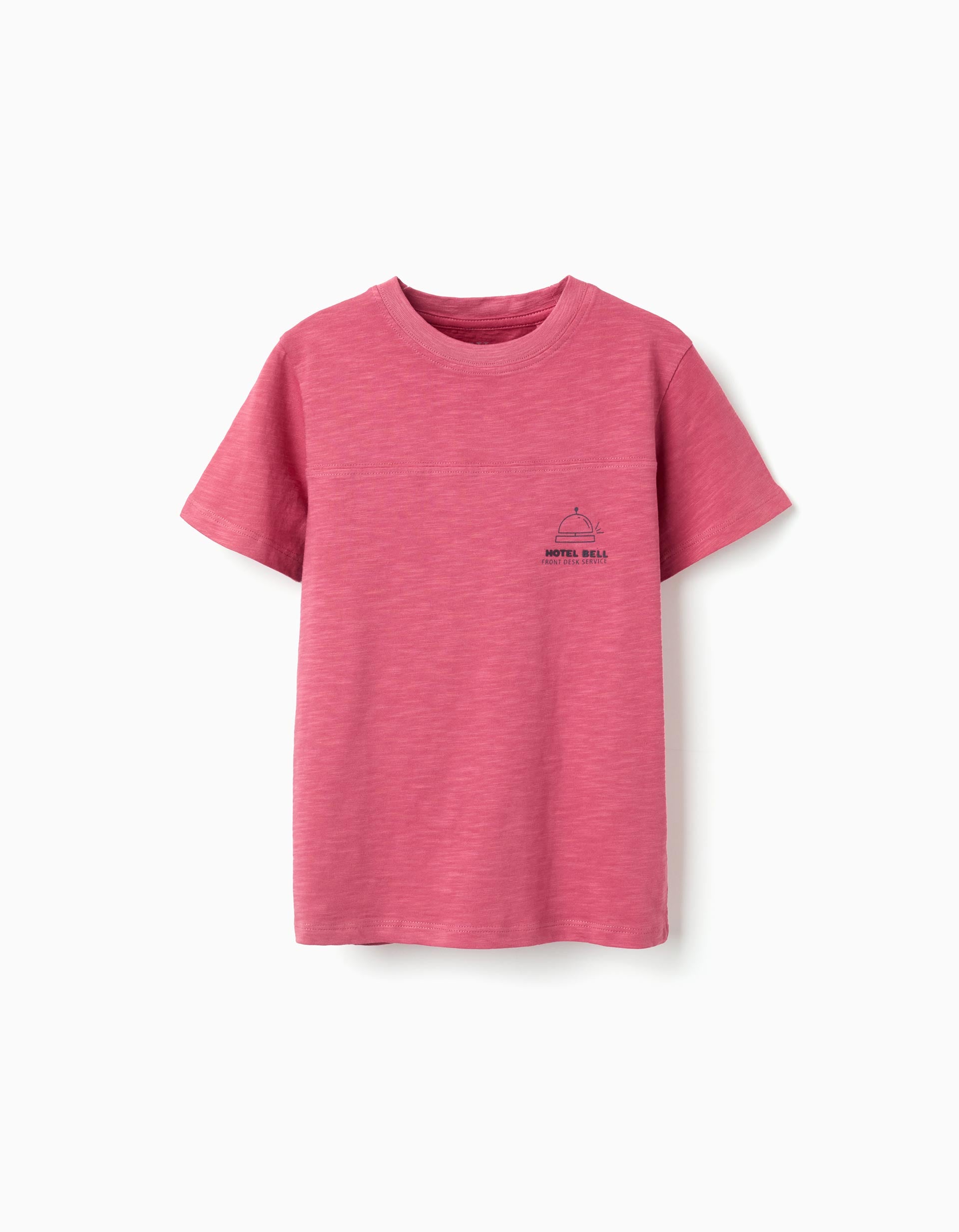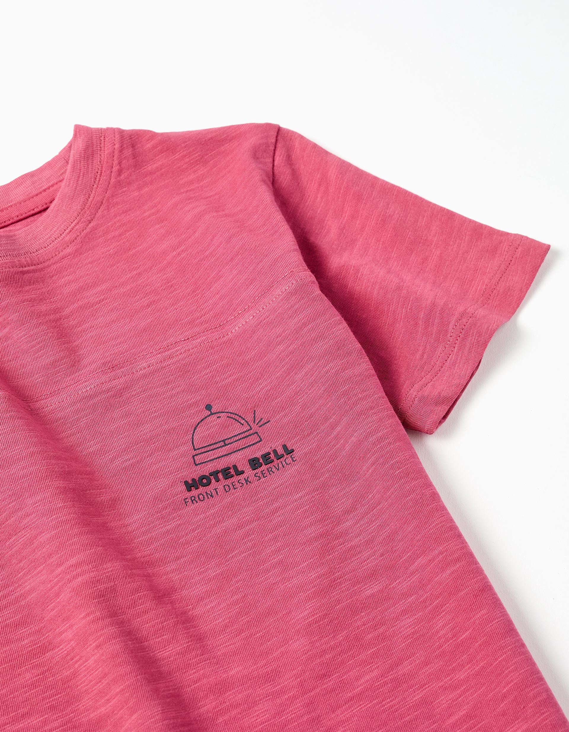 Cotton T-shirt with 'Hotel Bell' Print for Boys, Dark Pink