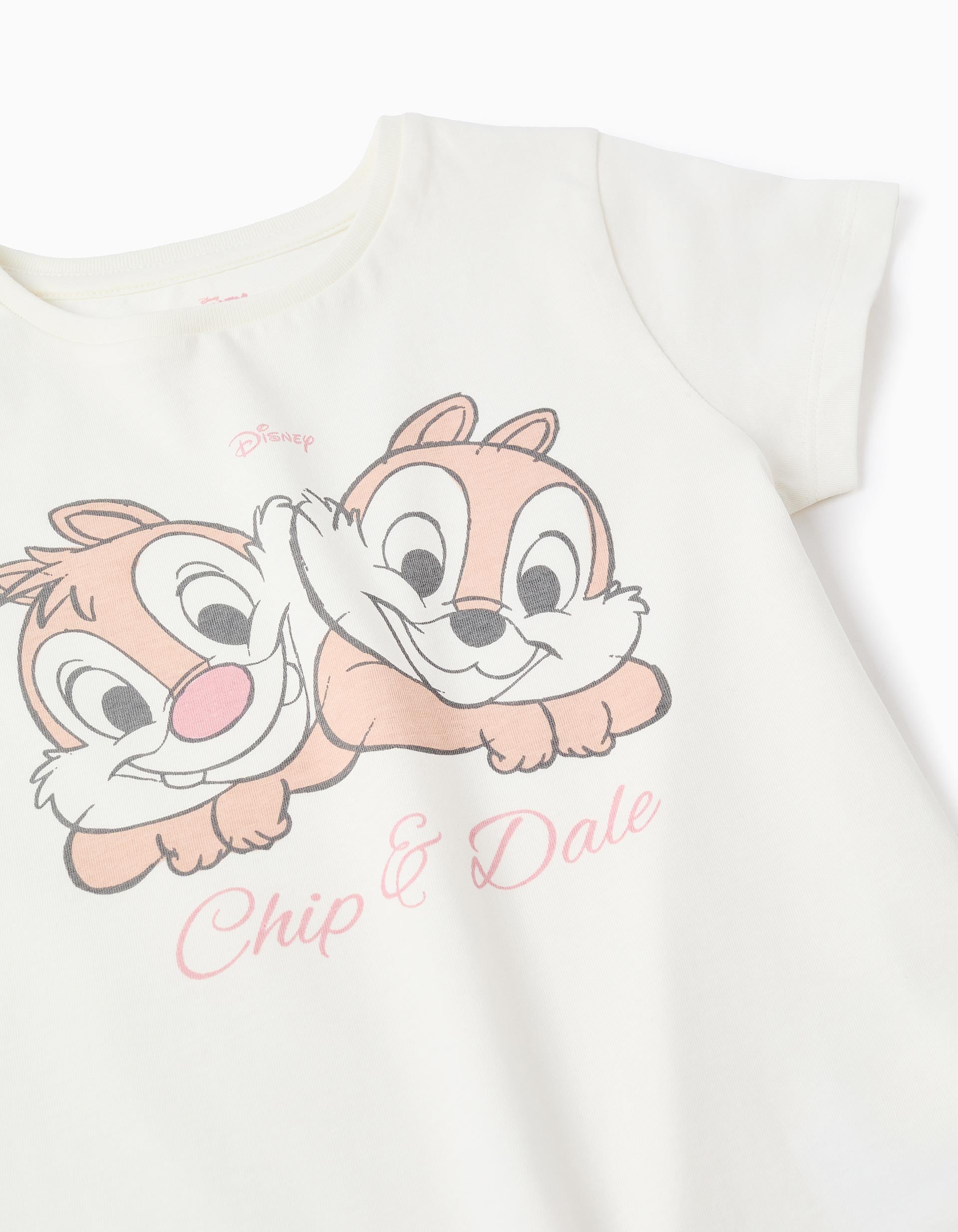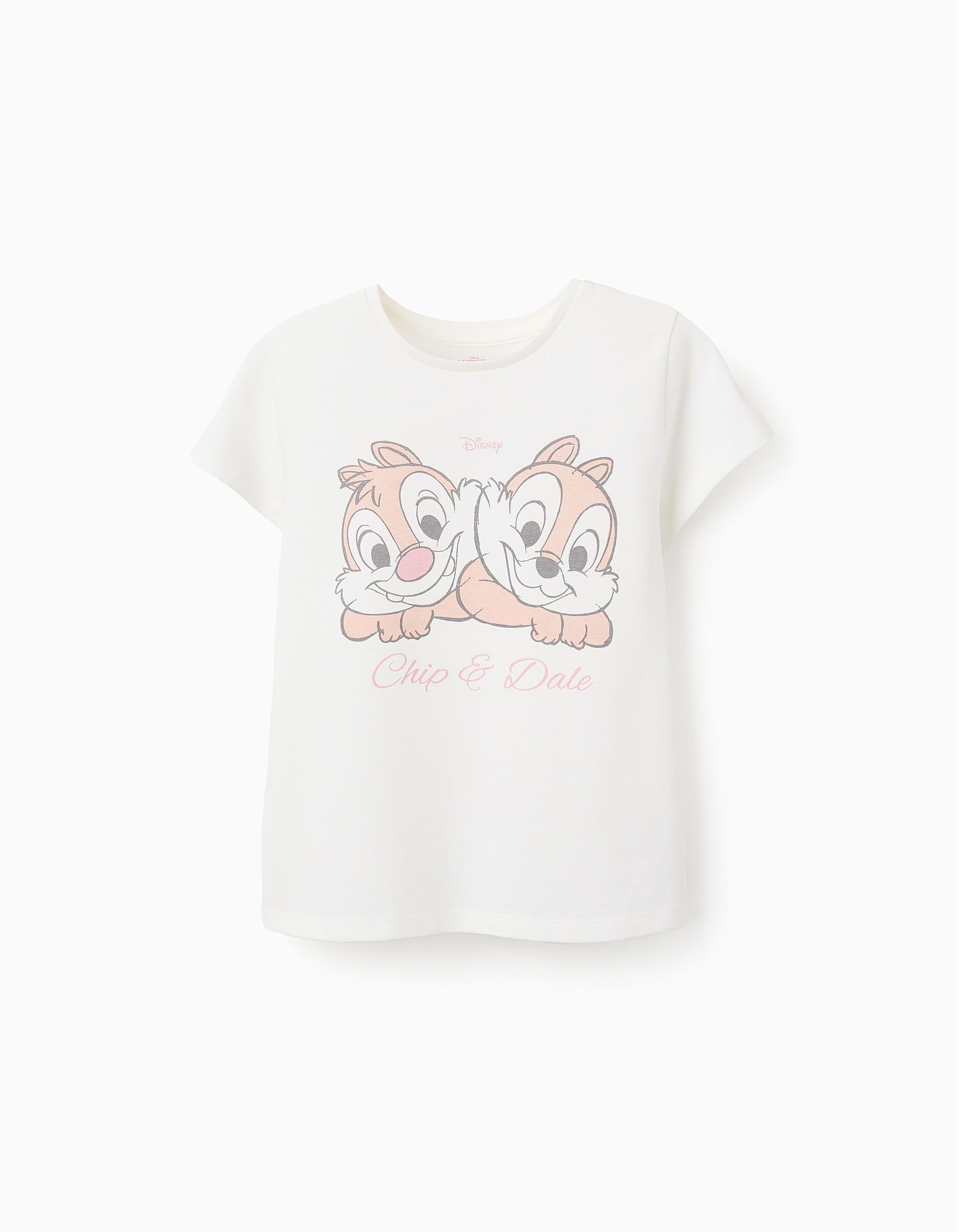 White T-shirt for girls with Chip & Dale print from Disney, 100% cotton. Printed inner label to not irritate the skin. A-line fit and fluid.