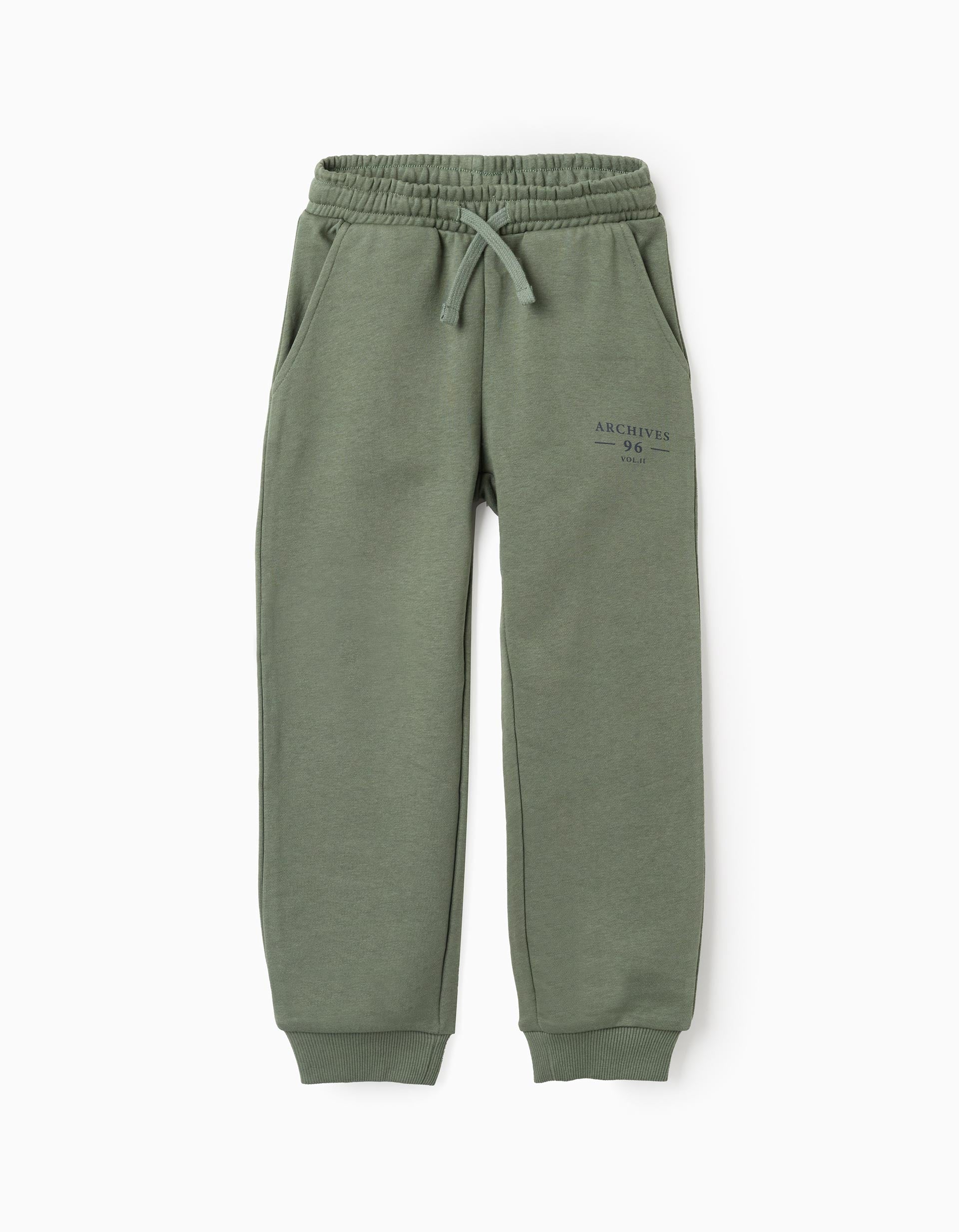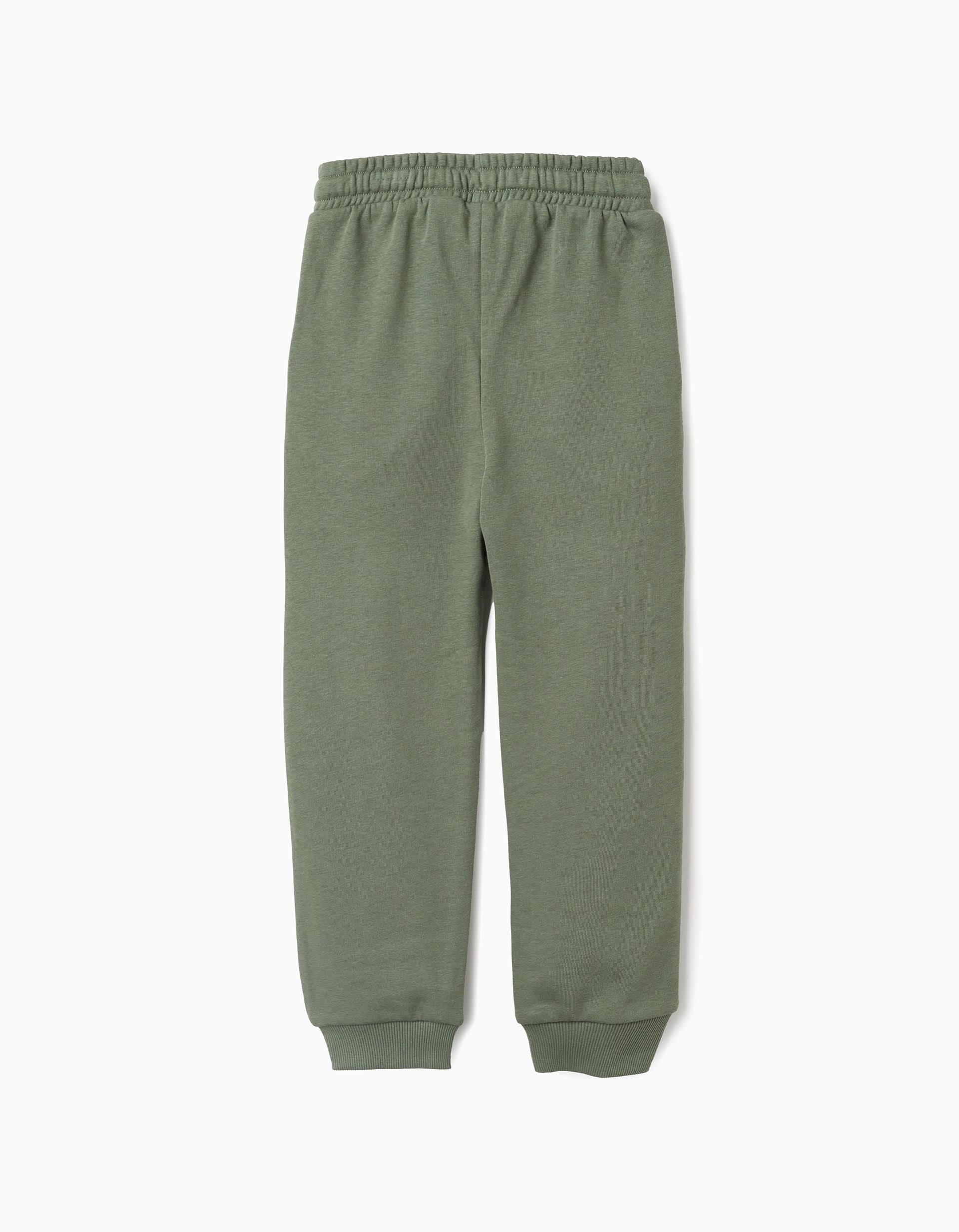 Green joggers for boys, in a soft and comfortable cotton blend. Printed detail. Side pockets. Elasticated waist with drawstring. Fitted hems for a perfect fit.