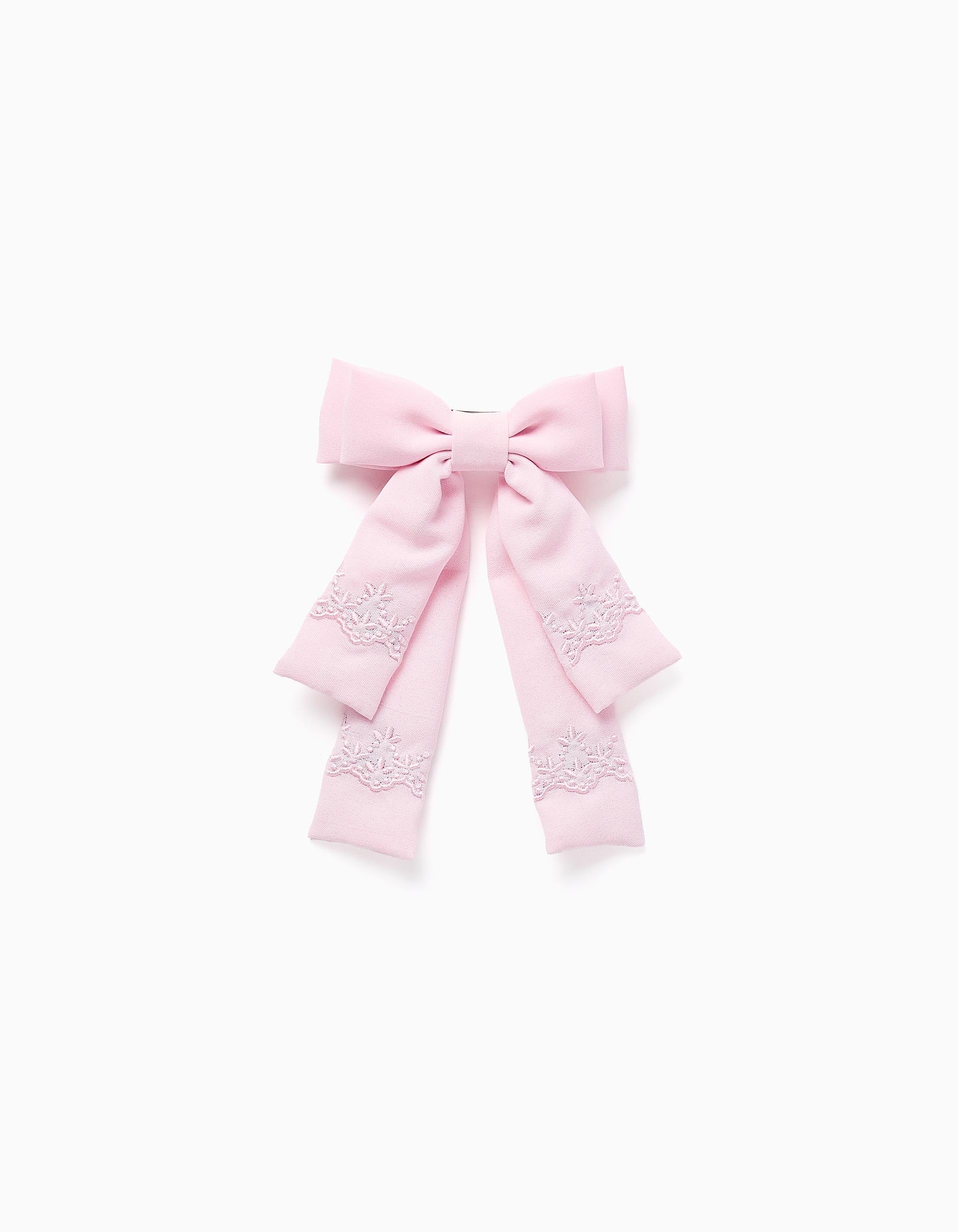 Hair Clip with Bow and Embroidery for Babies and Girls, Pink