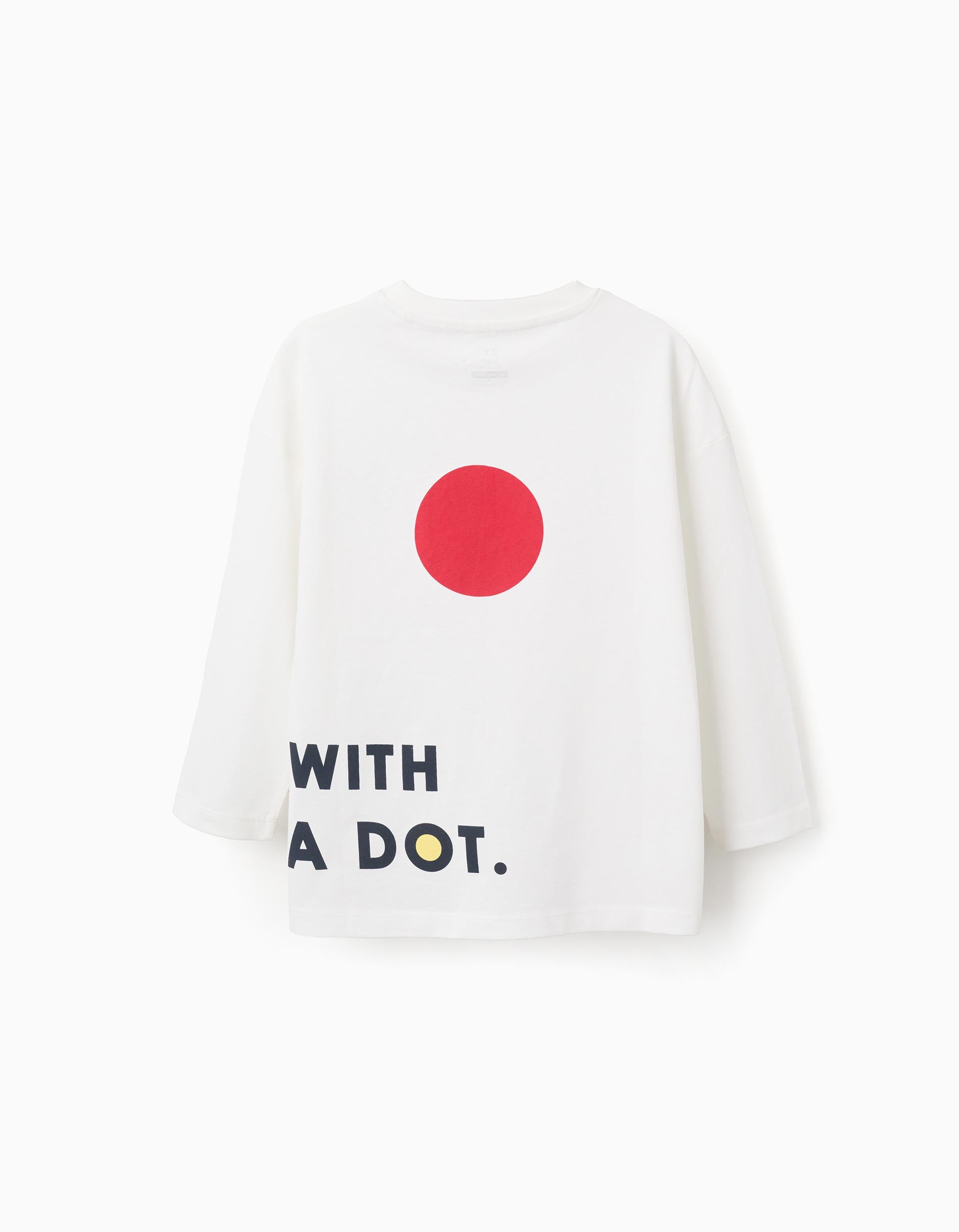 Long Sleeve Cotton T-shirt for Boys 'Dot', White