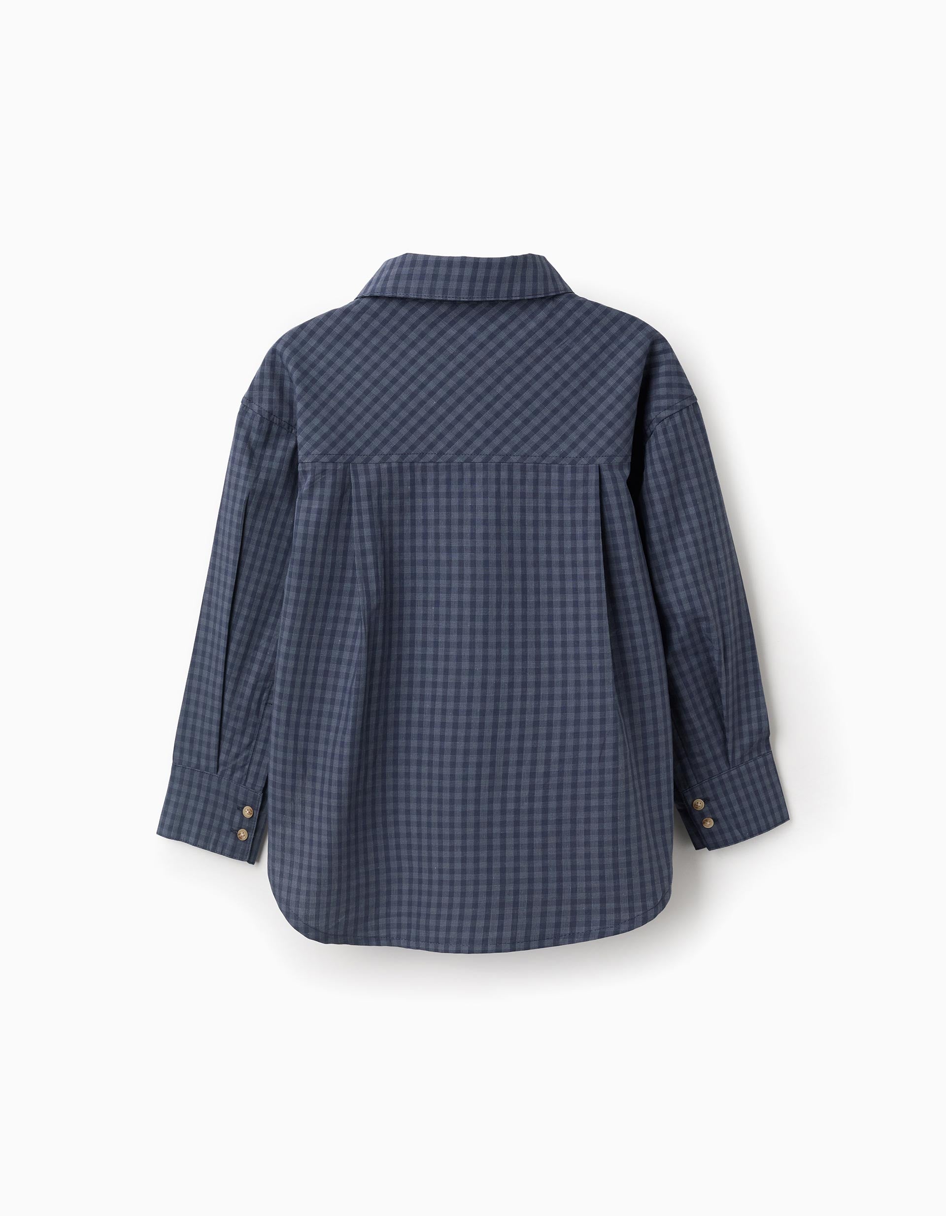 Loose Fit Vichy Shirt for Girls, Dark Blue