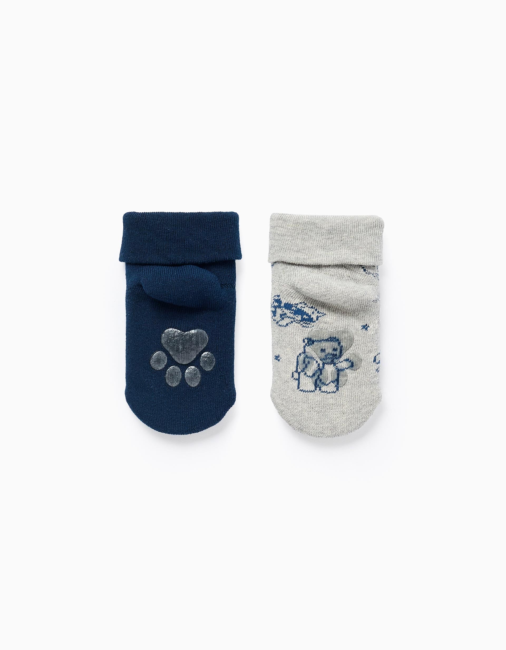 Pack 2 Pairs of Non-slip Socks for Baby Boys 'Raccoon', Blue