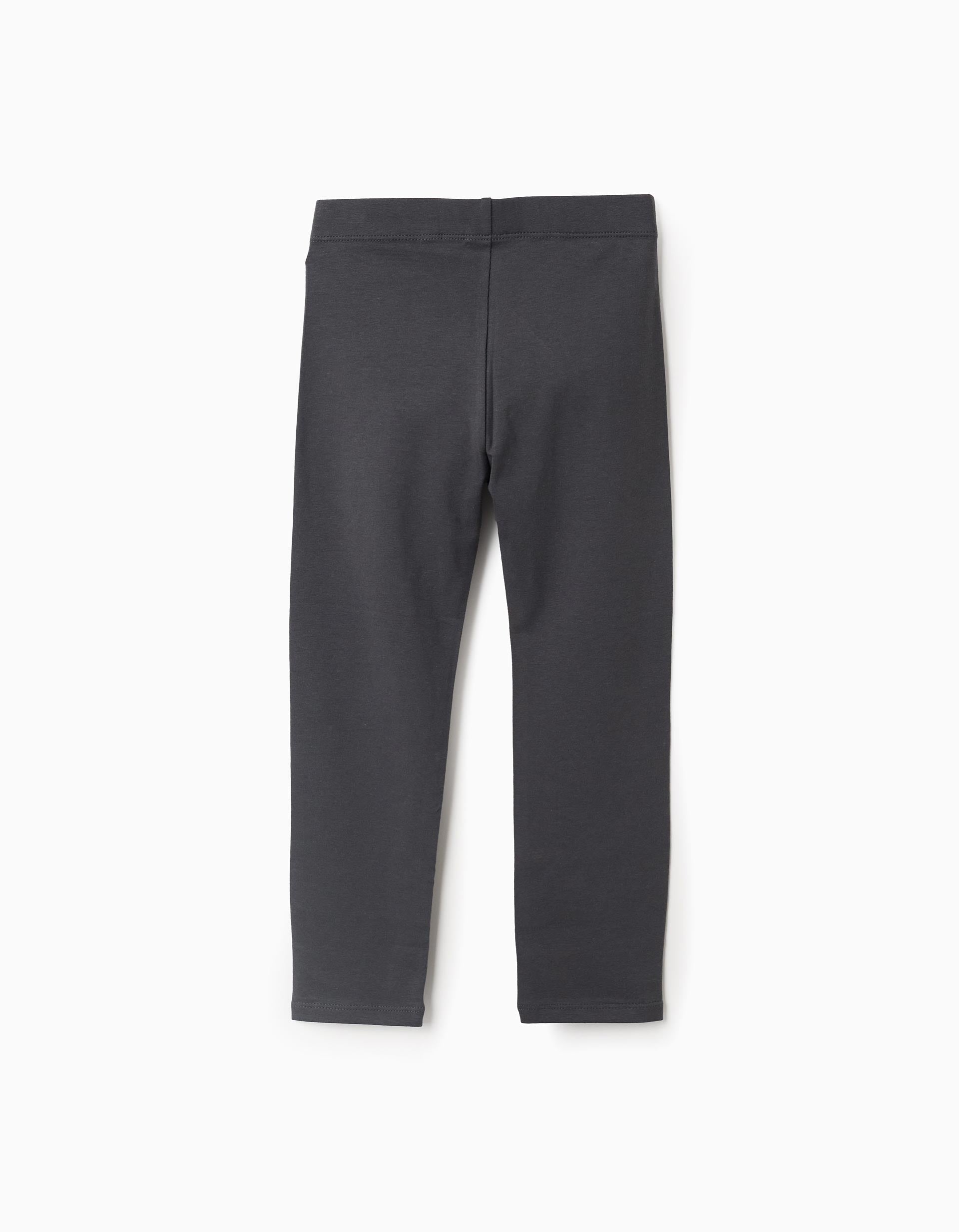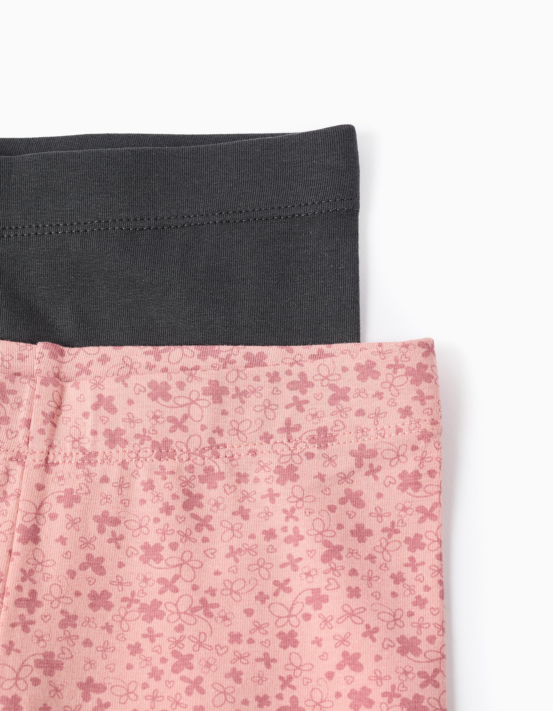 Pack of two leggings for girls, in cotton with a touch of stretch for greater comfort and freedom of movement. Includes a pink pair with a floral motif and a plain dark grey pair. Elasticated and comfortable waistband. For everyday looks. We Care: item with Oeko-Tex Standard 100 certification, which guarantees the absence of harmful or irritating substances for the skin.