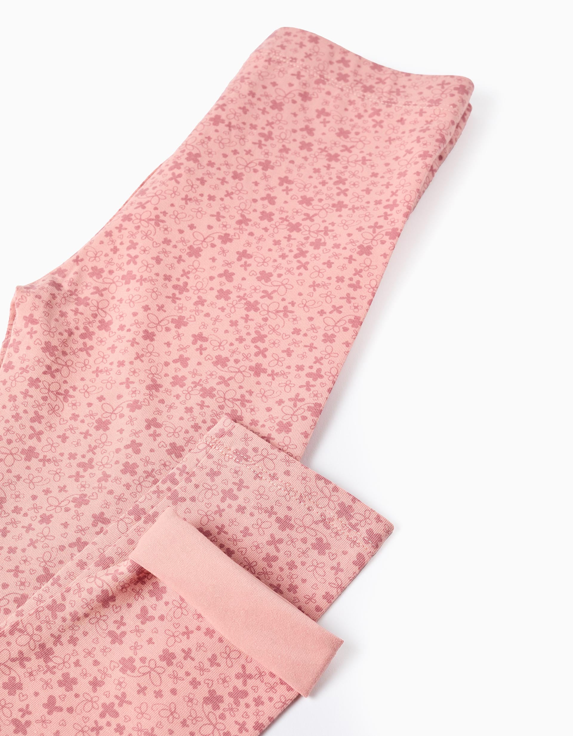 Pack of 2 Floral/Smooth Leggings for Girls, Pink/Grey