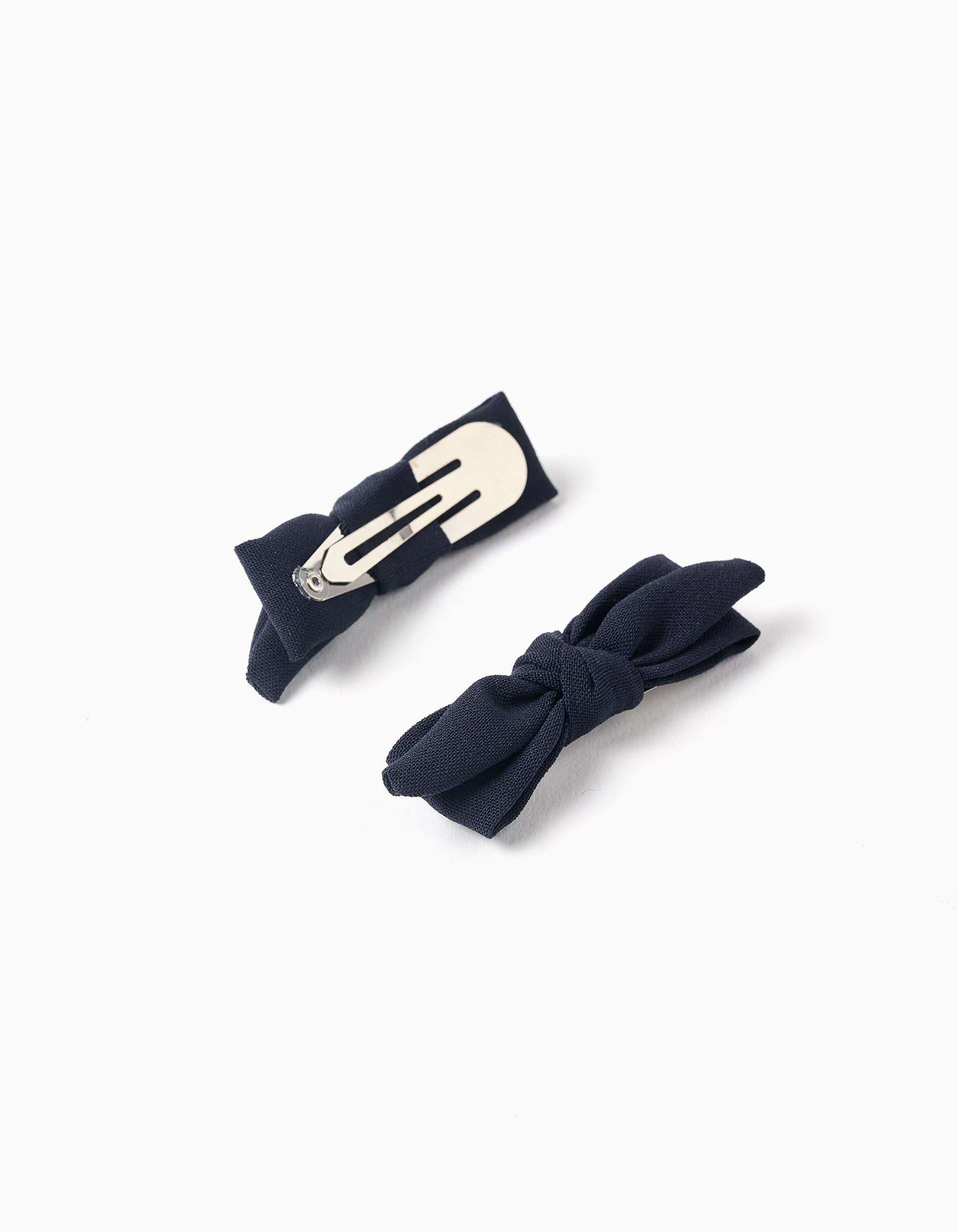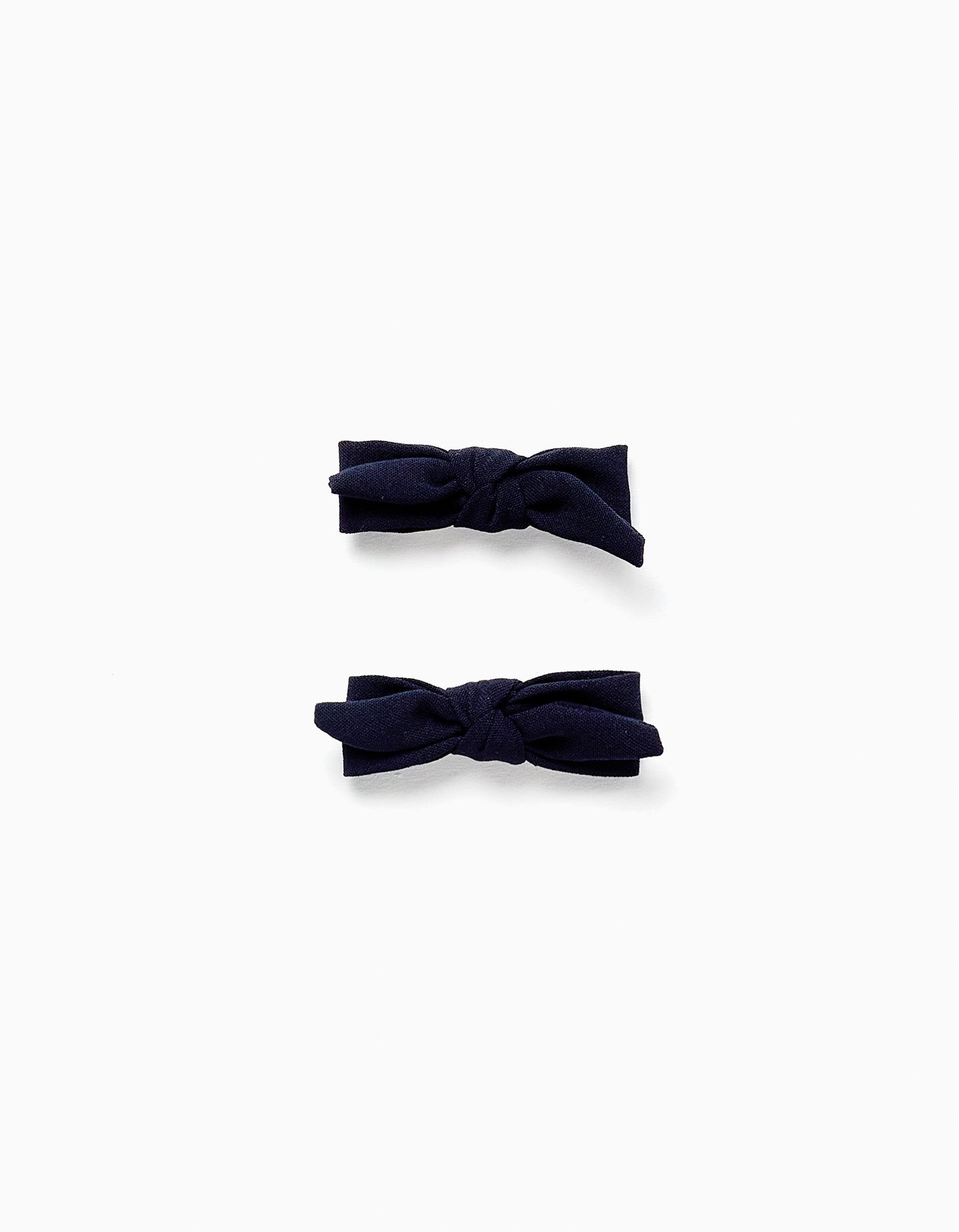 Pack of 2 Hair Clips with Bow in Cotton for Girls, Dark Blue