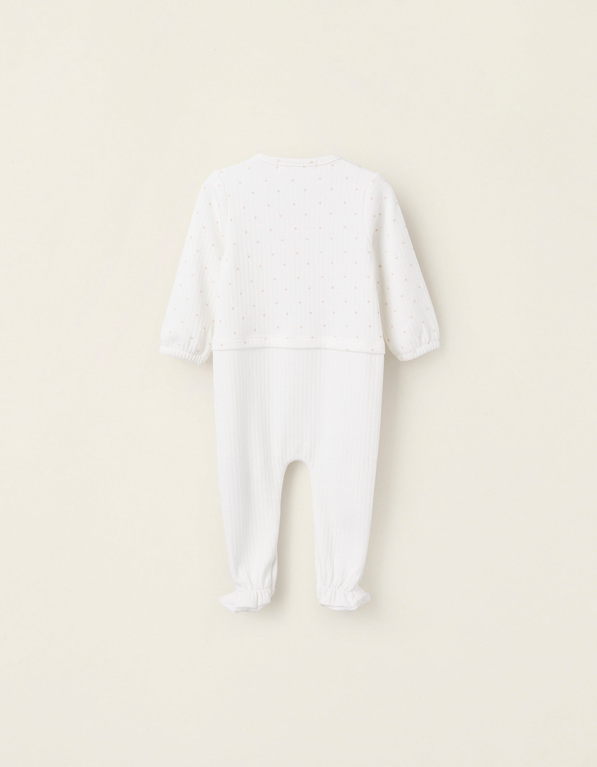 Ribbed Sleepsuit for Newborn Girls 'Diamonds', White