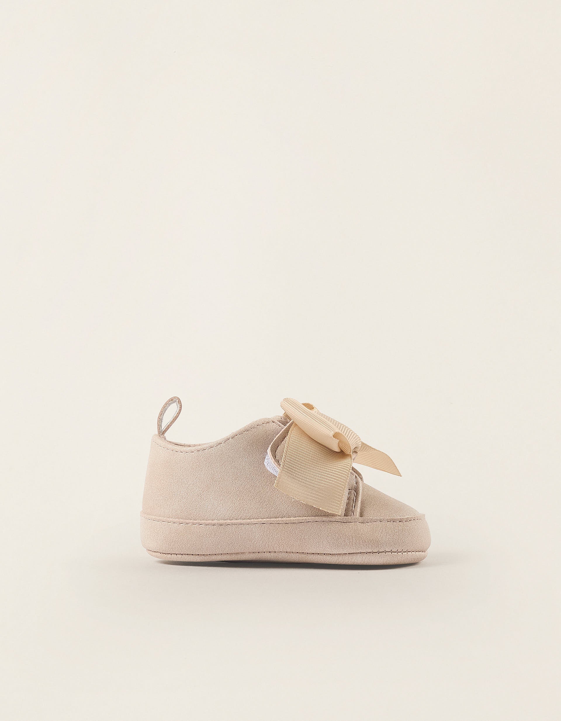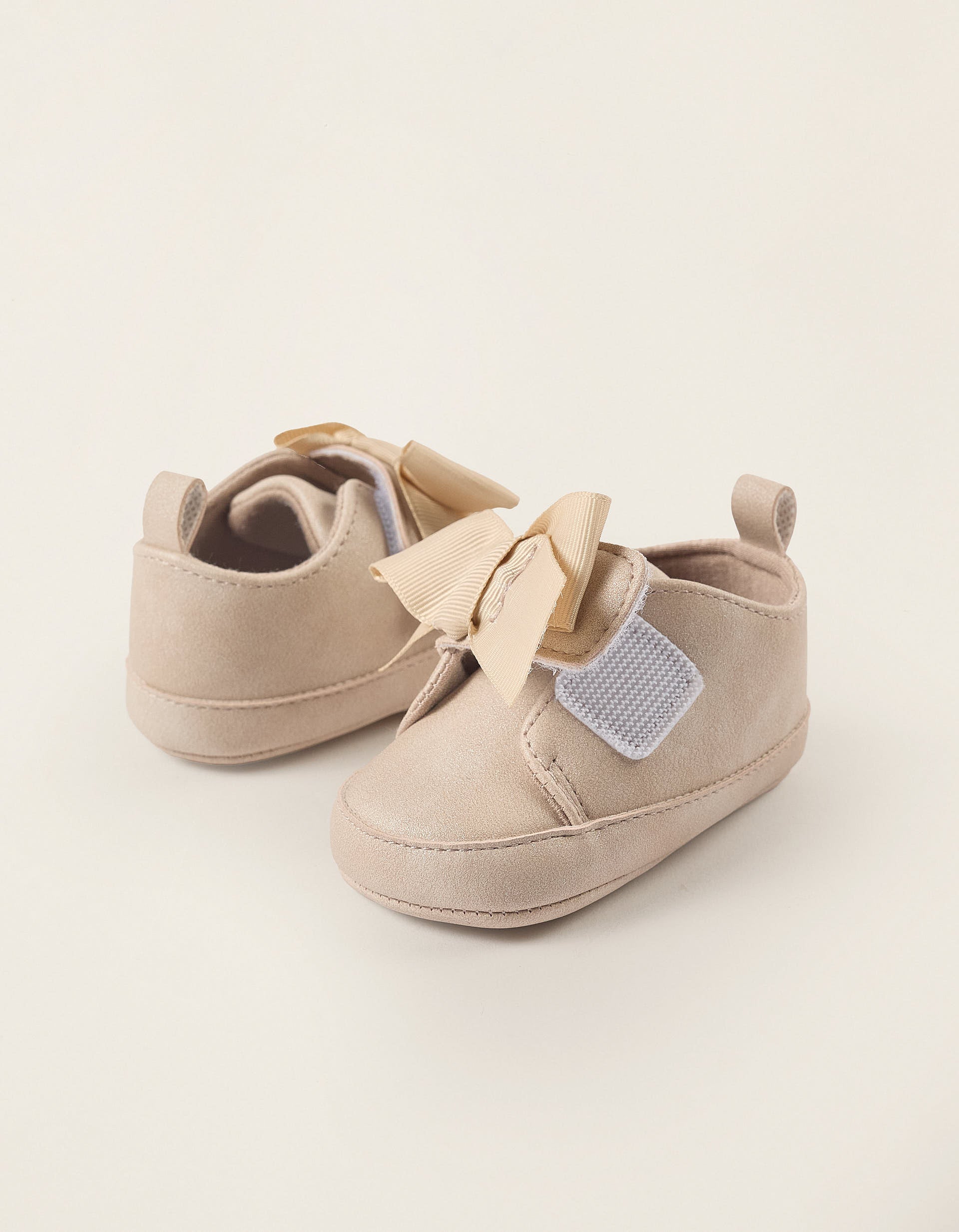 Shoes with Touch Fastener and Bow for Newborn Girls, Beige