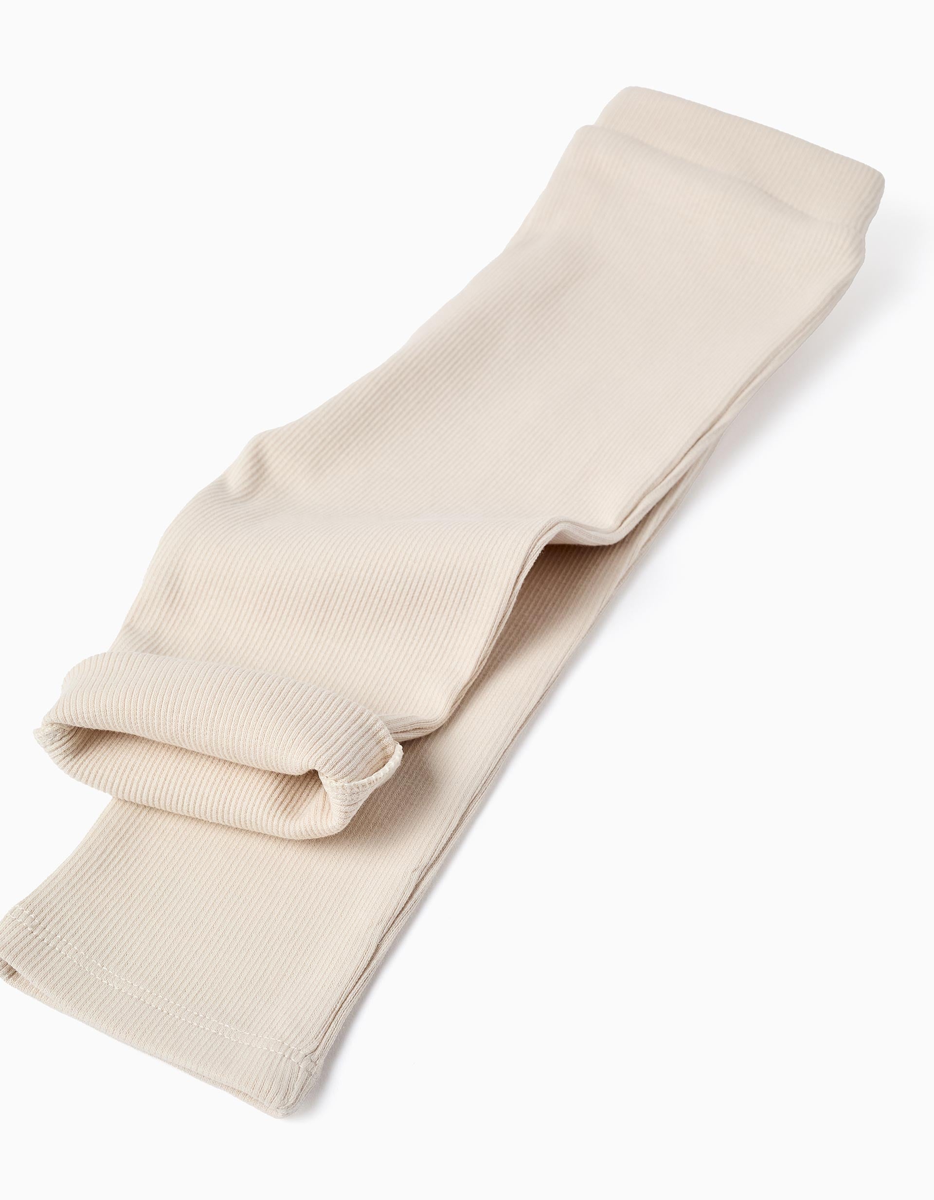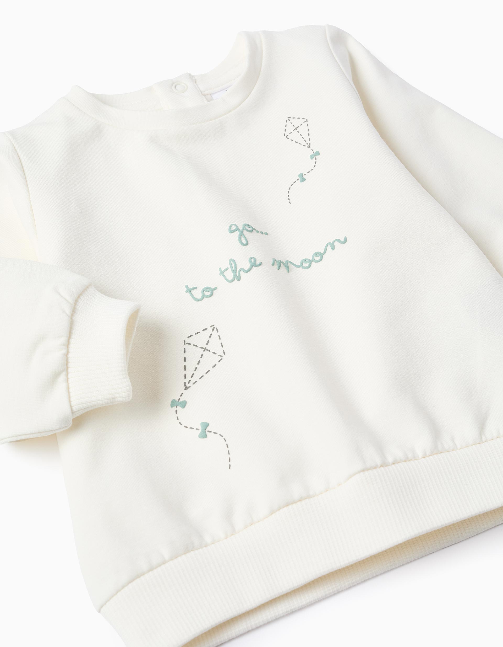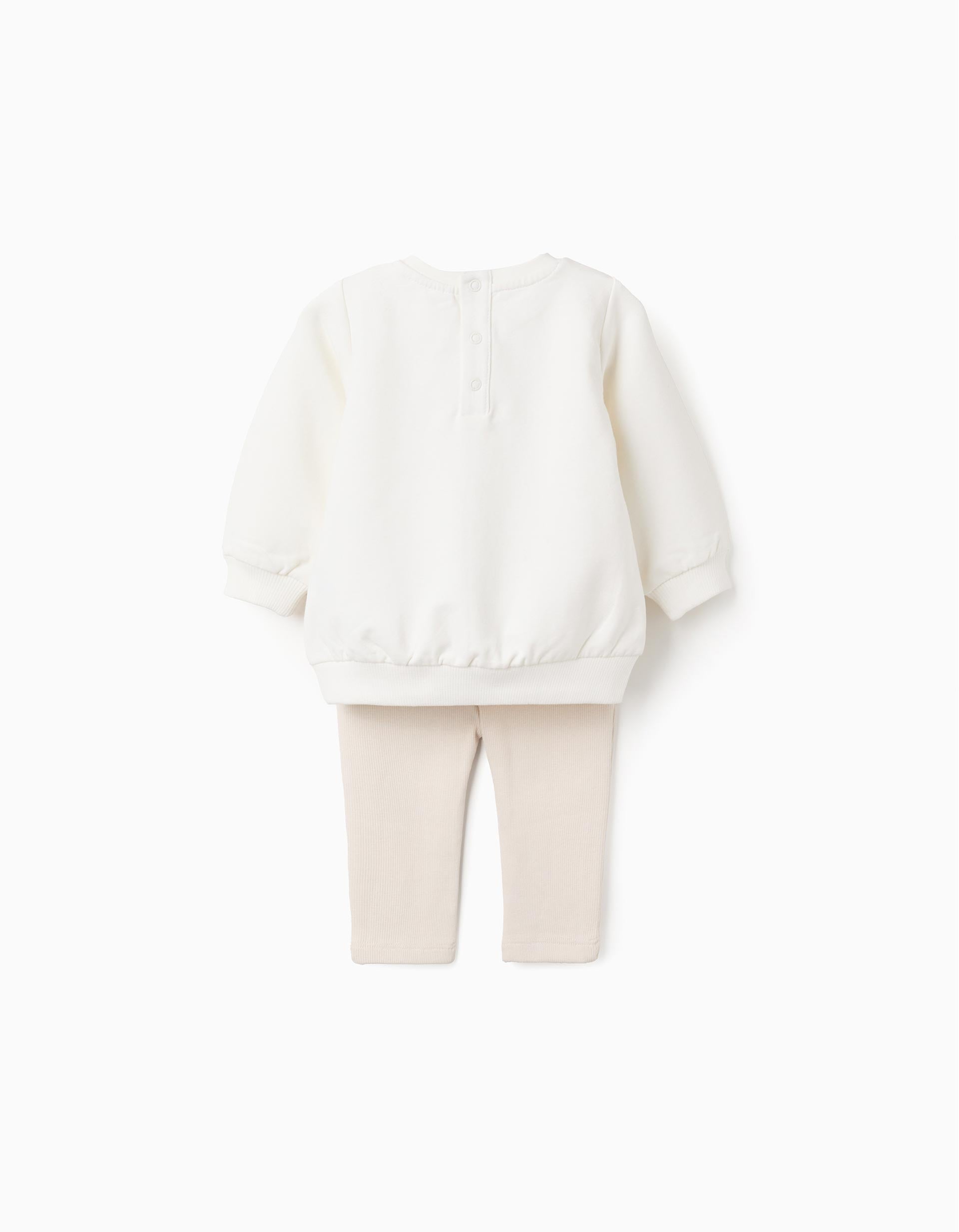 Two-piece set for newborn girls. It includes a white sweatshirt with a front print; and beige ribbed trousers with a comfortable elastic waist. An adorable set to wear together or even to combine with other garments!