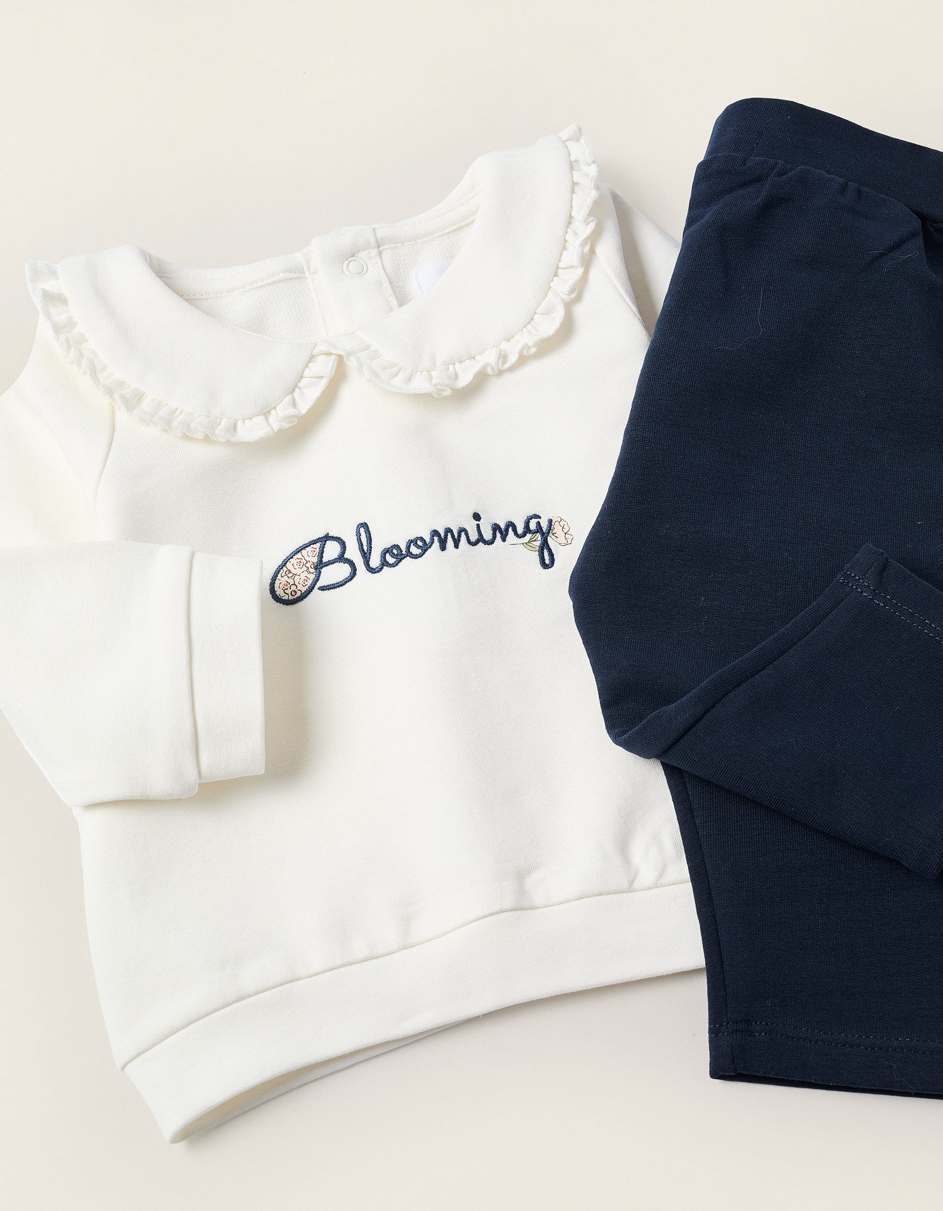 Sweatshirt + Trousers for Newborns 'Blooming', White/Dark Blue