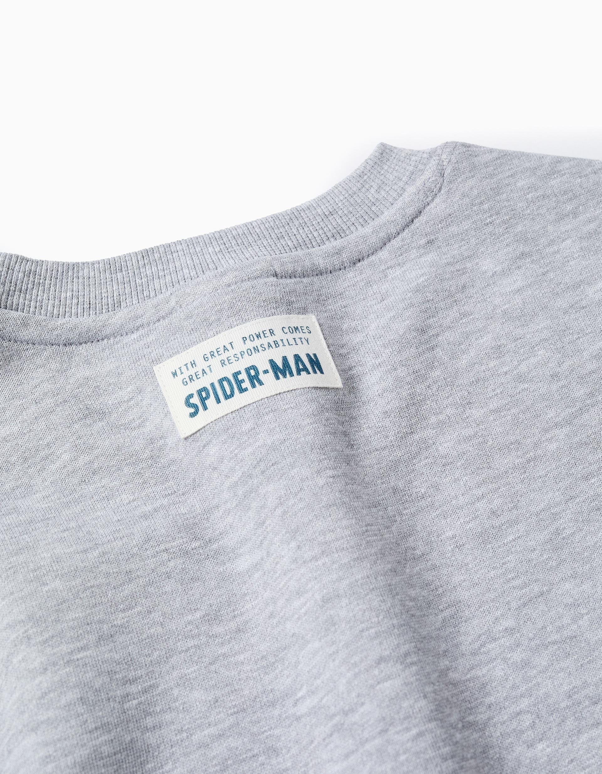 Grey sweatshirt with Spider-Man print for boys. Brushed interior for greater thermal comfort. Ribbed edges for a perfect fit. Practical and cosy.