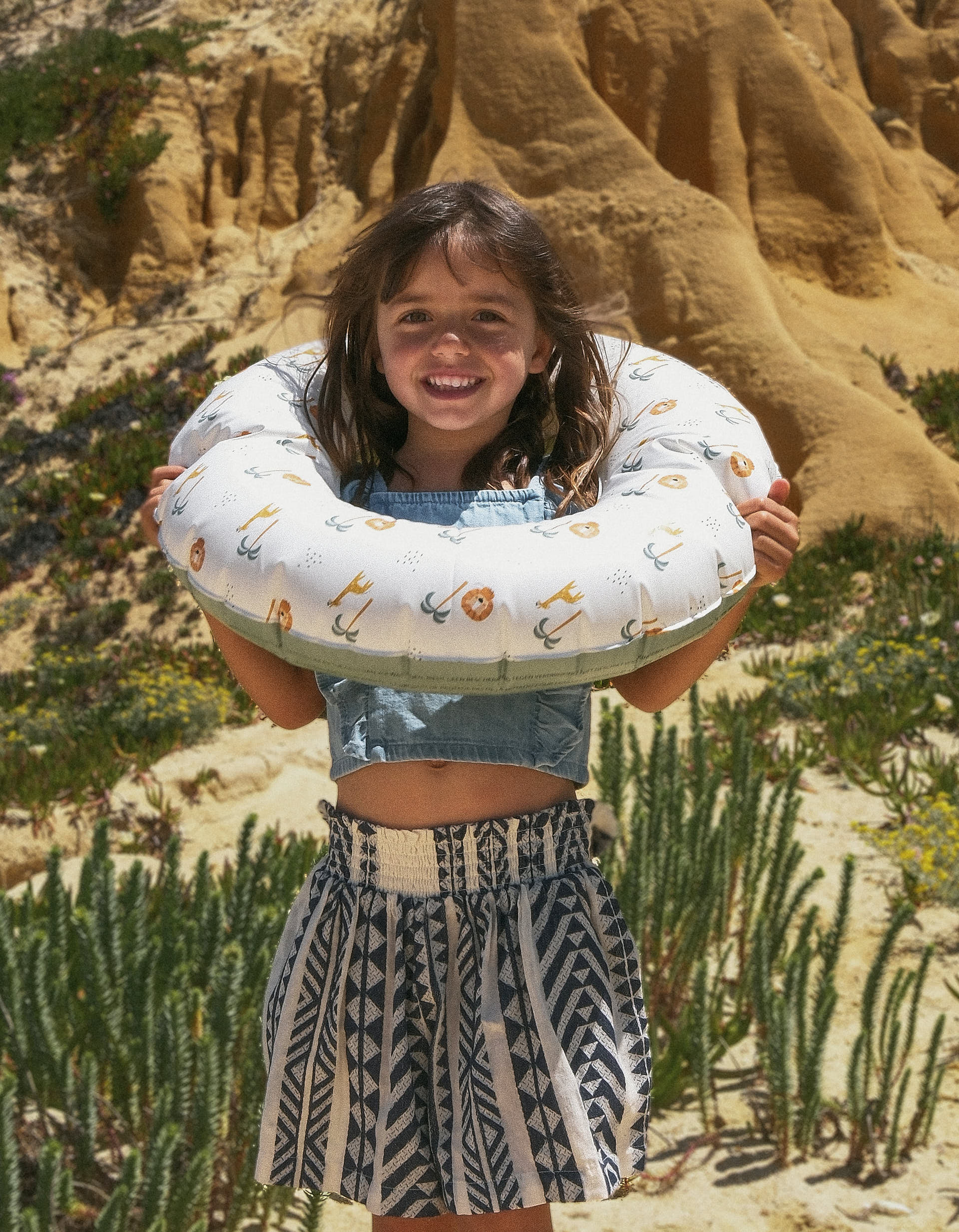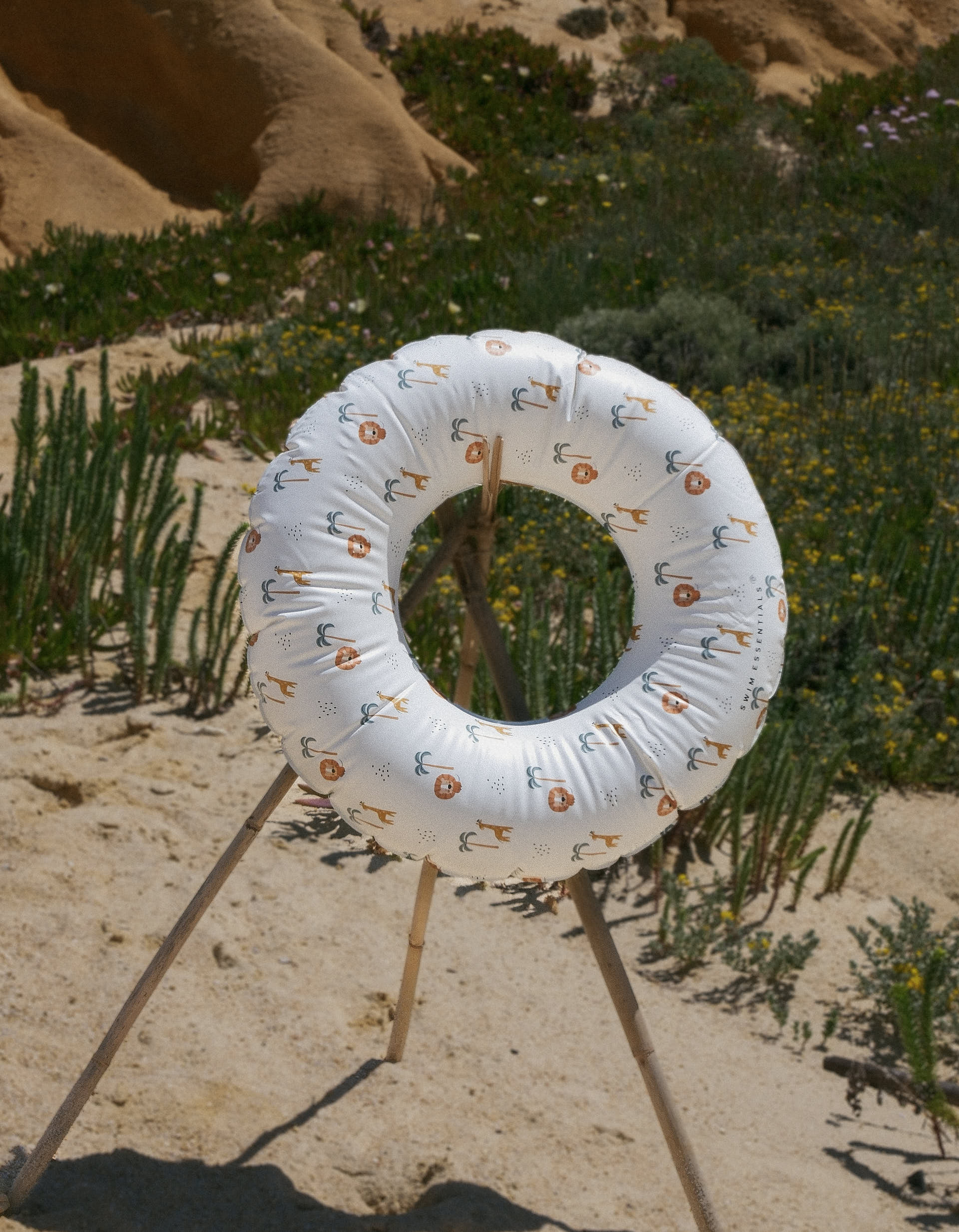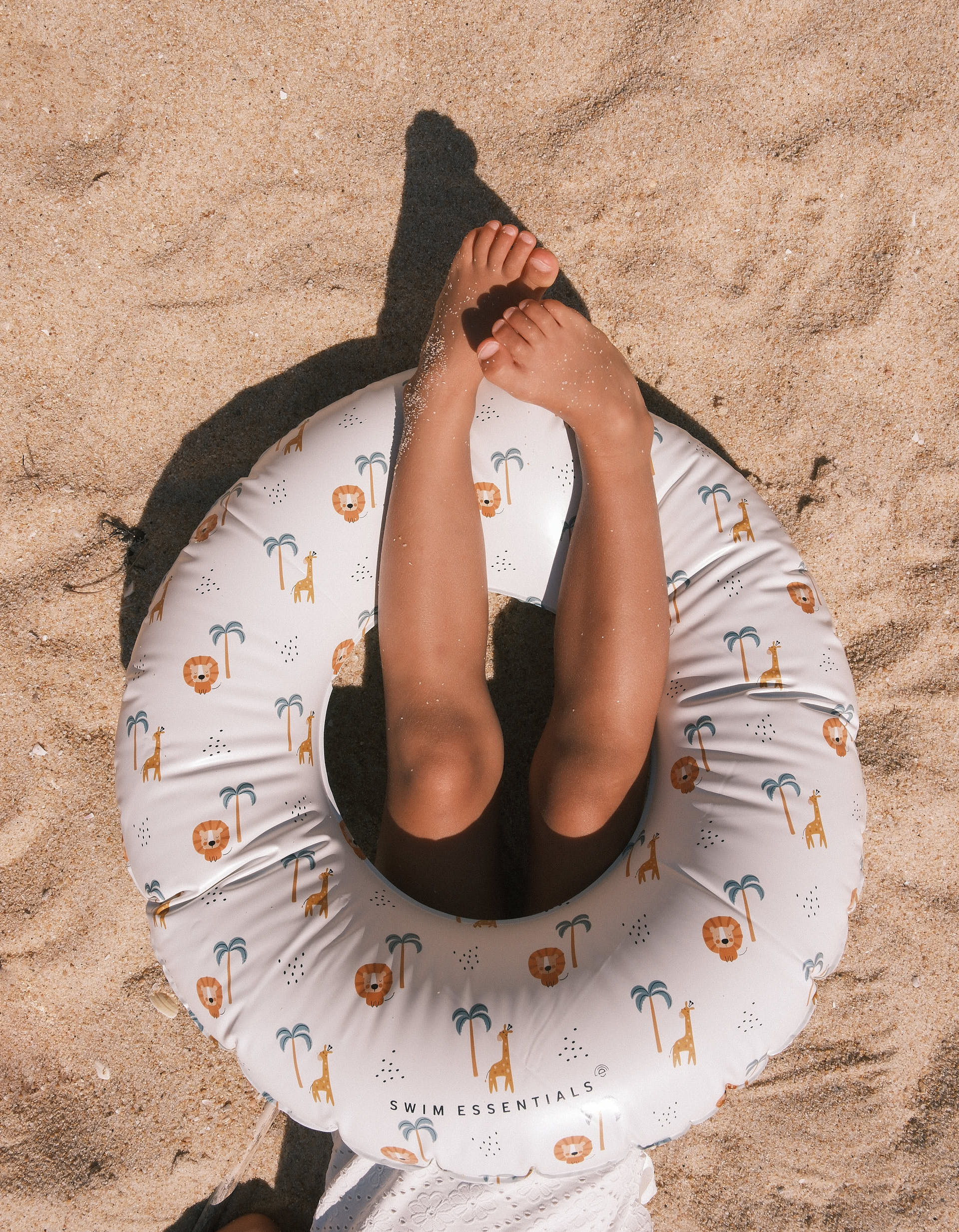 This swimming float has a fun jungle-themed design. Children can sit on it to float or hold onto it when they are tired. Thus, the float is not only an aesthetic choice but also a safe option for little ones. It has been specially developed for children from 3 years old, supporting a maximum load of 50 kg. With a diameter of 55 cm, it is easy to store and transport.