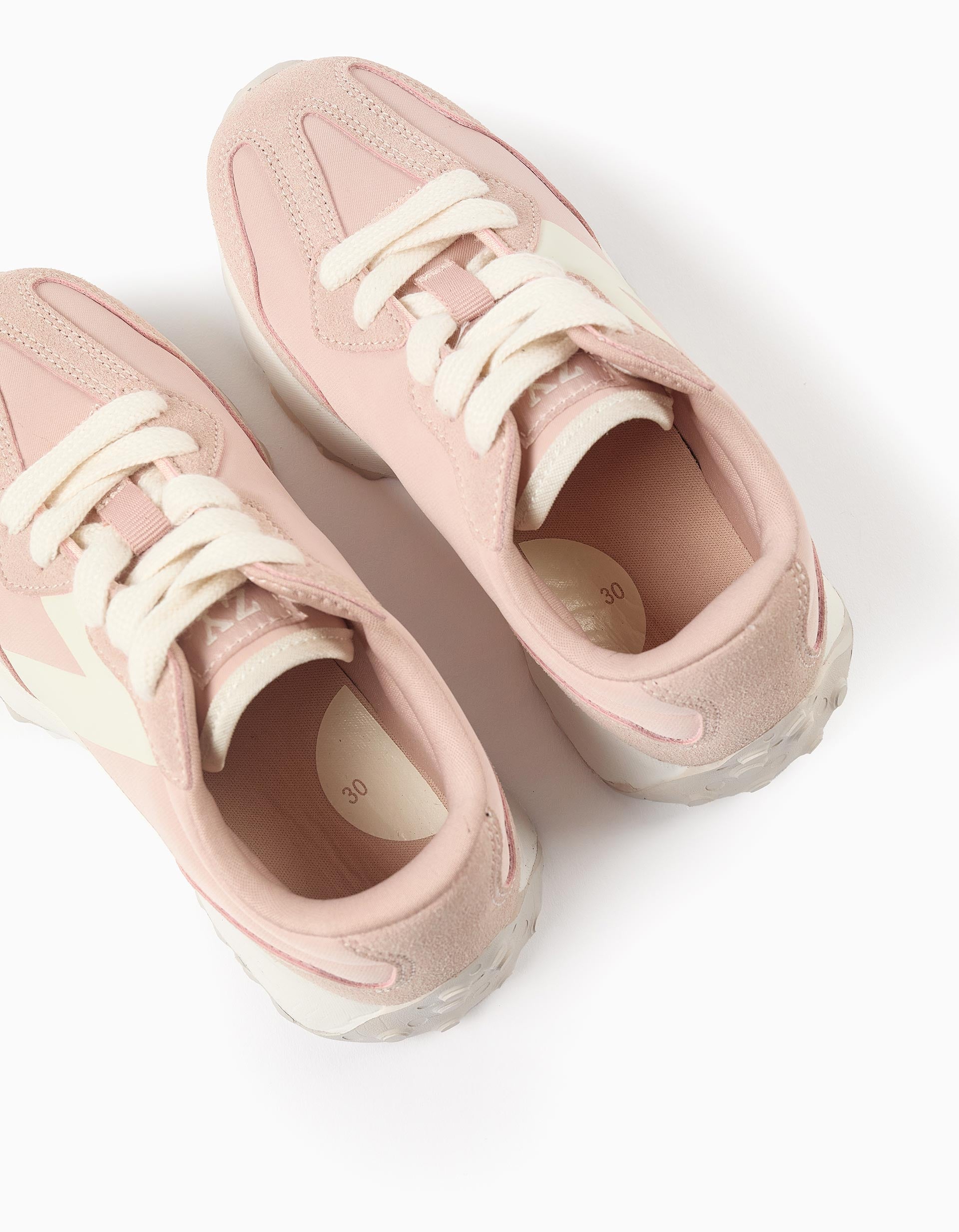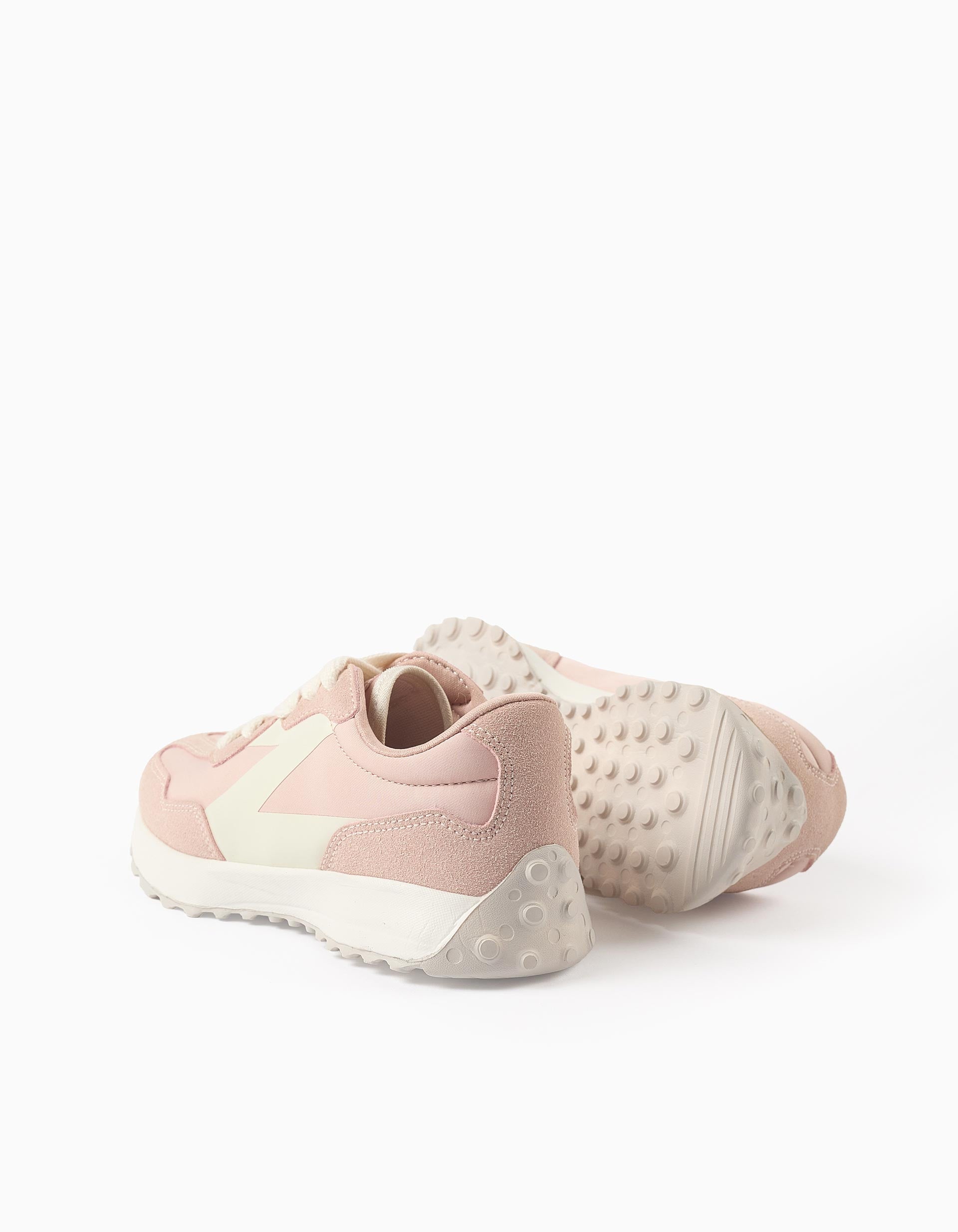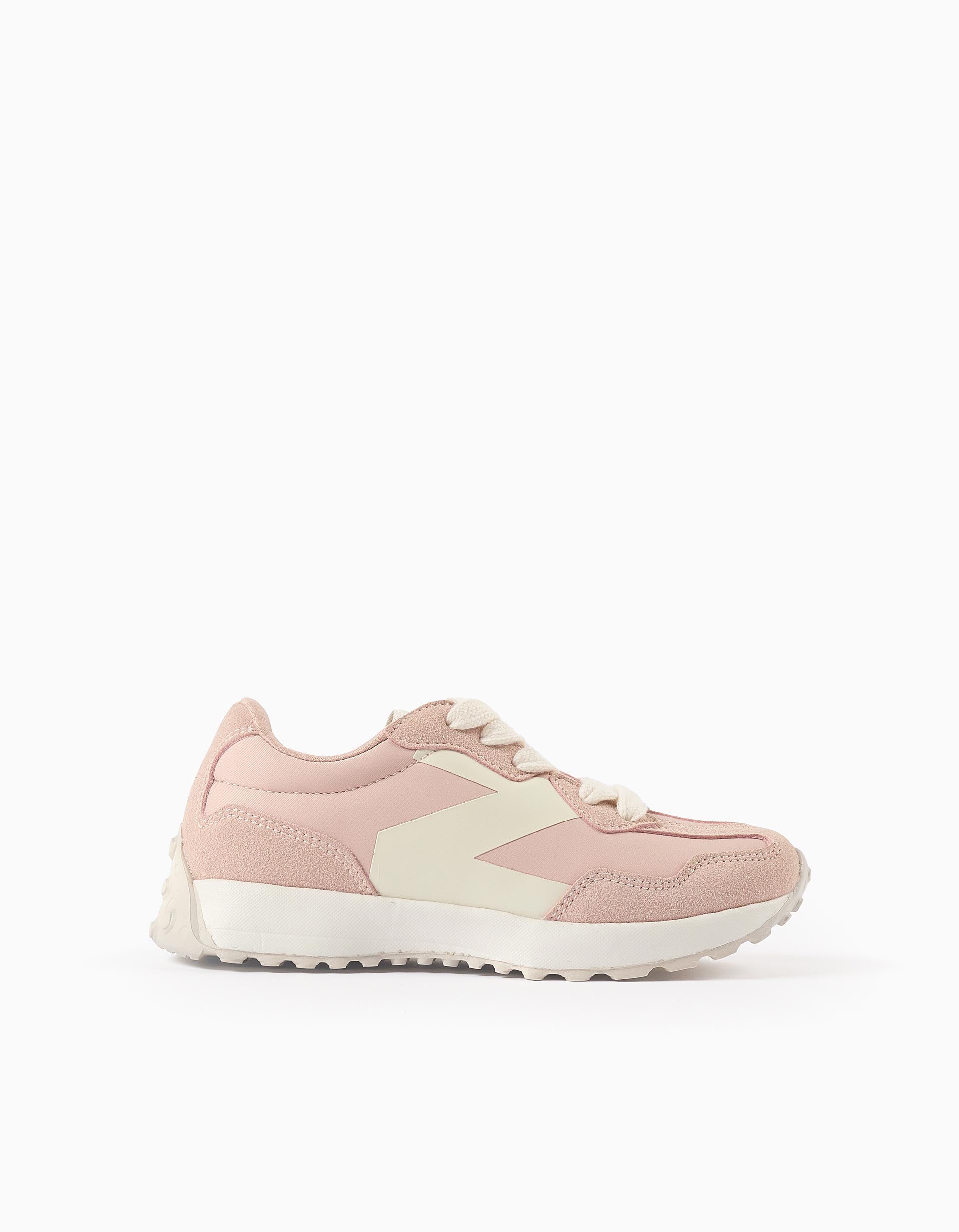 Pink lace-up trainers for girls. Contrasting letter Z in white. Comfortable insole with latex foam. Chunky, non-slip sole, extended to the heel. Trendy and versatile, these trainers are ideal for casual looks! Big Me: Insoles with a semicircle design so that your child can easily identify the corresponding foot, promoting autonomy.