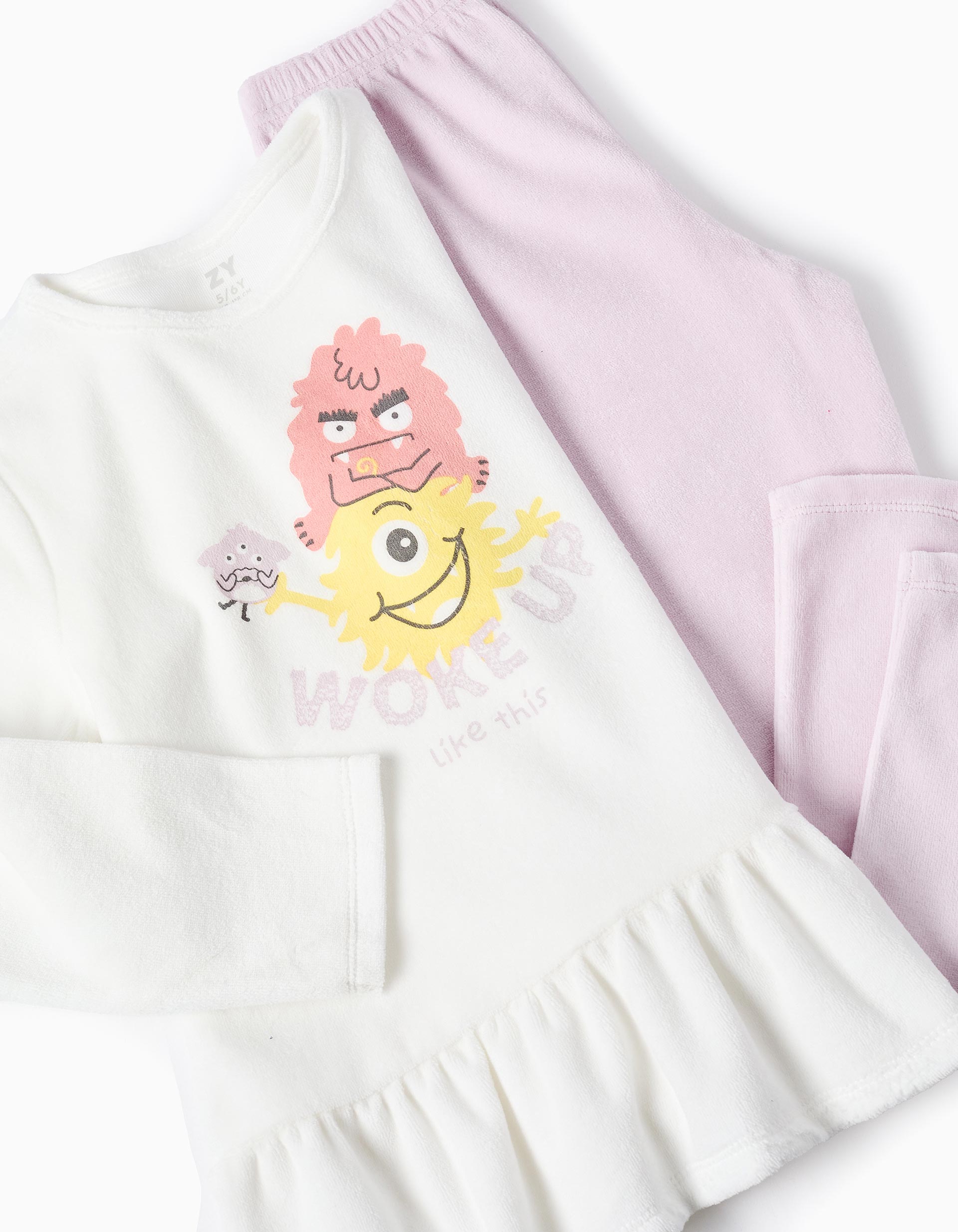Velour Pyjama for Newborn Girls 'Monsters of Emotions', White/Purple