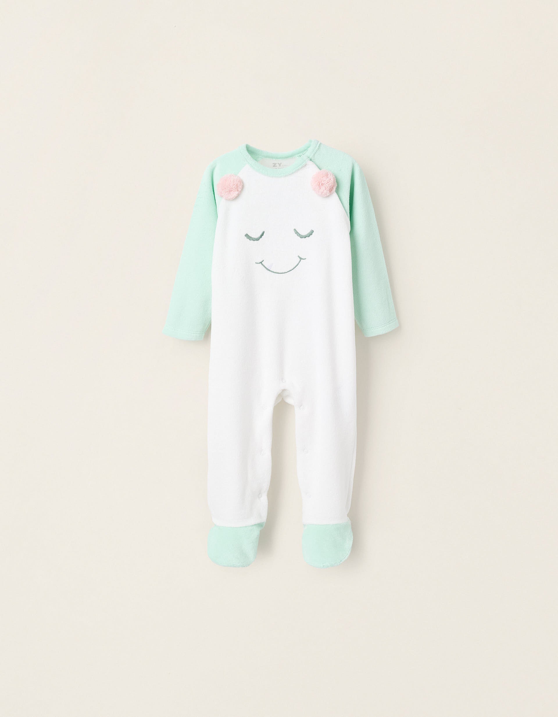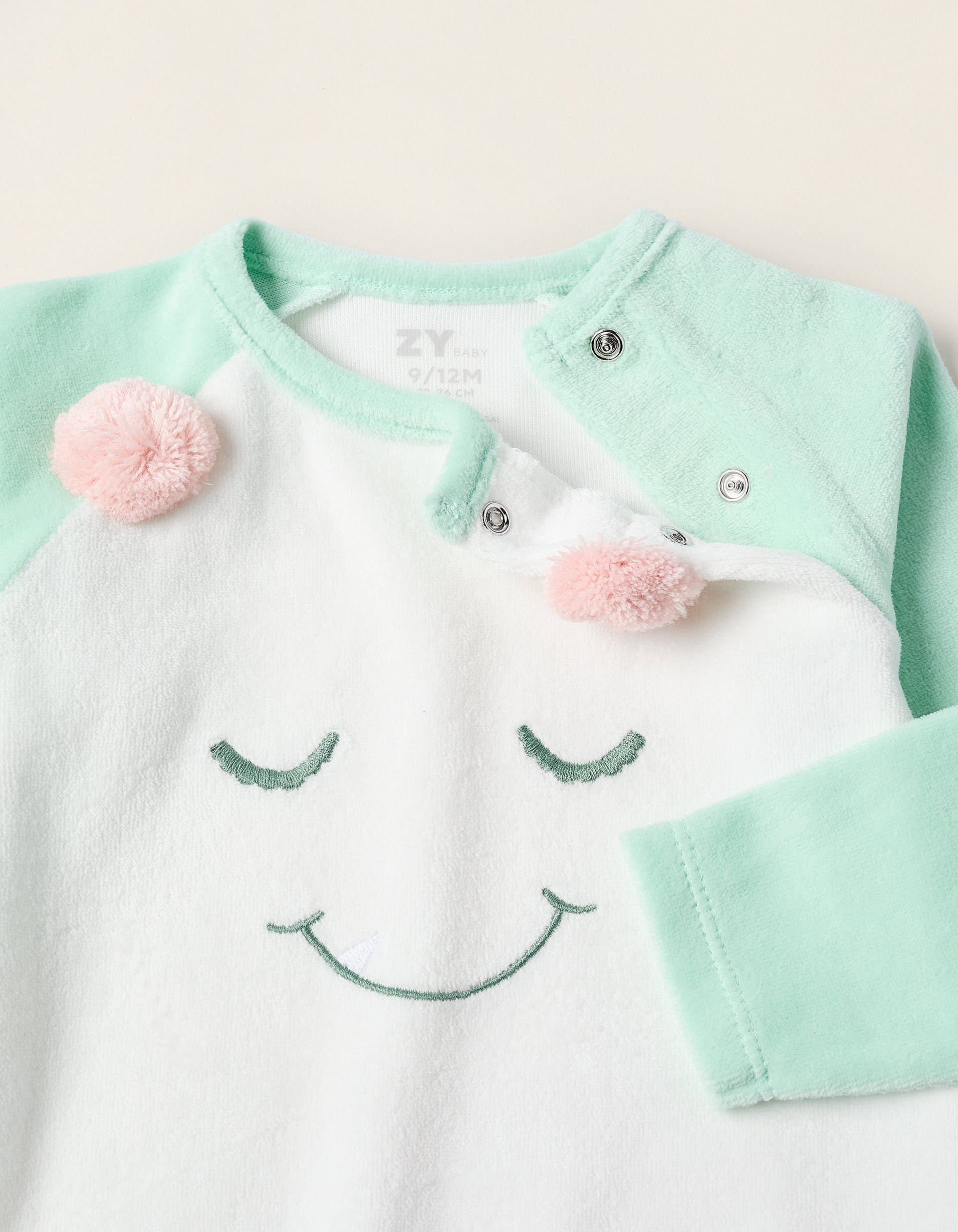 Velour Sleepsuit for Baby Girls 'Monster of Emotions', Green/White