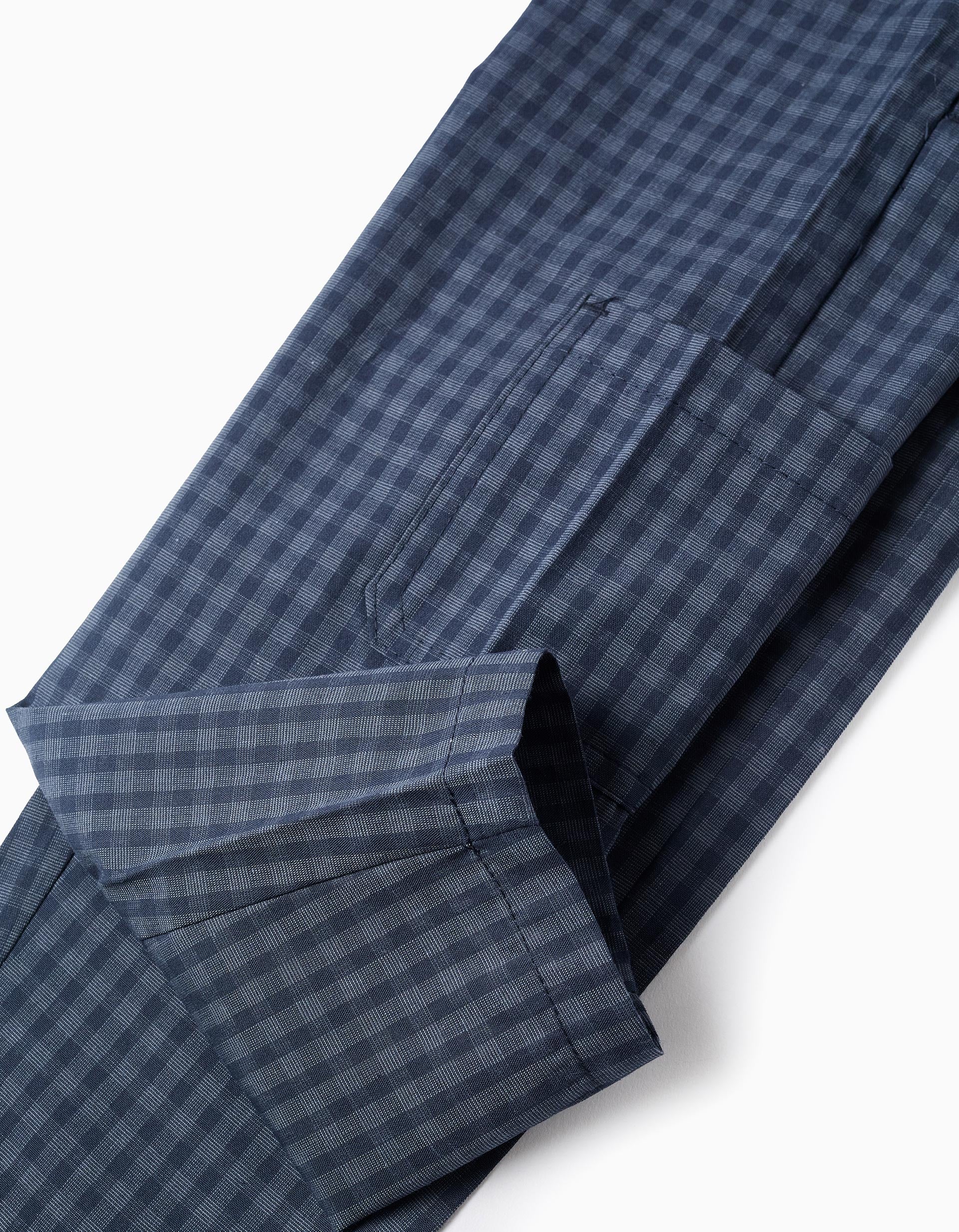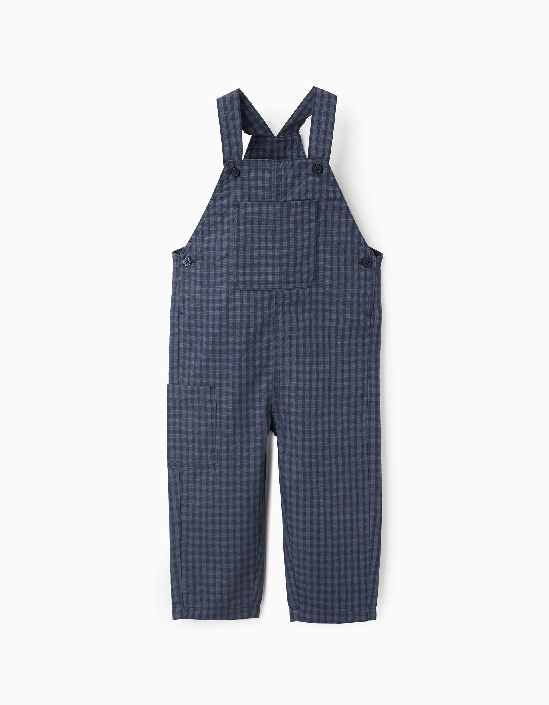 Vichy patterned dungarees for baby boys, in a cotton blend. Chest pocket and cargo pocket. Adjustable straps. A lightweight fabric with an original pattern for unique looks!
