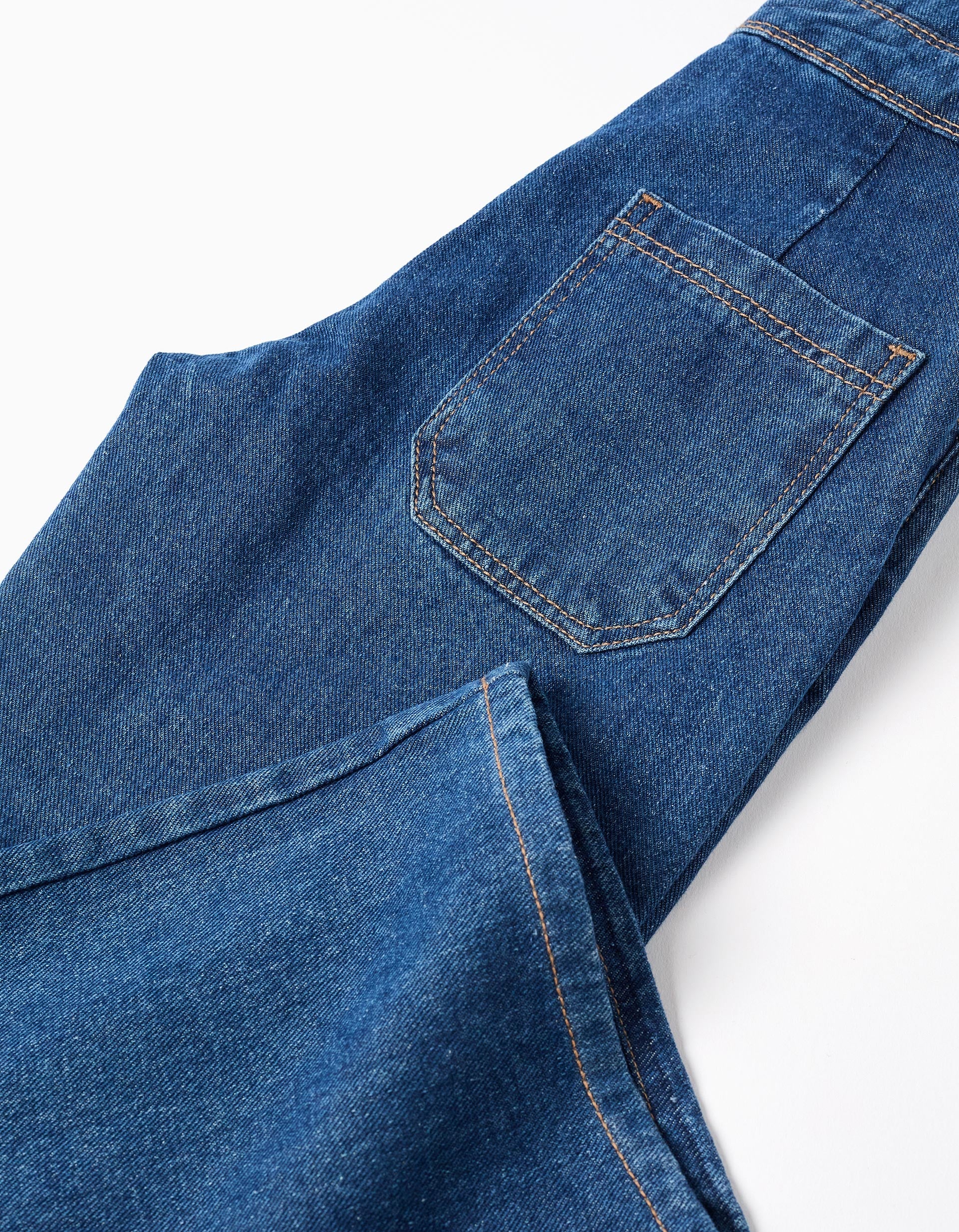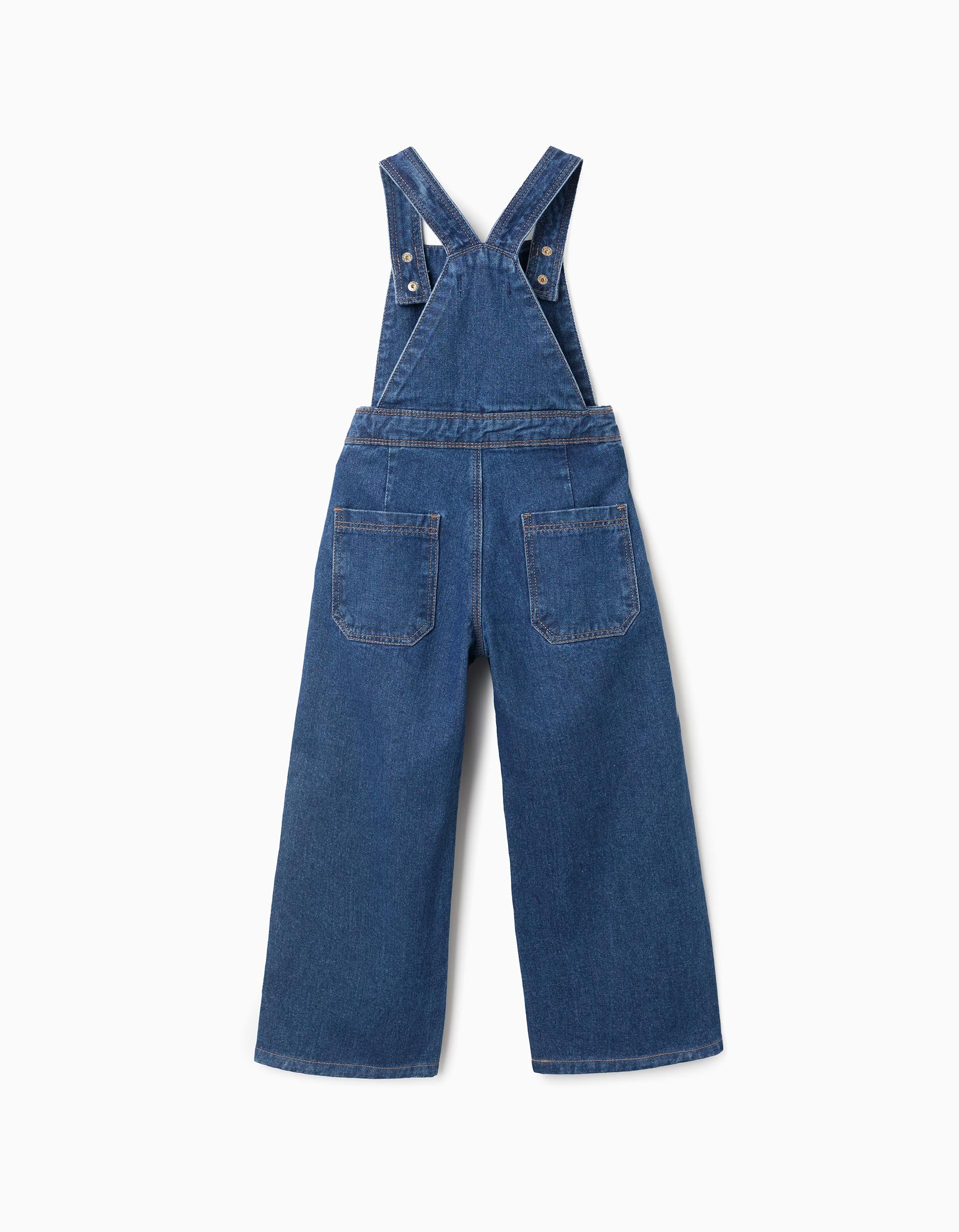 Wide Leg Cotton Denim Dungarees for Girls, Blue