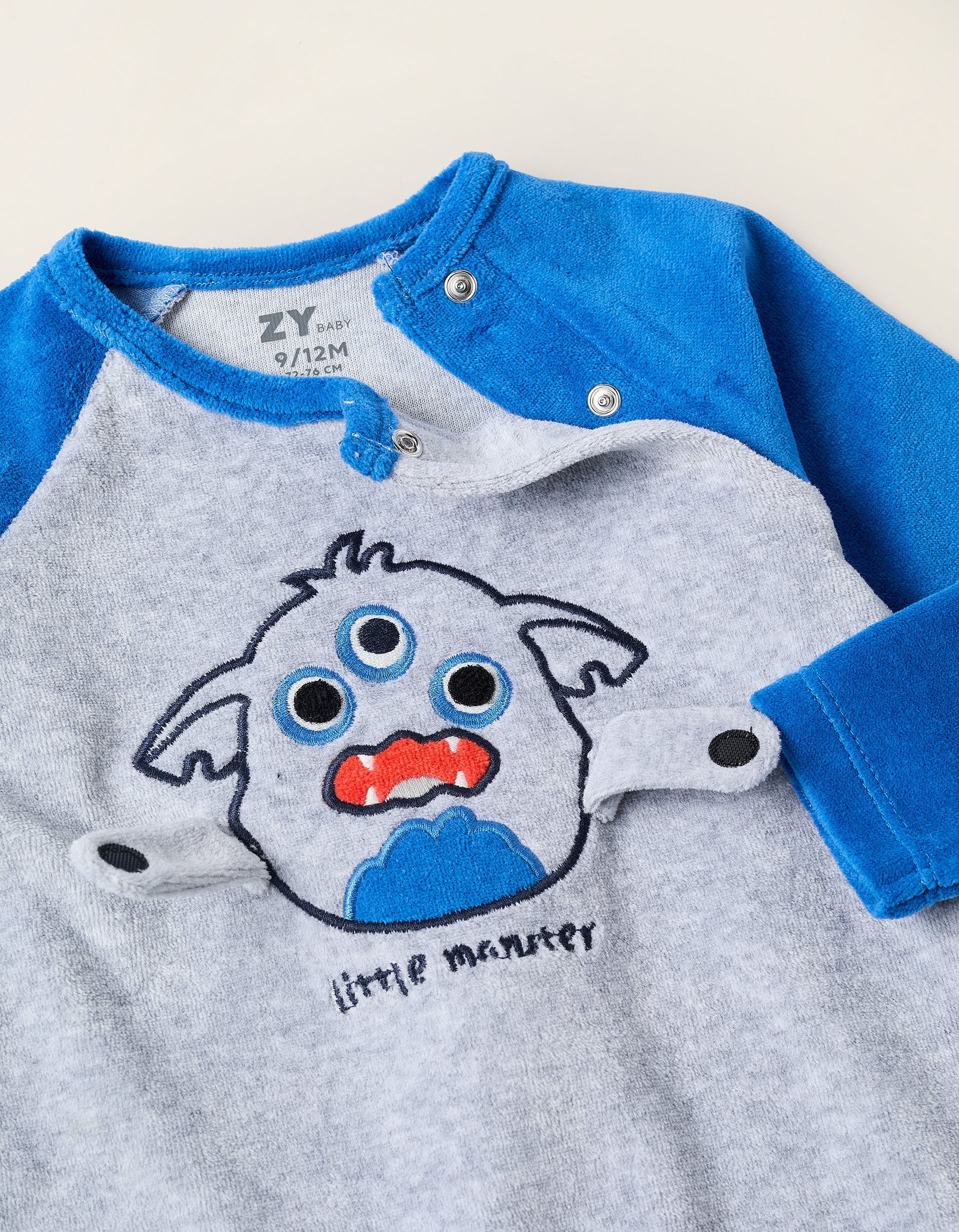 Babygrow de Veludo para Bebé Menino 'Monstro das Emoções', Cinza/Azul