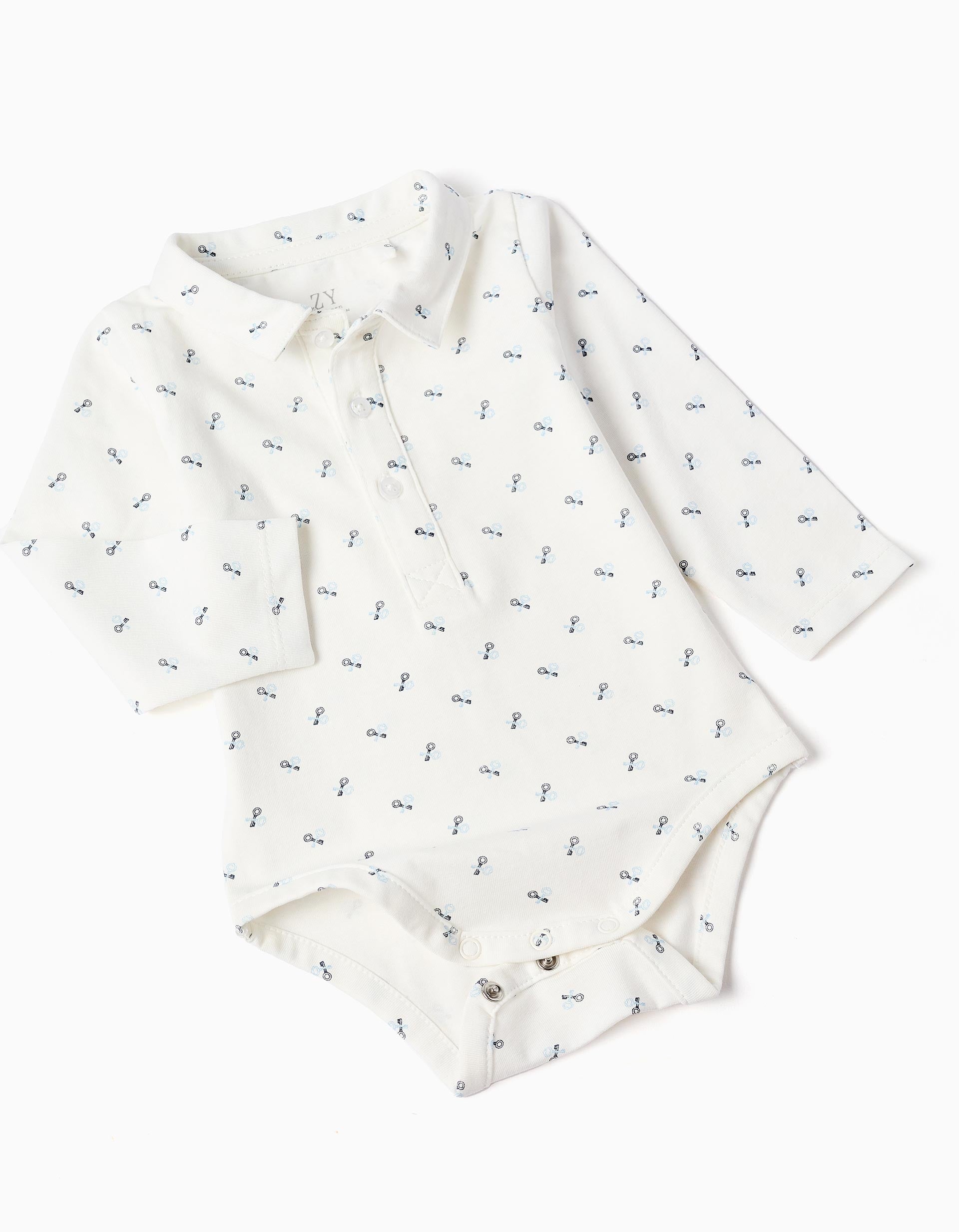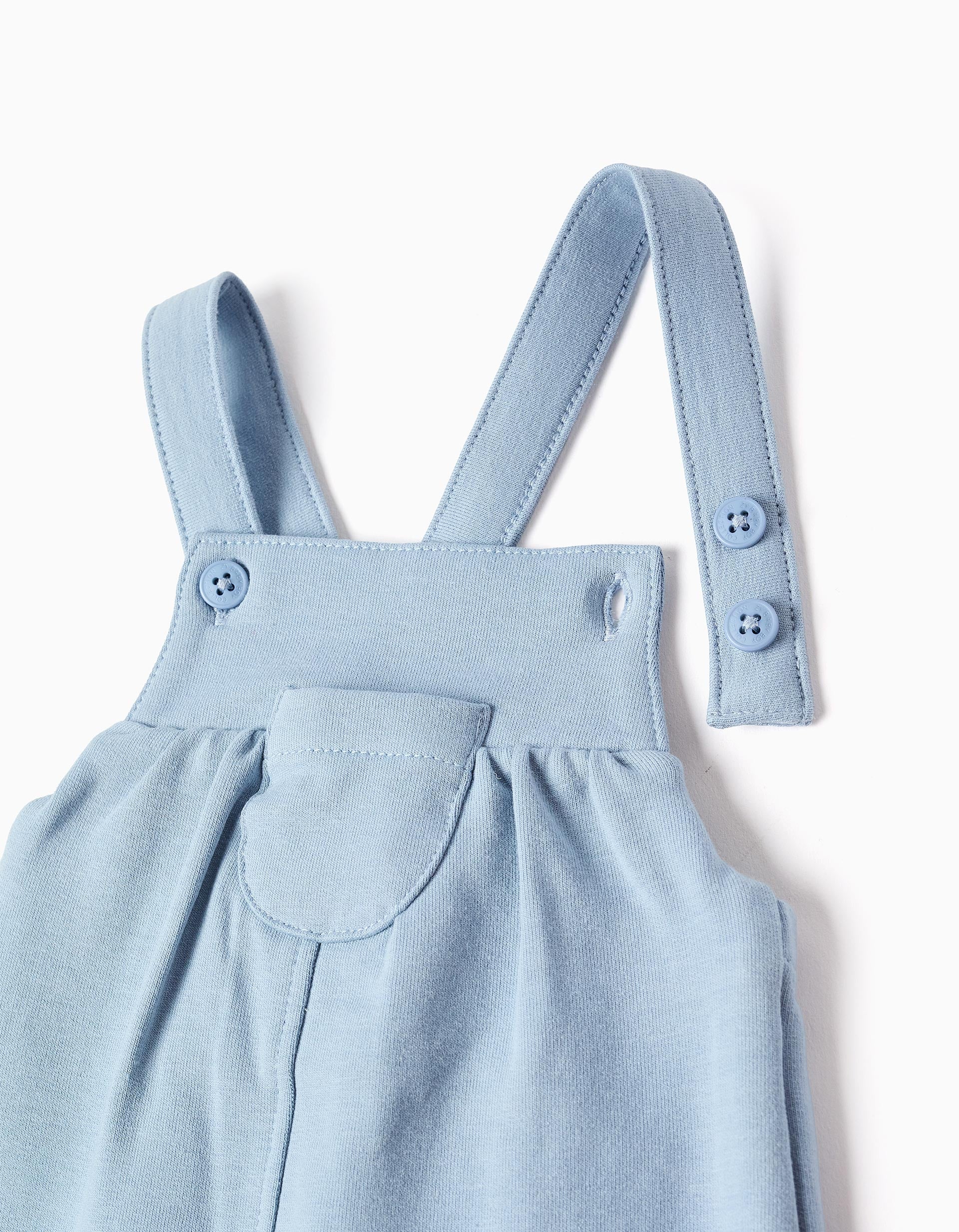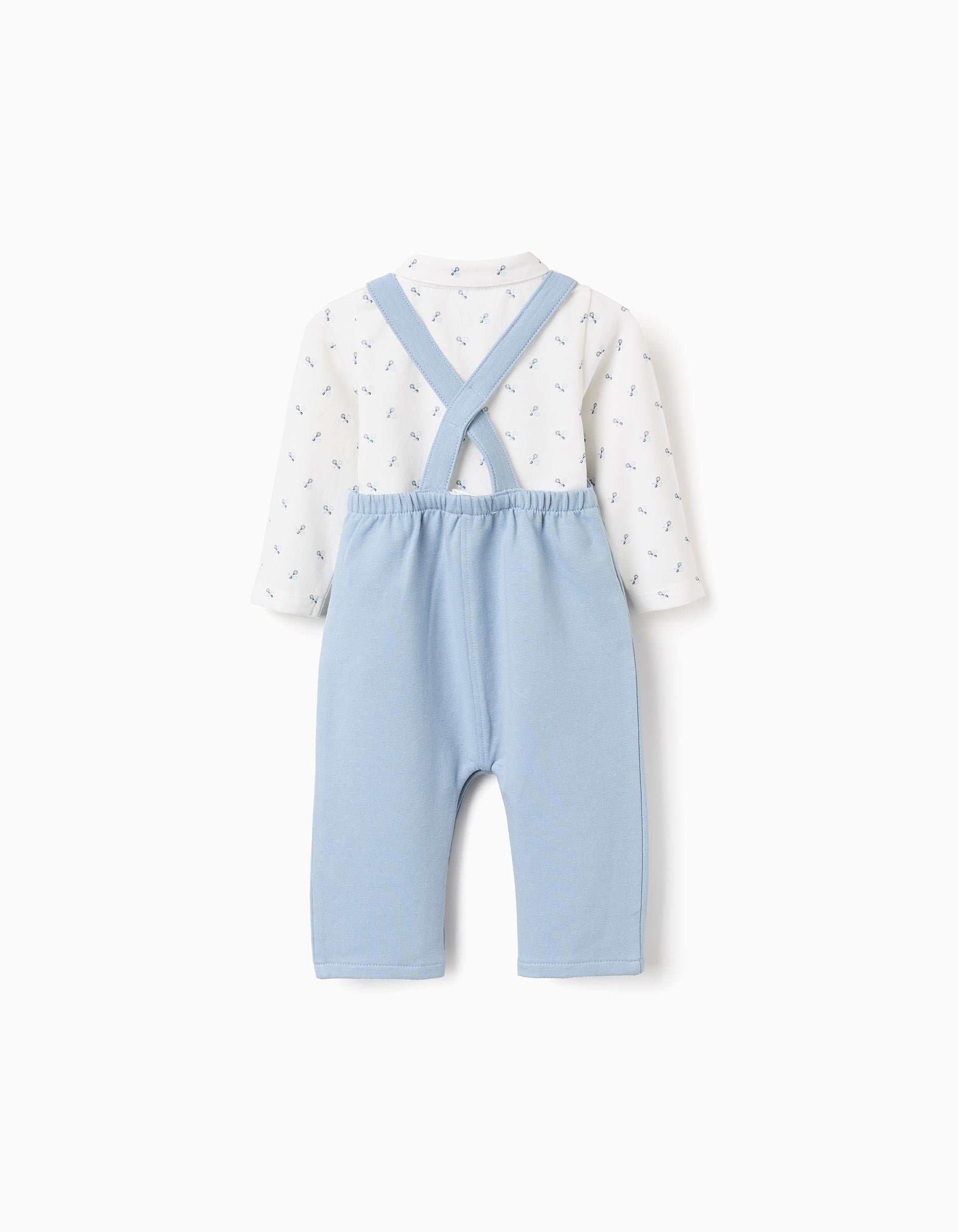 Body-Polo + Jardineiras para Recém-Nascido, Branco/Azul-Claro