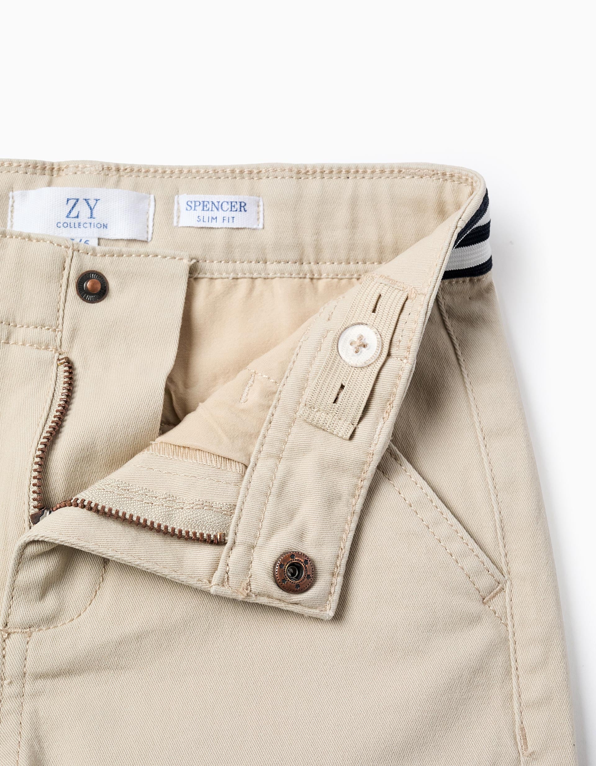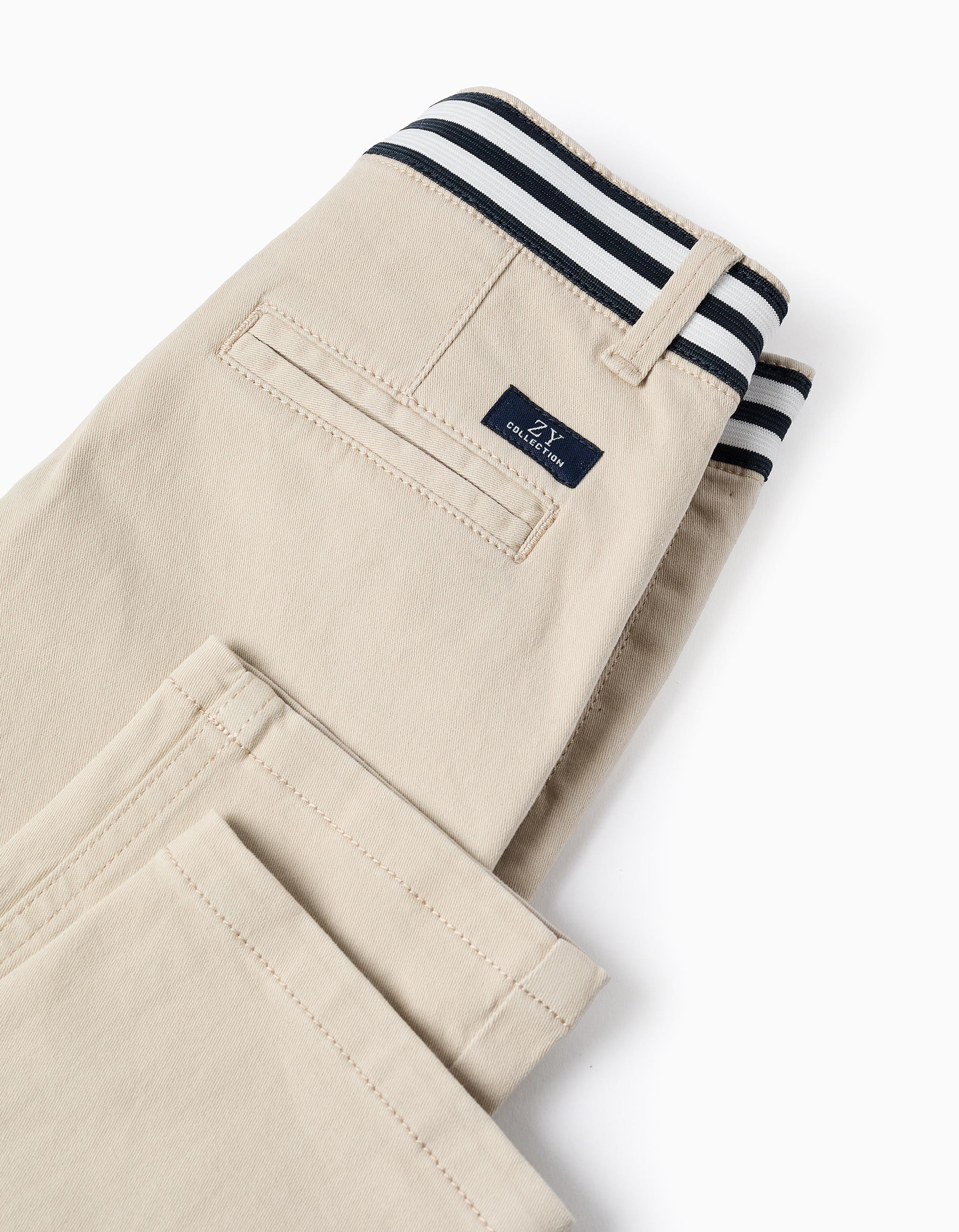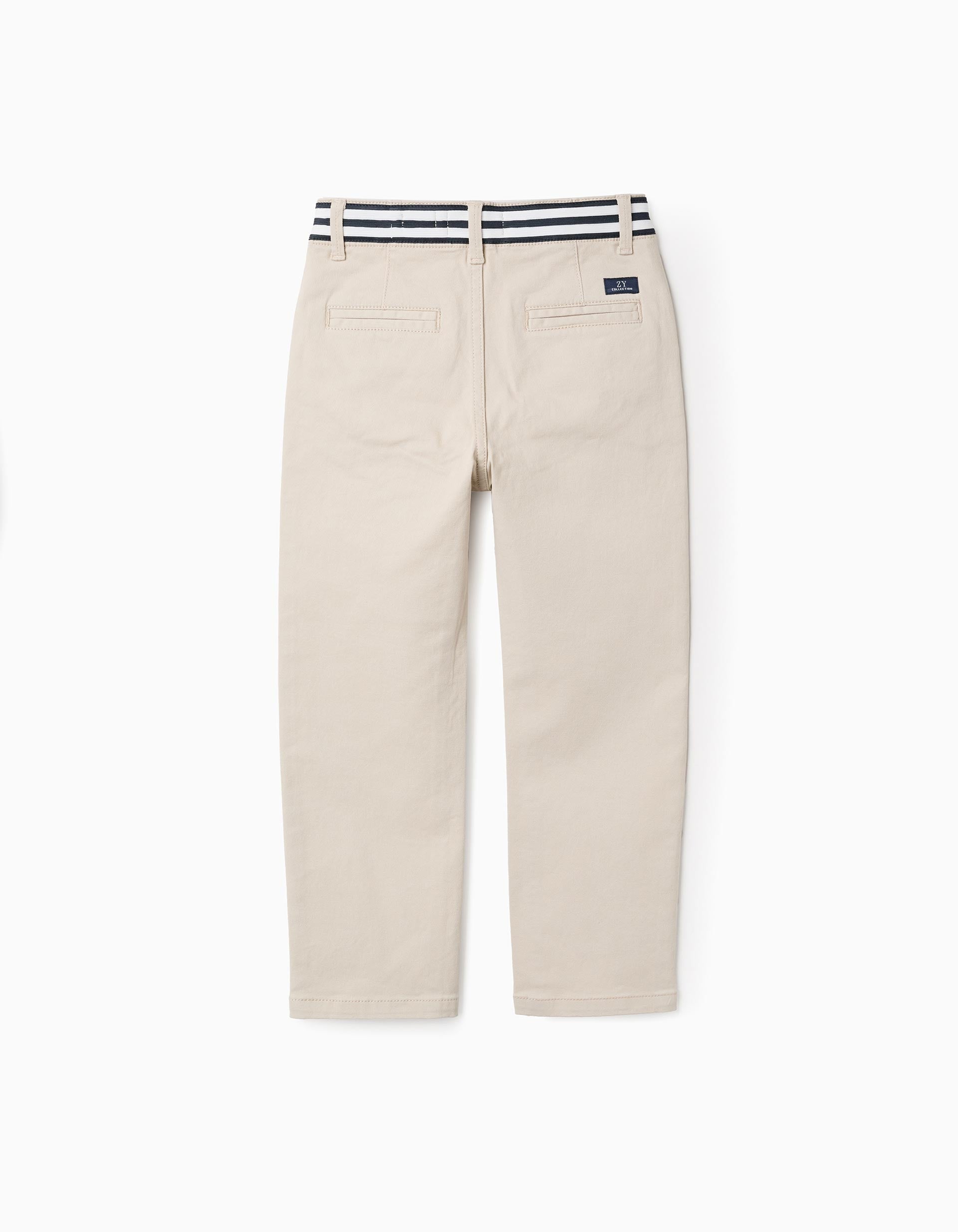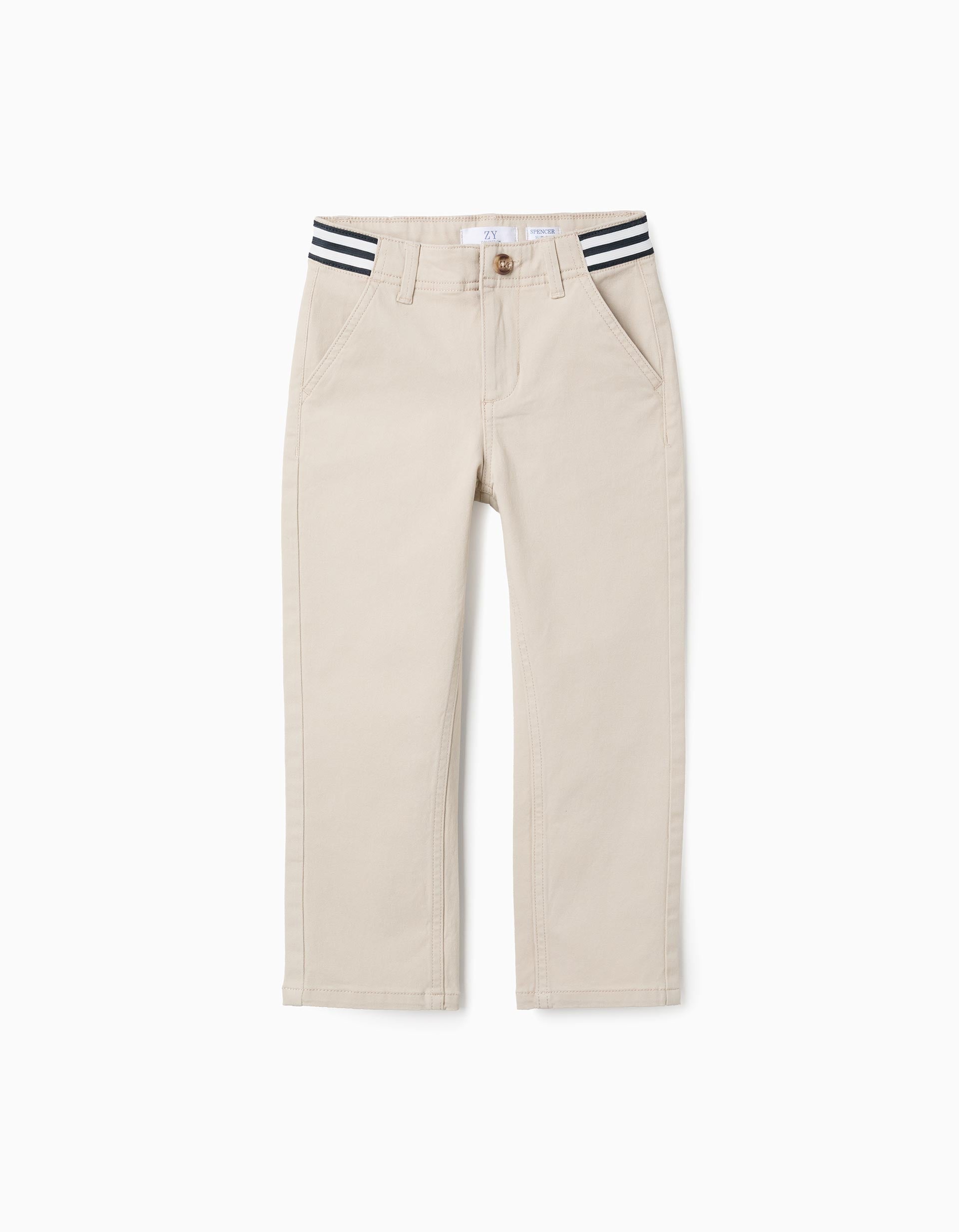 Calças Chino de Sarja com Cintura às Riscas para Menino, Bege
