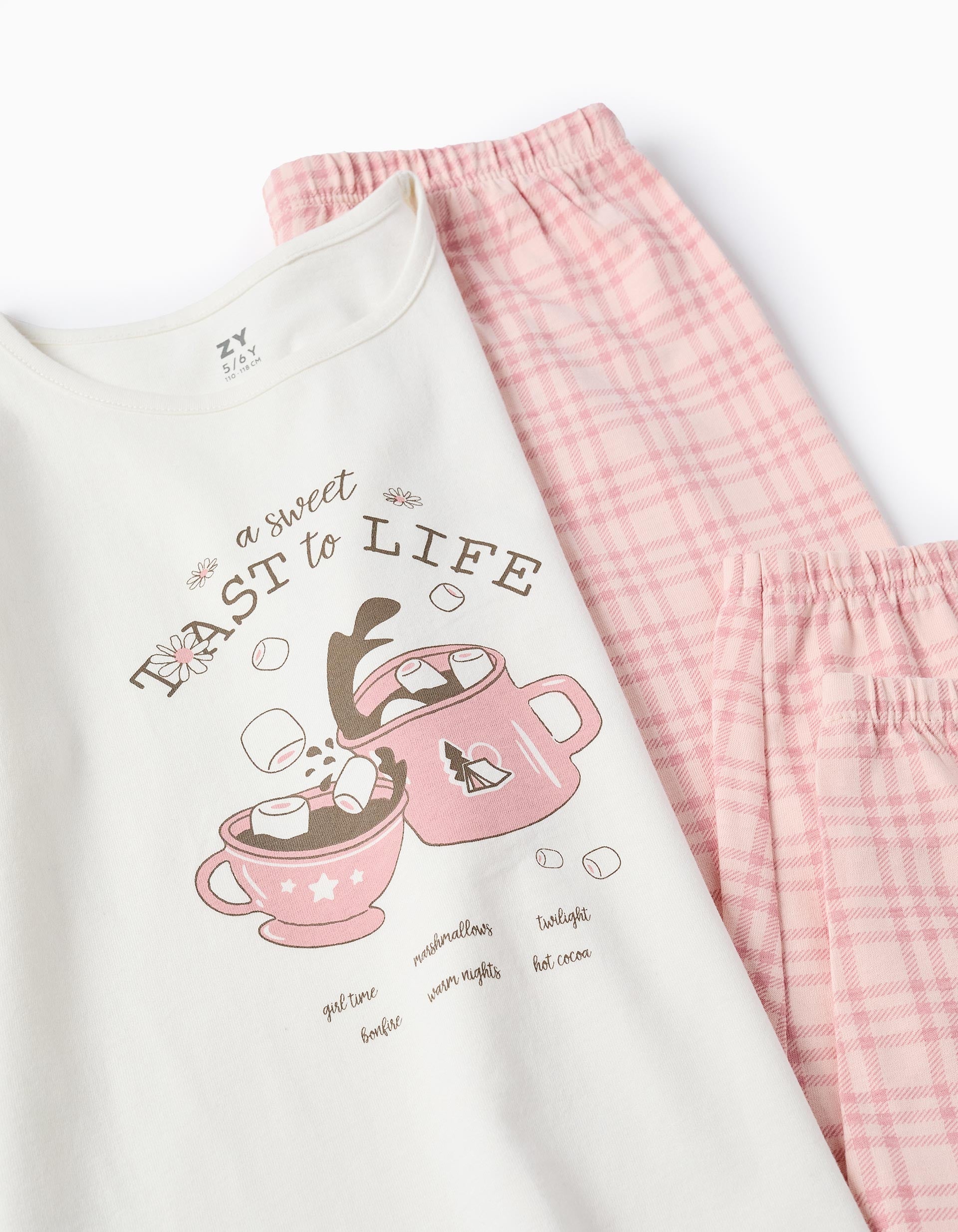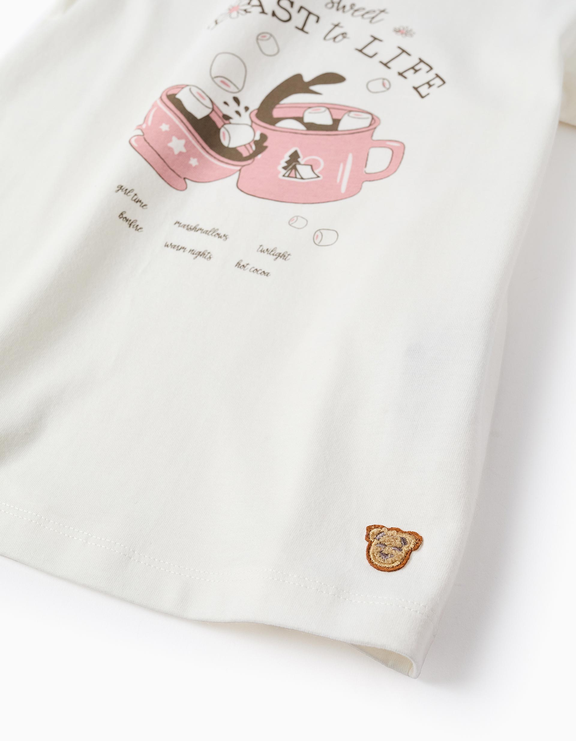 Pijama em Jersey de Algodão para Menina 'Toast', Branco/Rosa