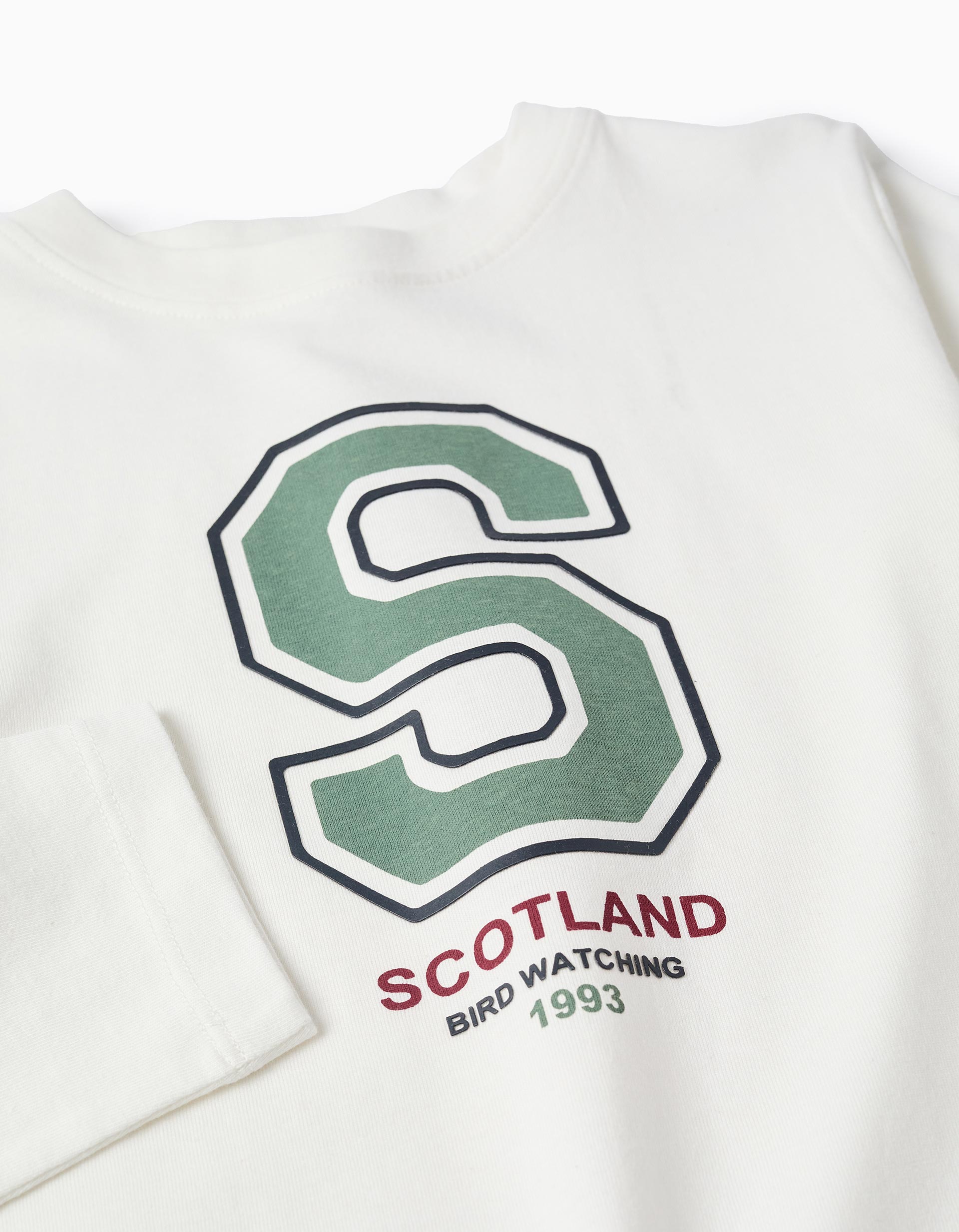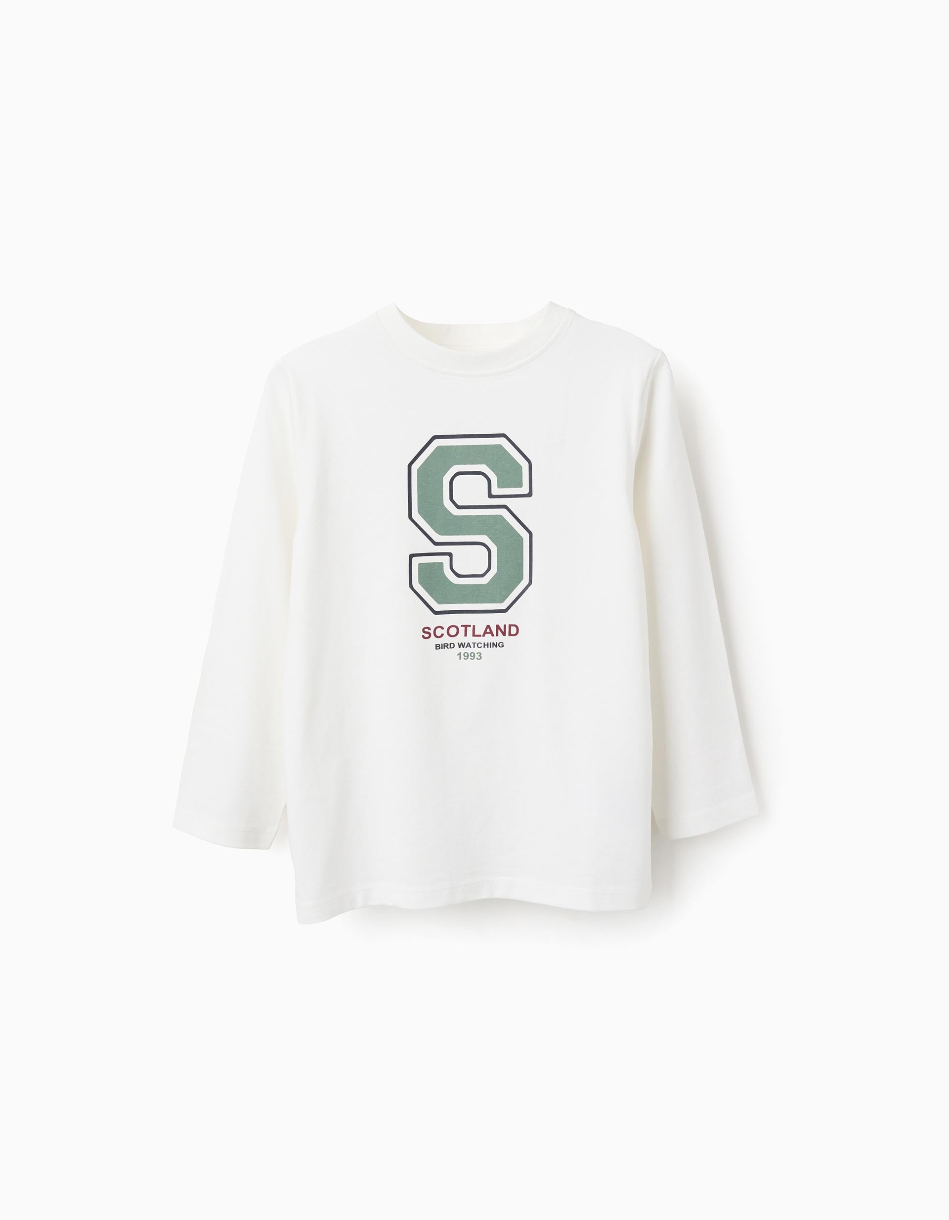 T-shirt de Manga Comprida em Algodão para Menino 'Scotland', Branco