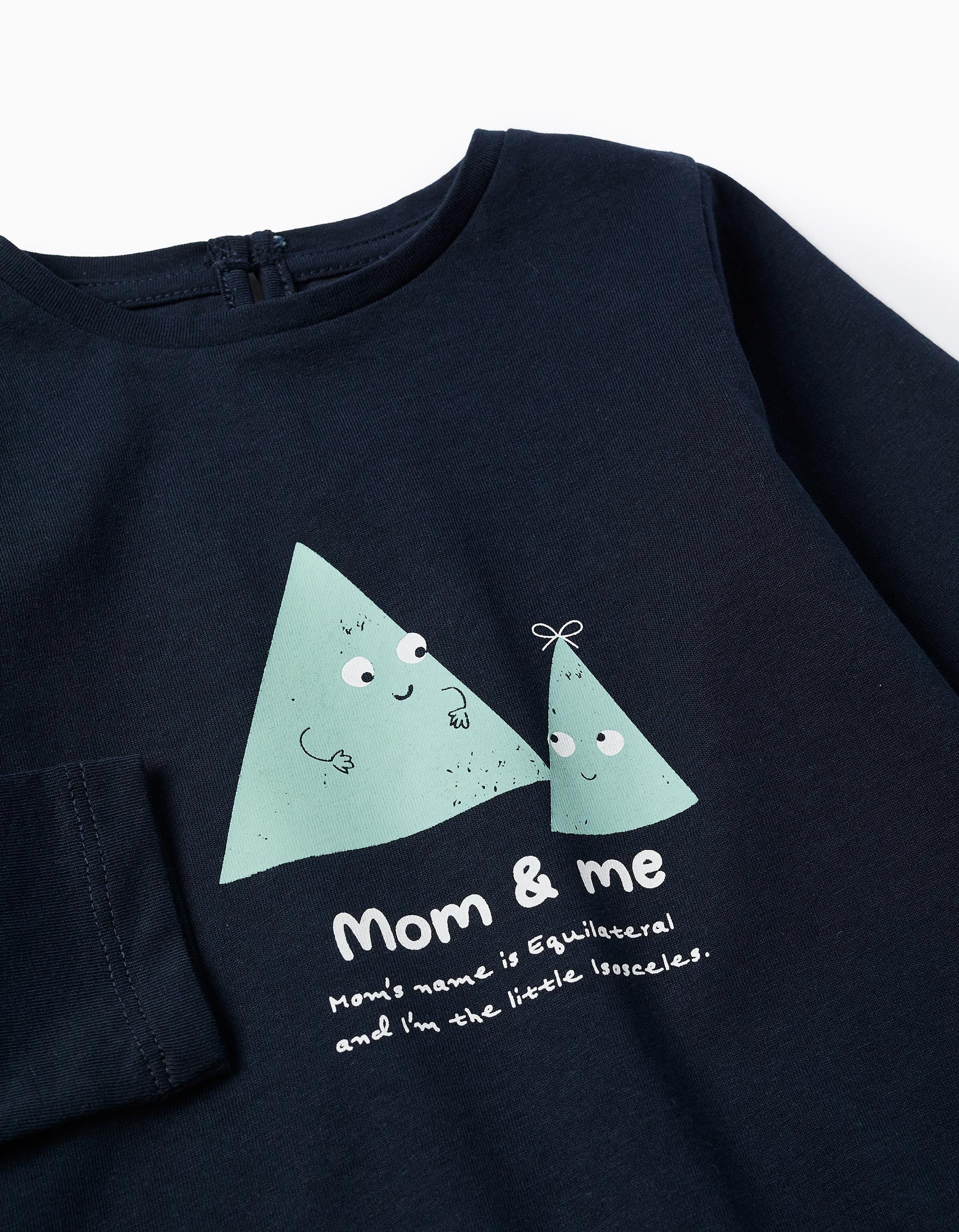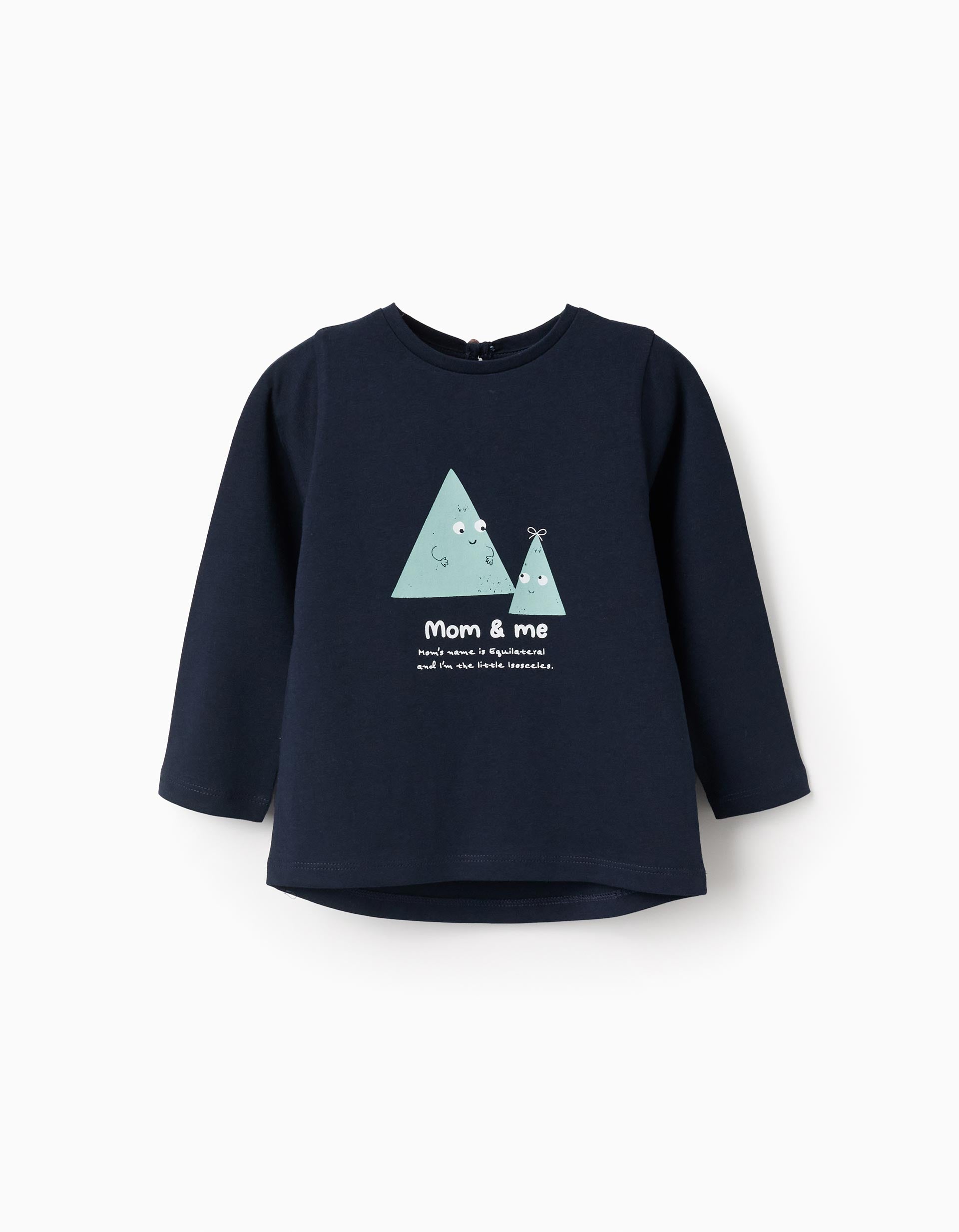 T-shirt de Manga Comprida para Bebé Menina 'Formas', Azul Escuro