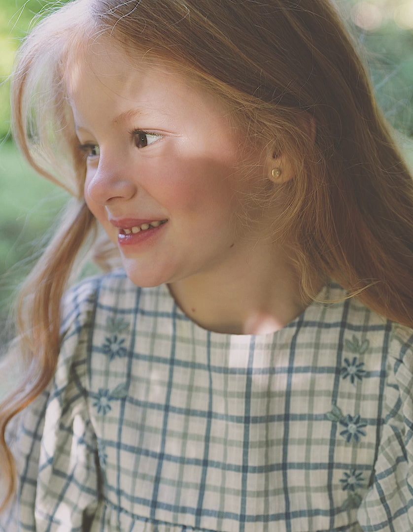 Este vestido é o complemento perfeito para o guarda-roupa de primavera da sua menina. Com um padrão xadrez em tons de azul, verde e branco, é uma ótima opção para eventos familiares ou festas de amigos.